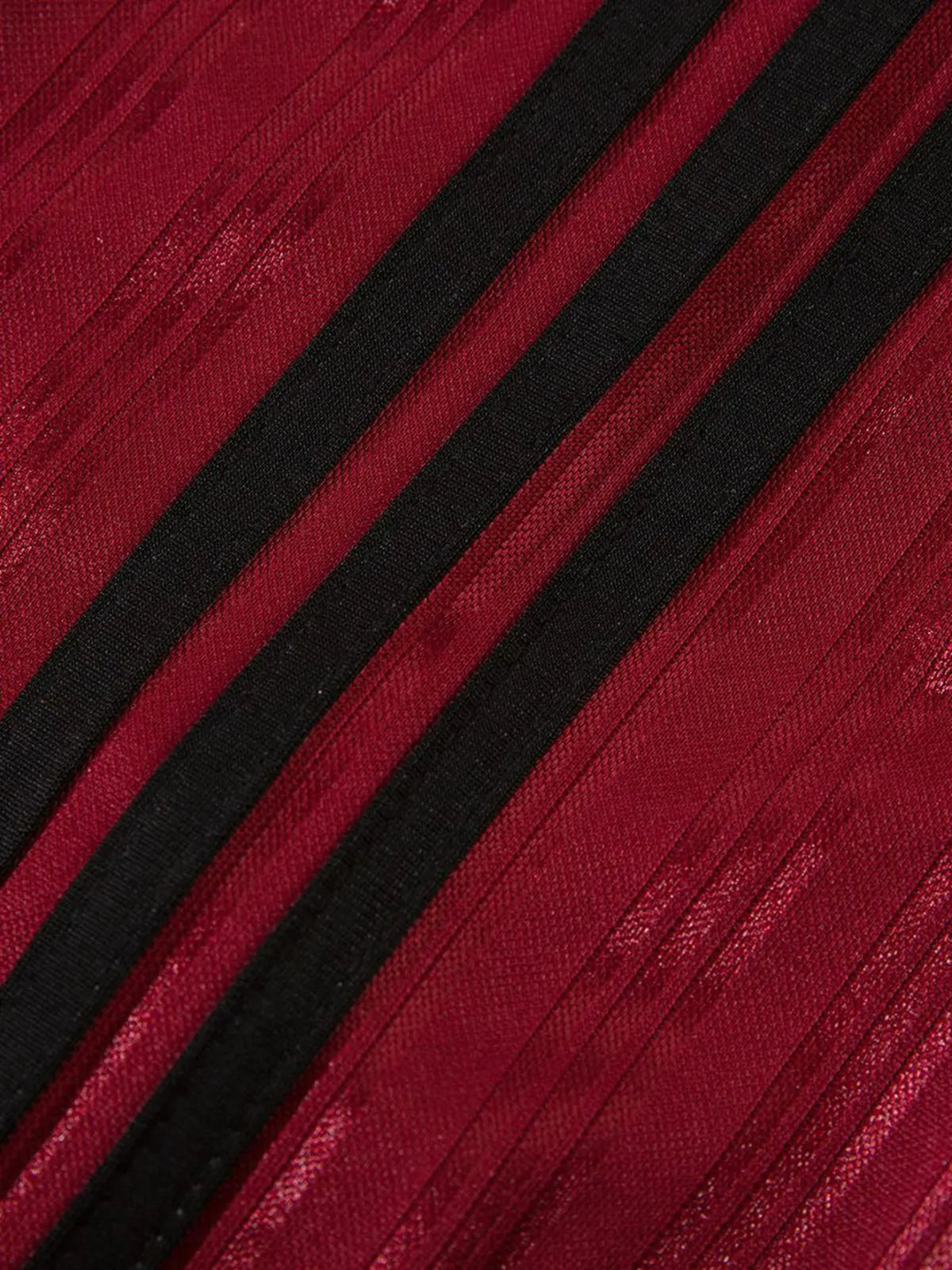 光沢ポリエステルと大胆なストライプ切替が映える長袖スポーツポロ。