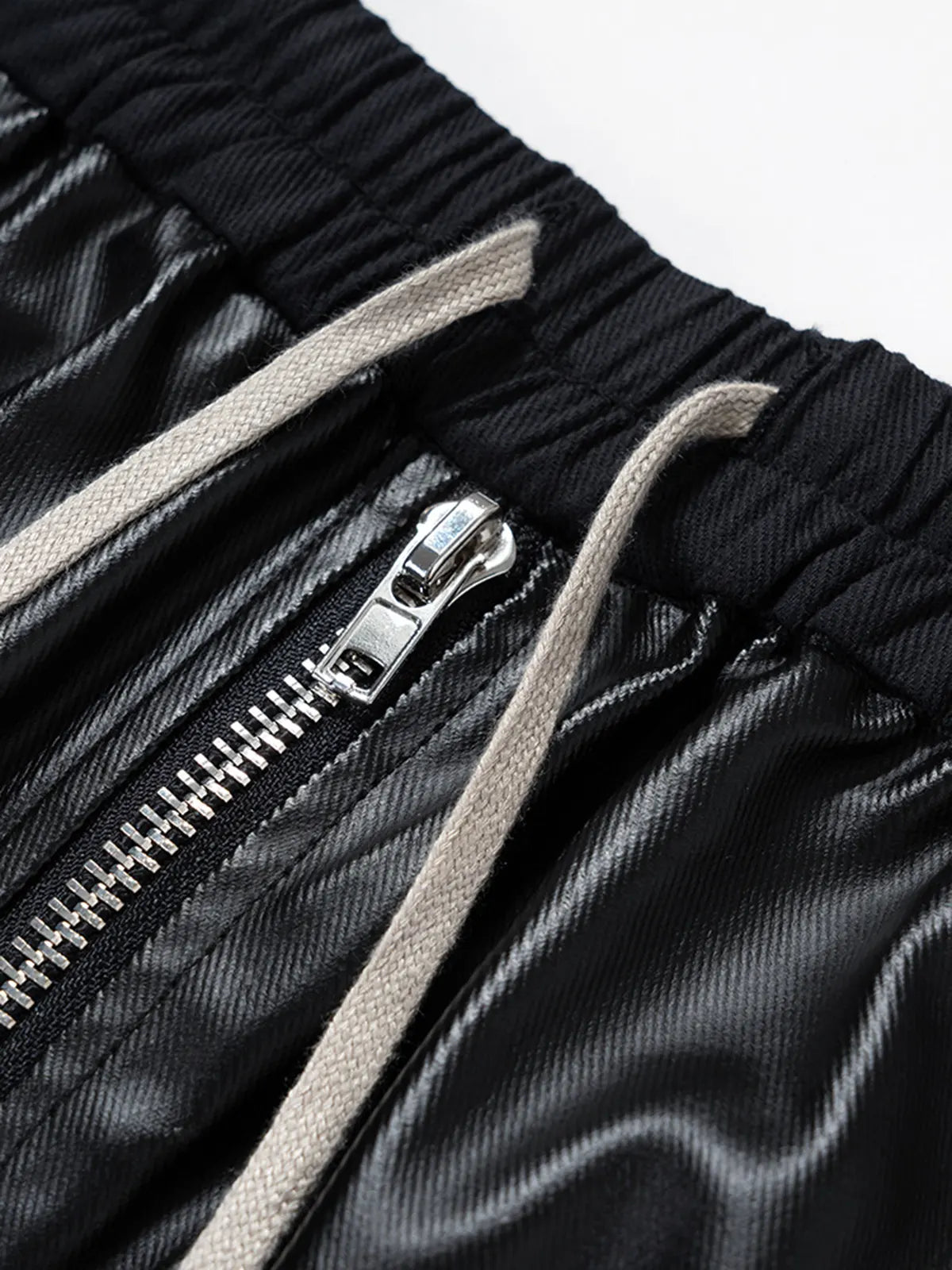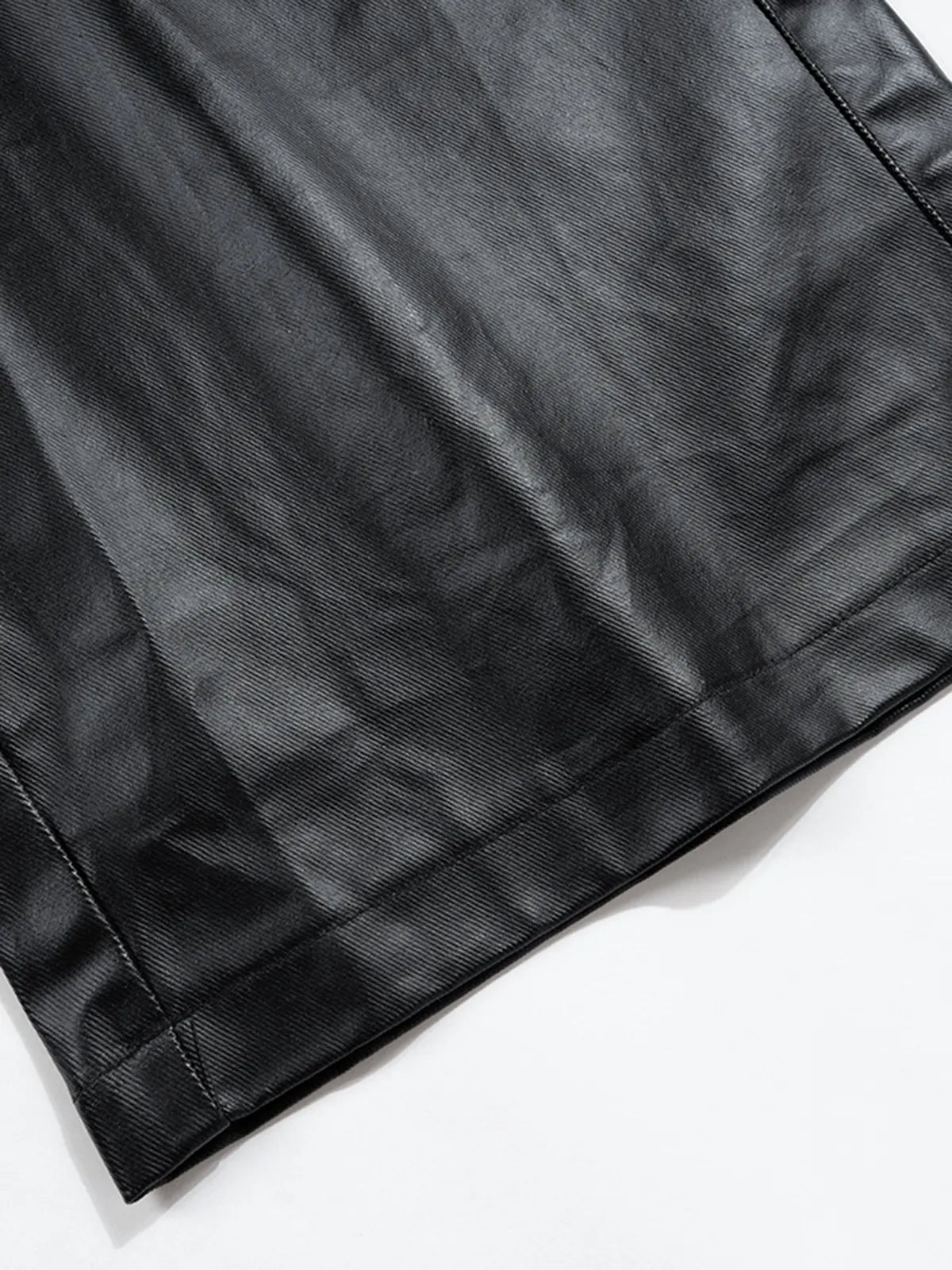 ミリタリーカーゴパンツをRO(リサーチ&オリジン)風に再構築し、フロントの仮皮風パネルと多層ポケットを重ね合わせたデザインが特徴。ウエストはドローストリング+ゴムでフィットを自在に調整でき、ジップアップガセットで着脱もスムーズ。裾にかけて緩やかに広がるワイドフレアラインがレトロなベルボトムを彷彿とさせ、ポリエステルの艶感と撥水性がモードと実用性を両立します。ストリートスニーカーやブーツと合わせれば、強烈な存在感を放つアーバンスタイルが完成。