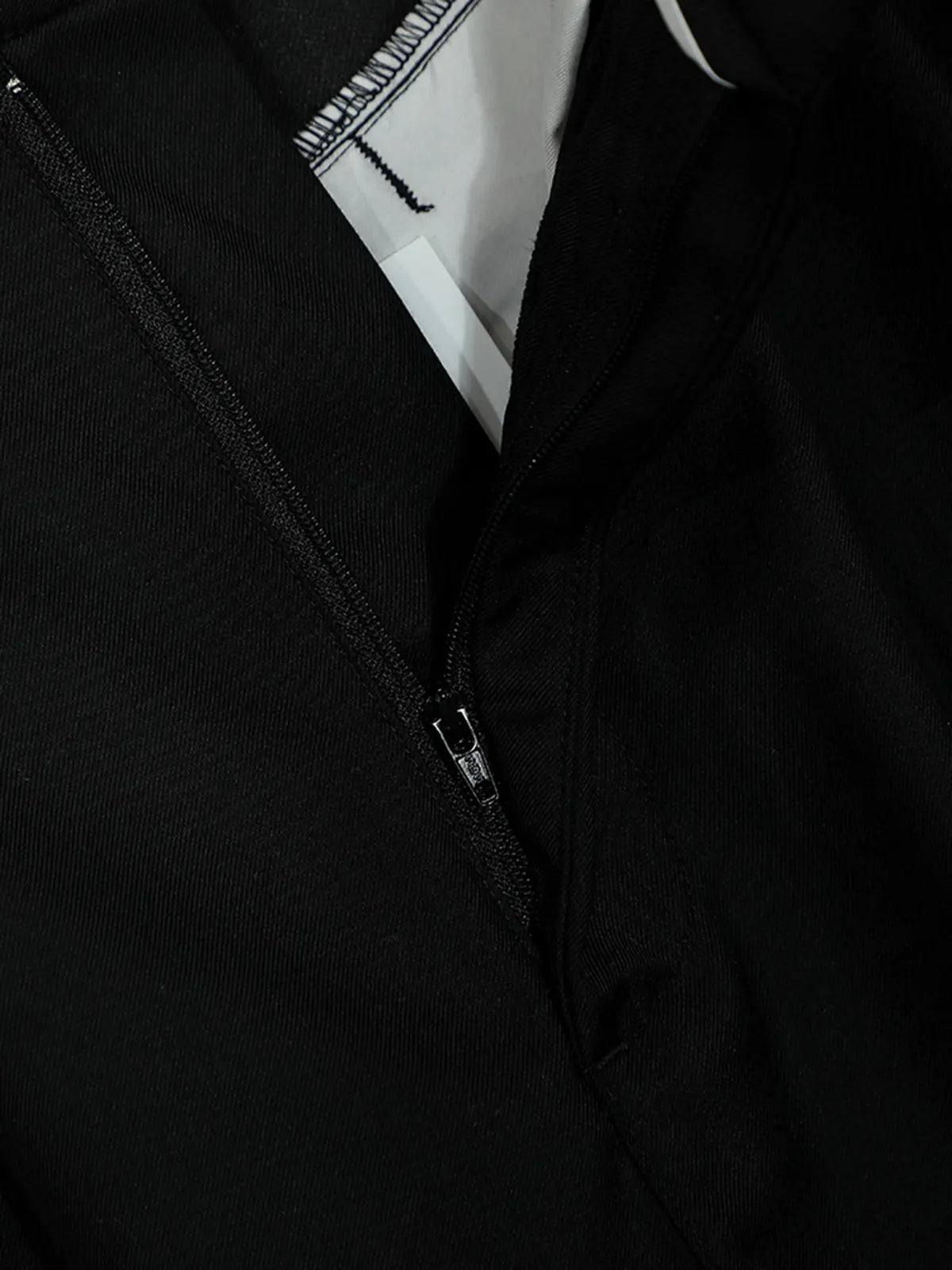 1920〜30年代のワークウェアにルーツを持つ〈クリーンフィット〉シリーズをベースに、フロントに配した大ぶりのバイタックが刀の刃のように美しい曲線を描くデザイン。ポリエステルならではの滑らかな落ち感が脚のラインをすっきり見せ、ウエスト周りはベルトループ+隠しフック仕様でミニマルに仕上げています。コットンシャツやニット、レザースニーカーを合わせれば、モダンなミリタリーテイストと都会的なエフォートレススタイルが完成します。