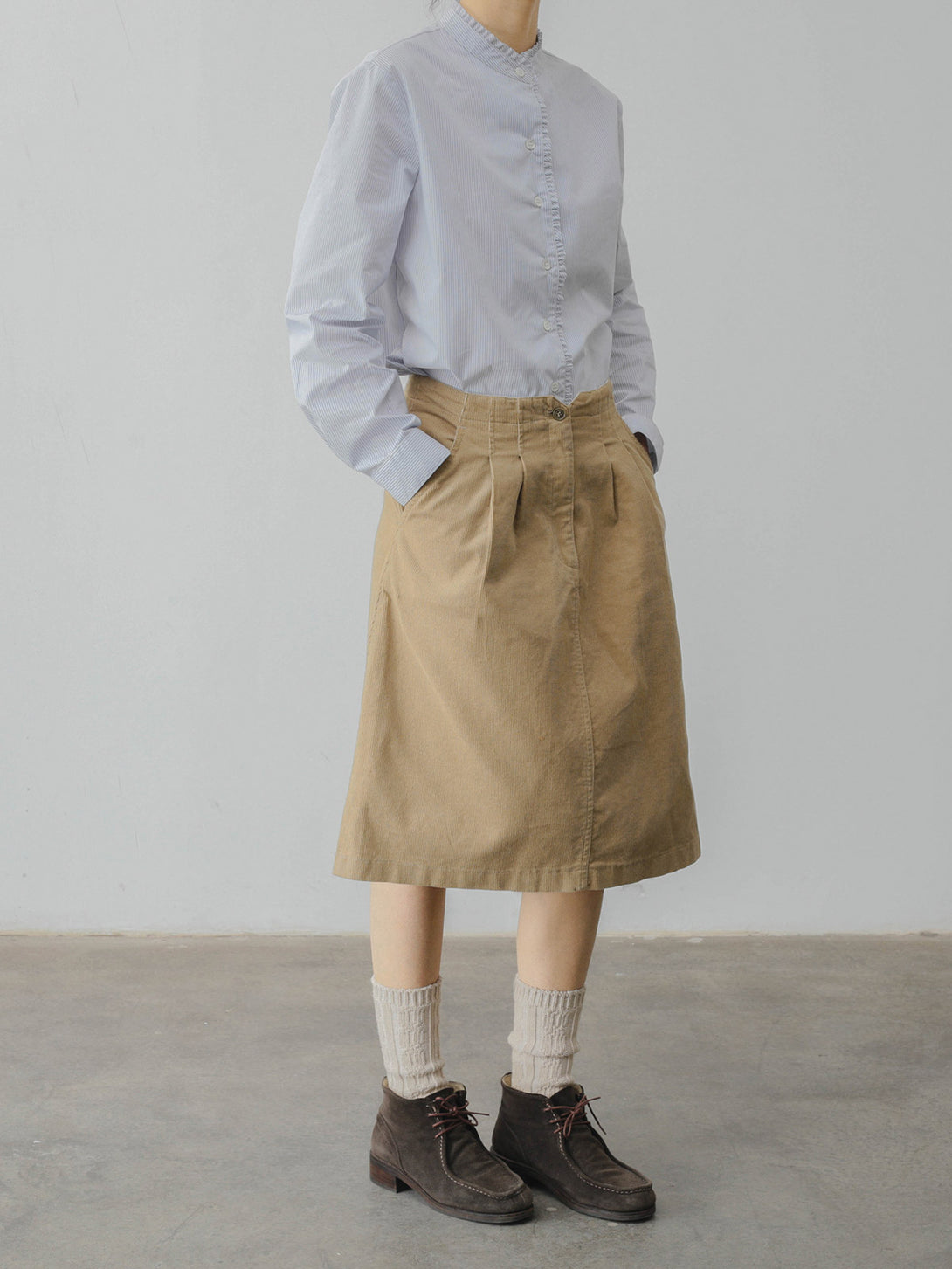 このブルー&ホワイトストライプのスタンドカラーシャツは、シンプルなデザインと柔らかな純綿素材を使用し、フレンチレトロな少女の知的な魅力を演出します。