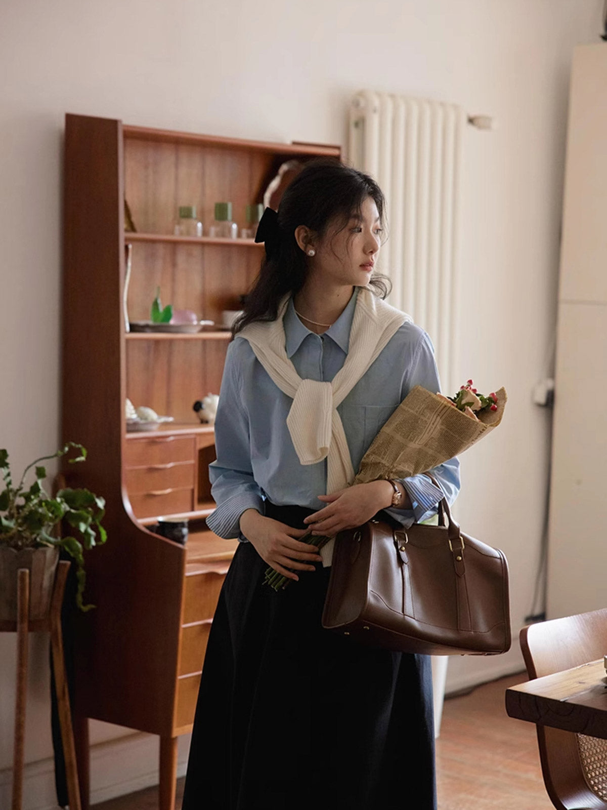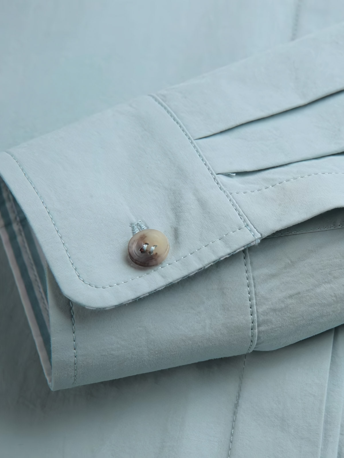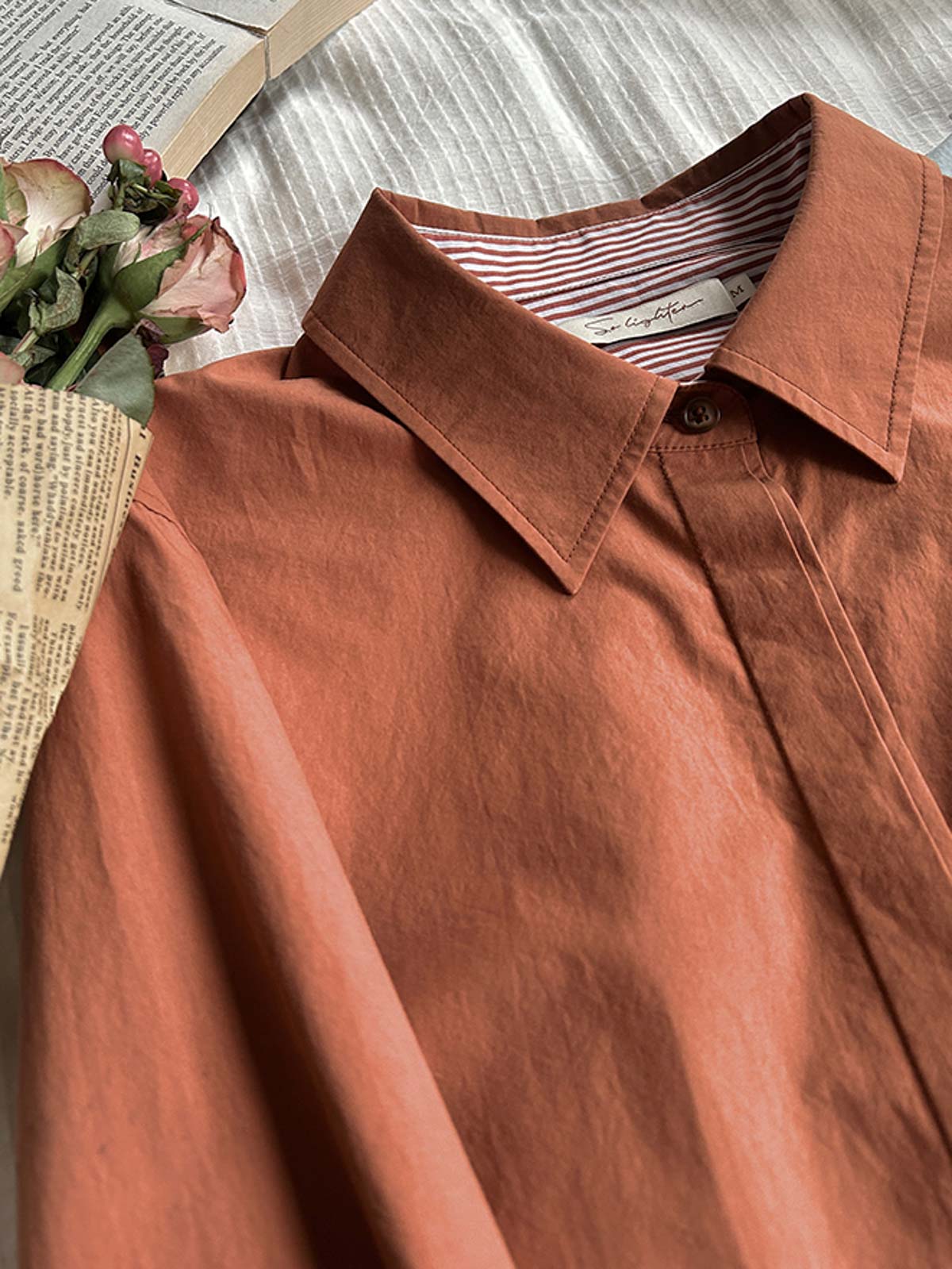 クラシックな襟デザインとゆったりした快適な着心地で、洗練されたディテールが特徴です。