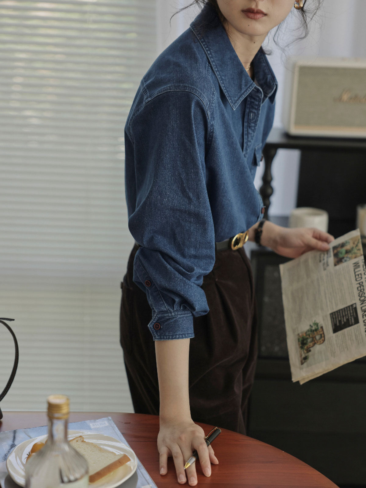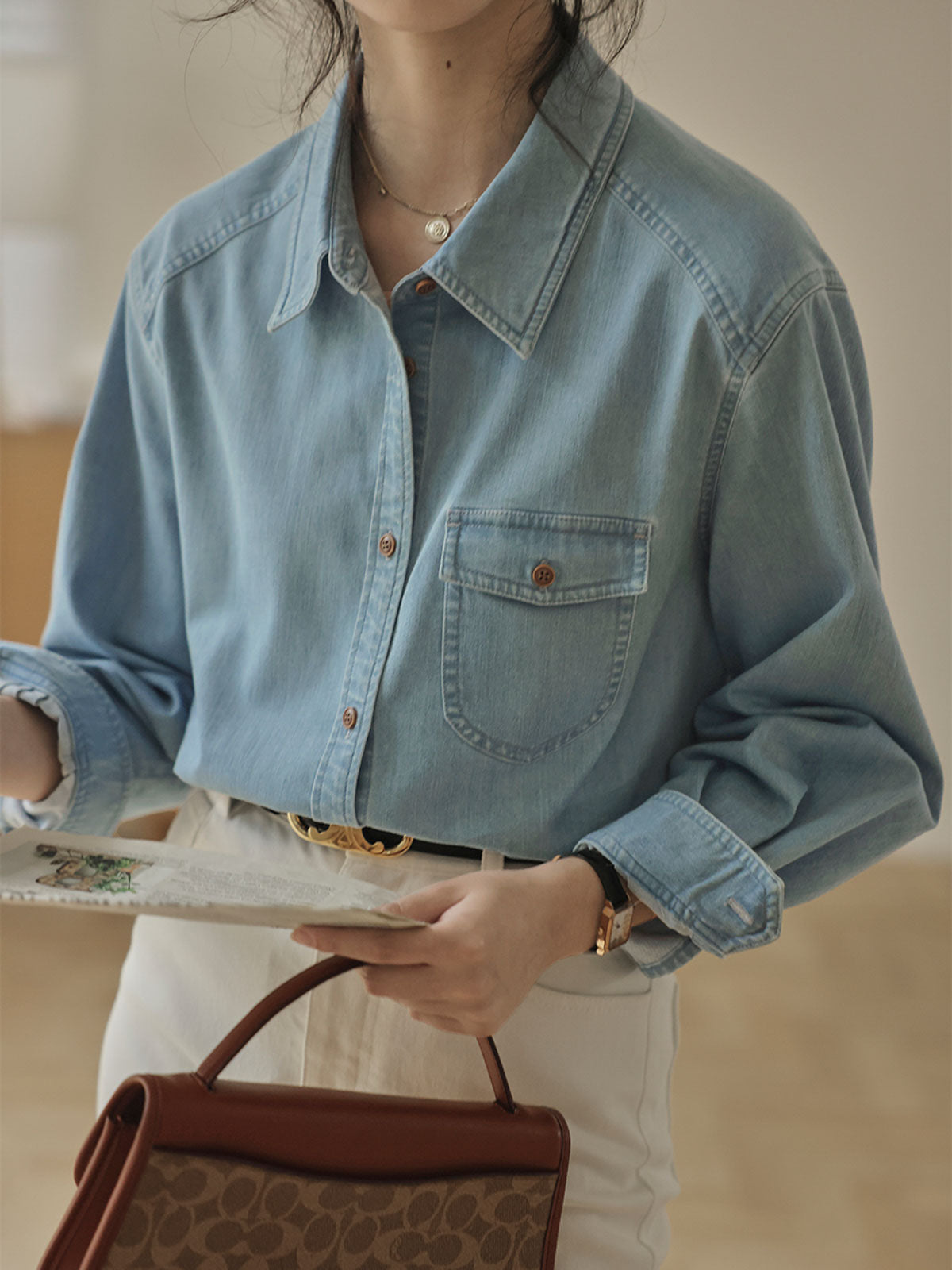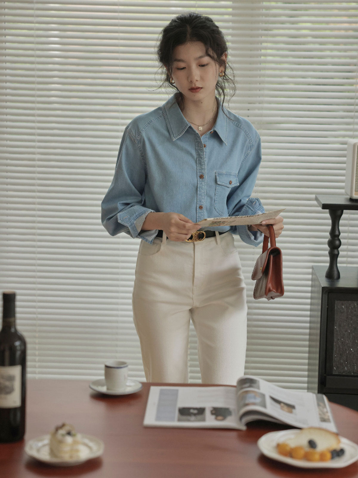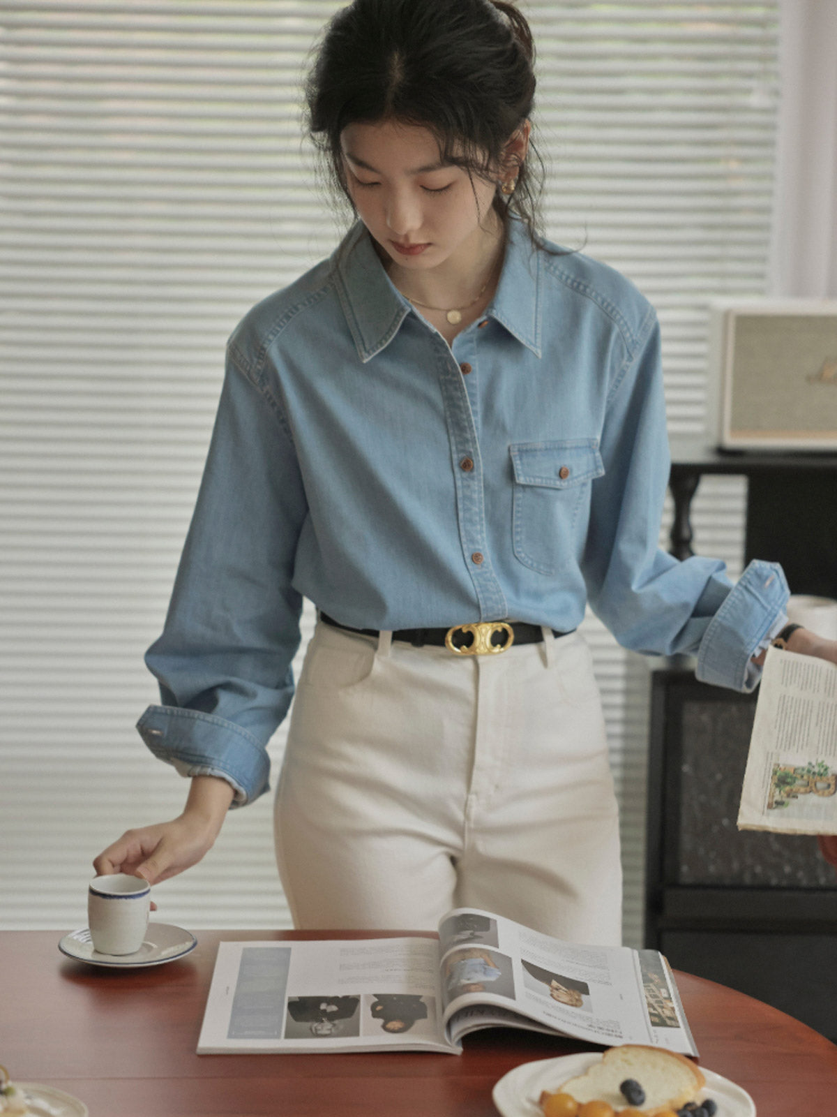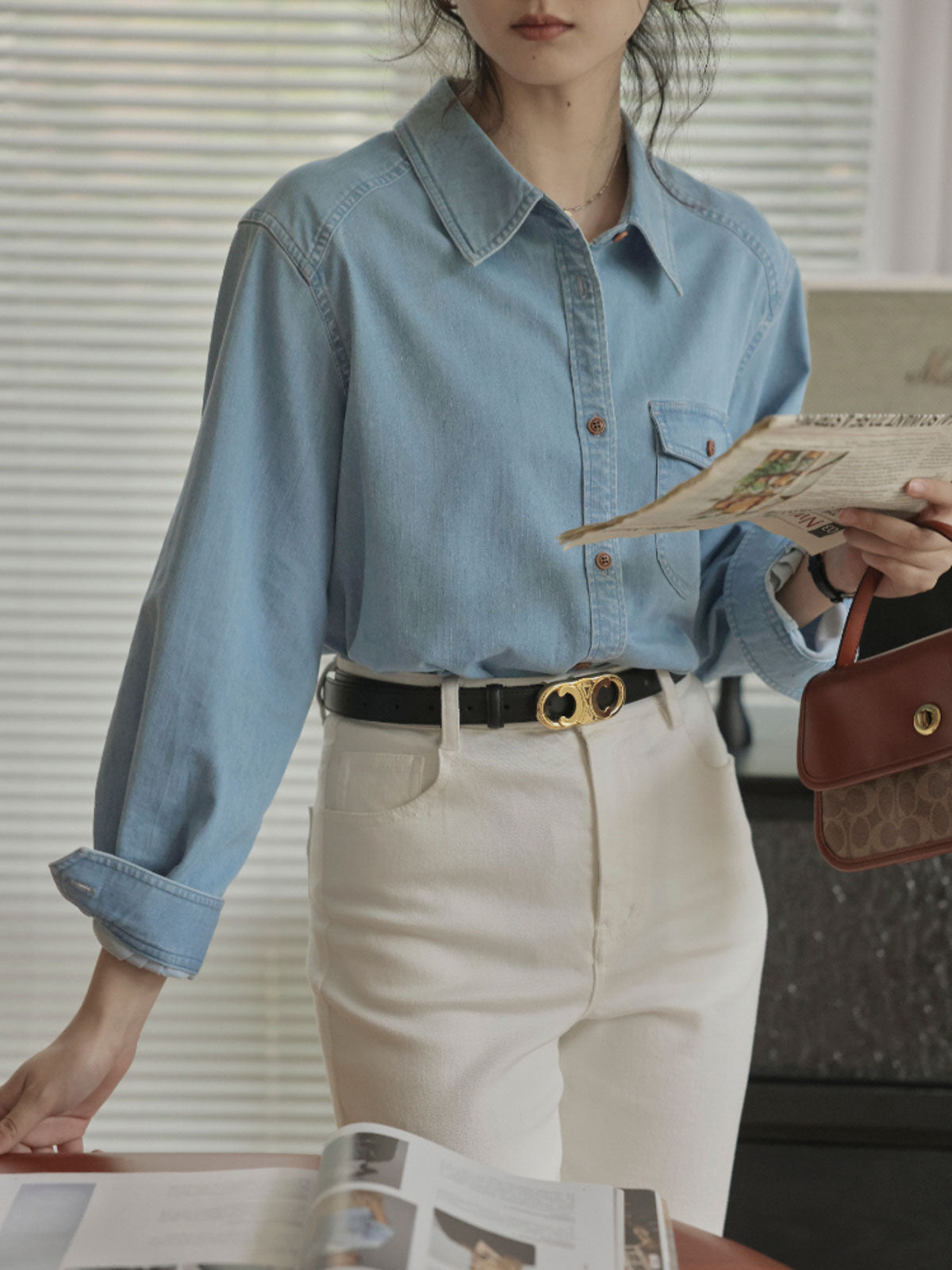 フレンチエレガンスとカジュアルスタイルが融合した、四季向けのデニムシャツです。