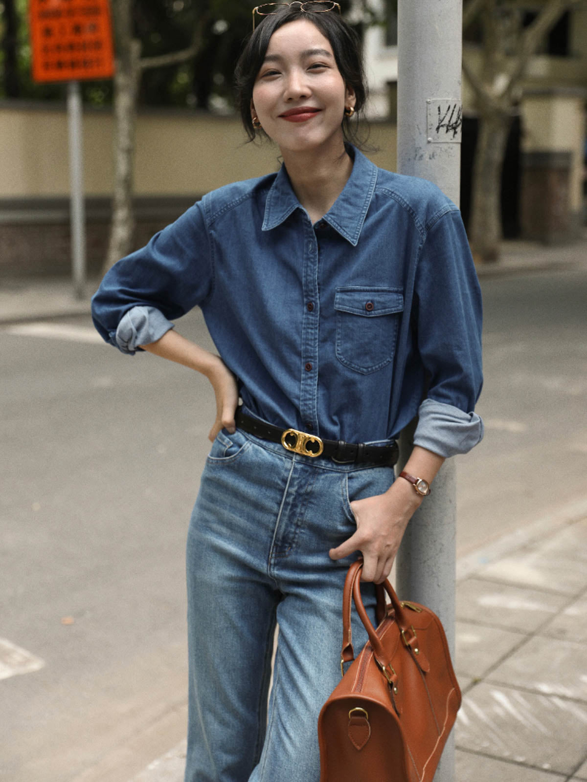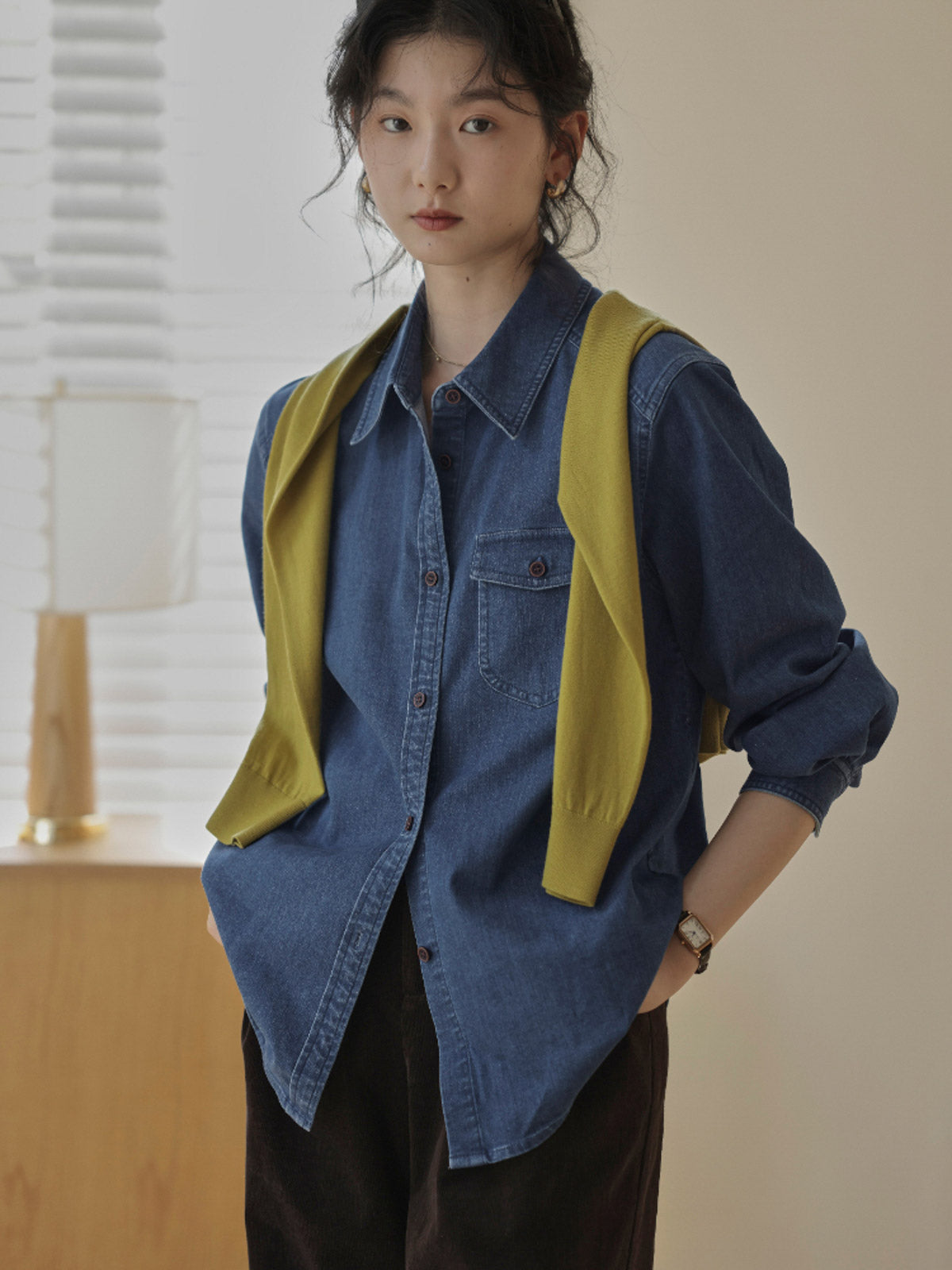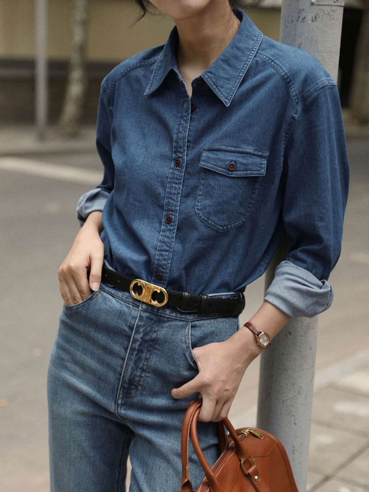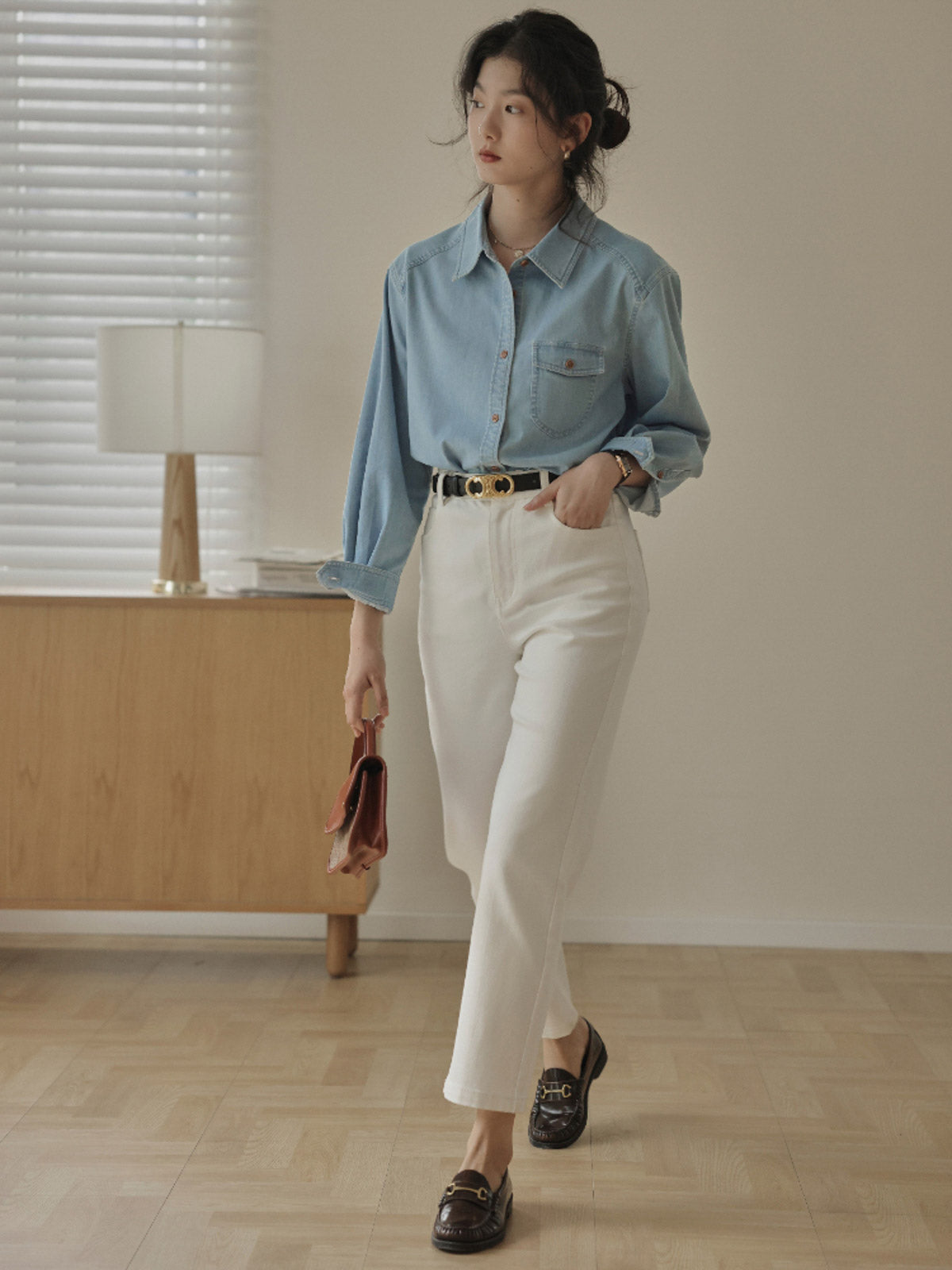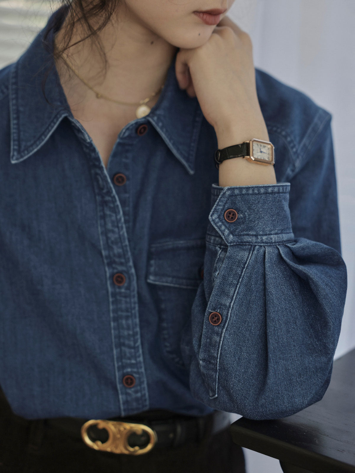 フレンチエレガンスとカジュアルスタイルが融合した、四季向けのデニムシャツです。