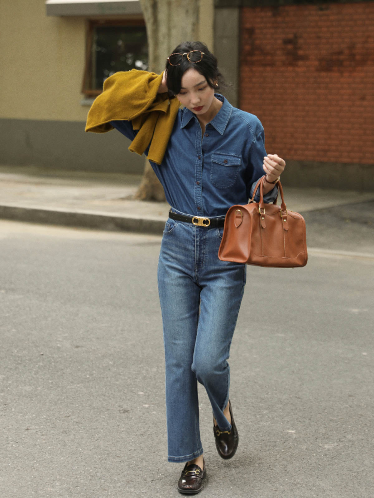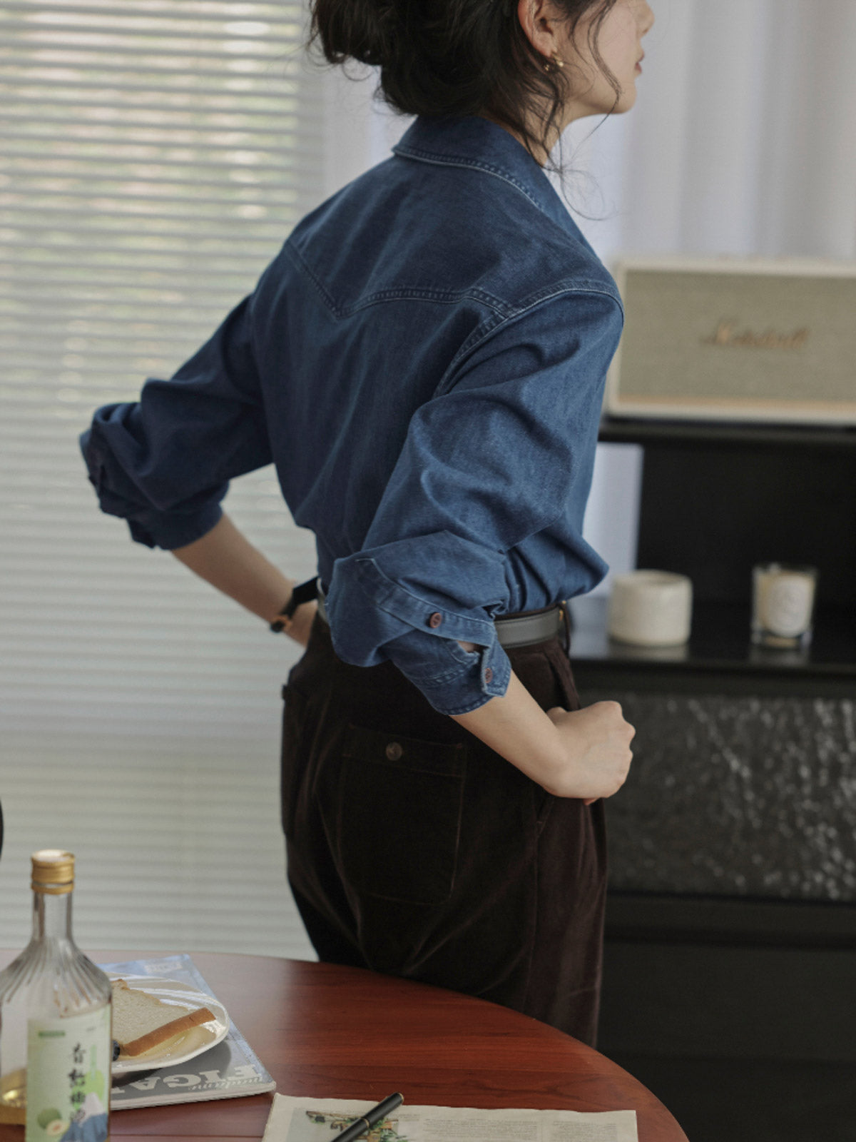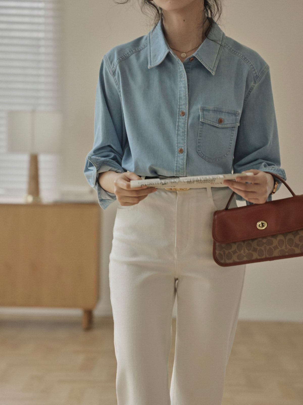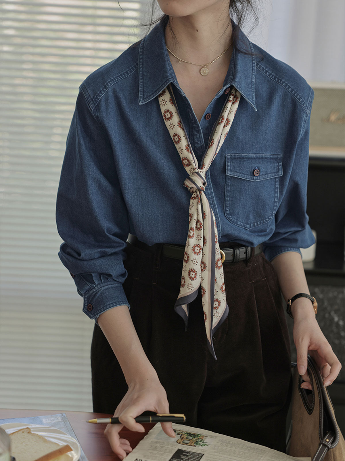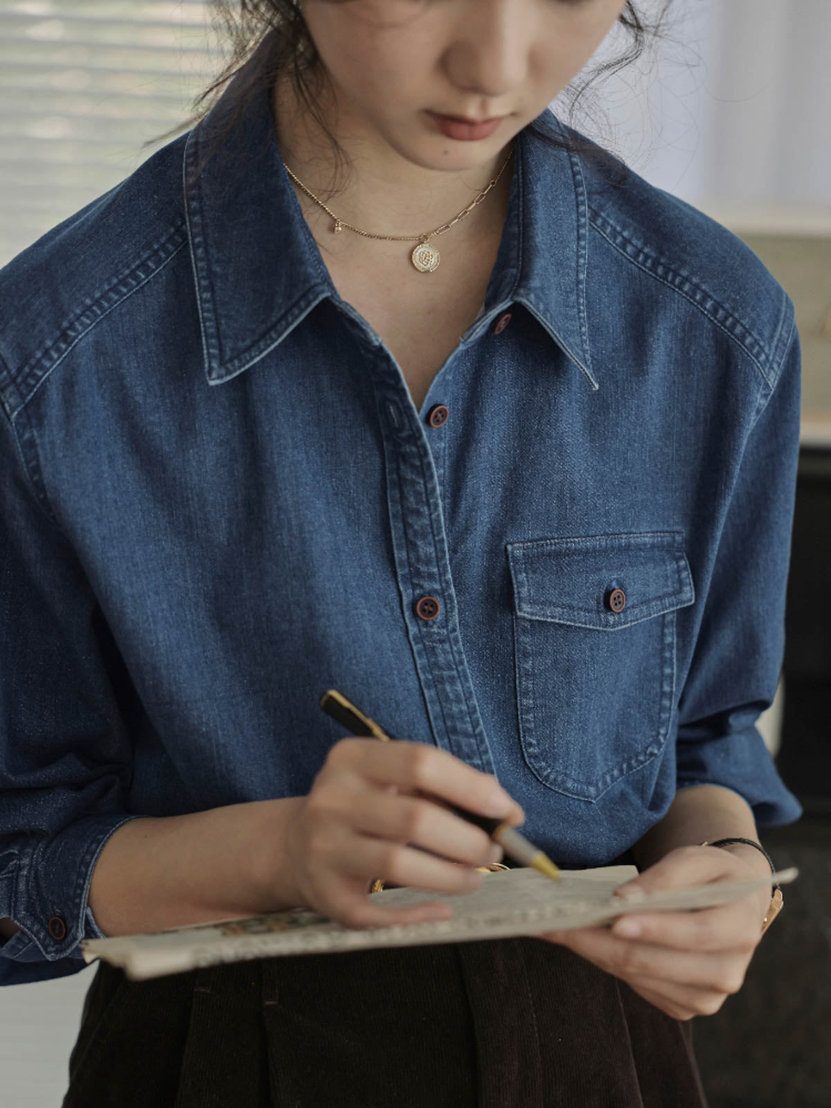 フレンチエレガンスとカジュアルスタイルが融合した、四季向けのデニムシャツです。