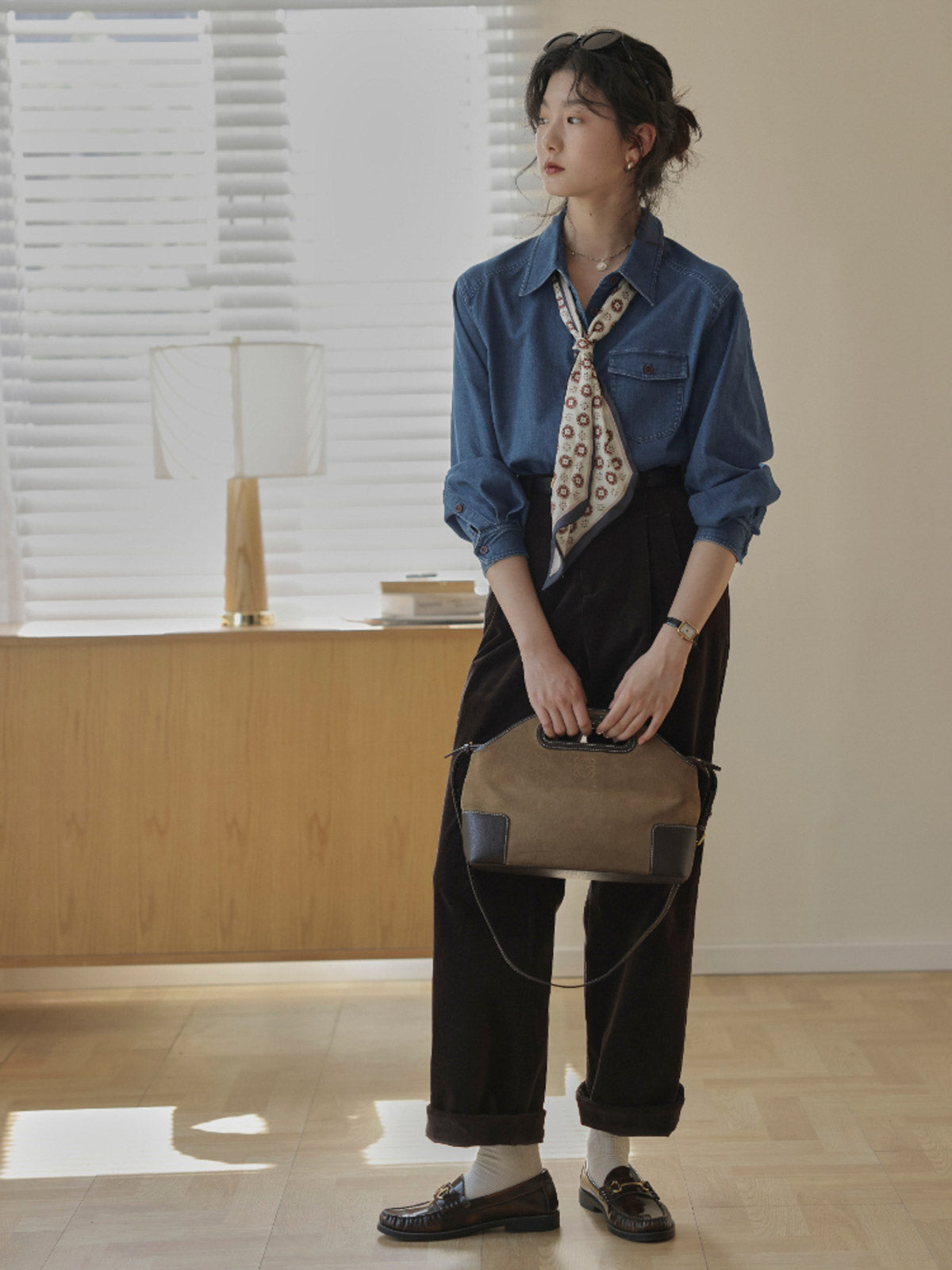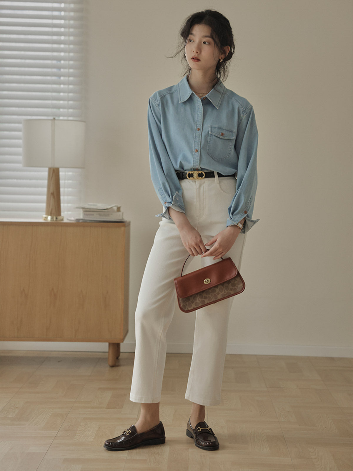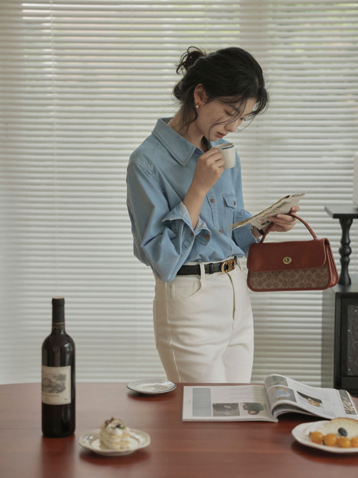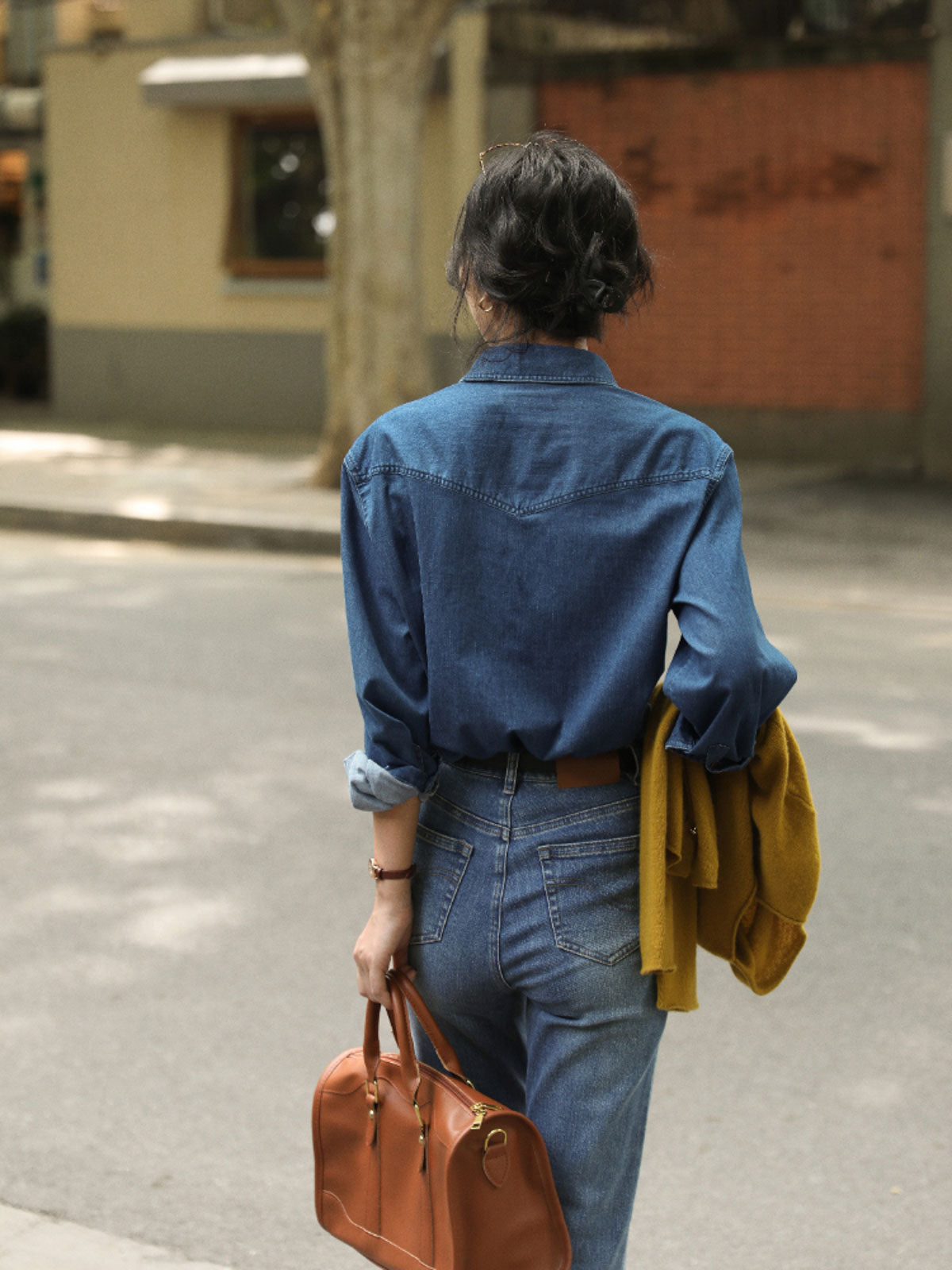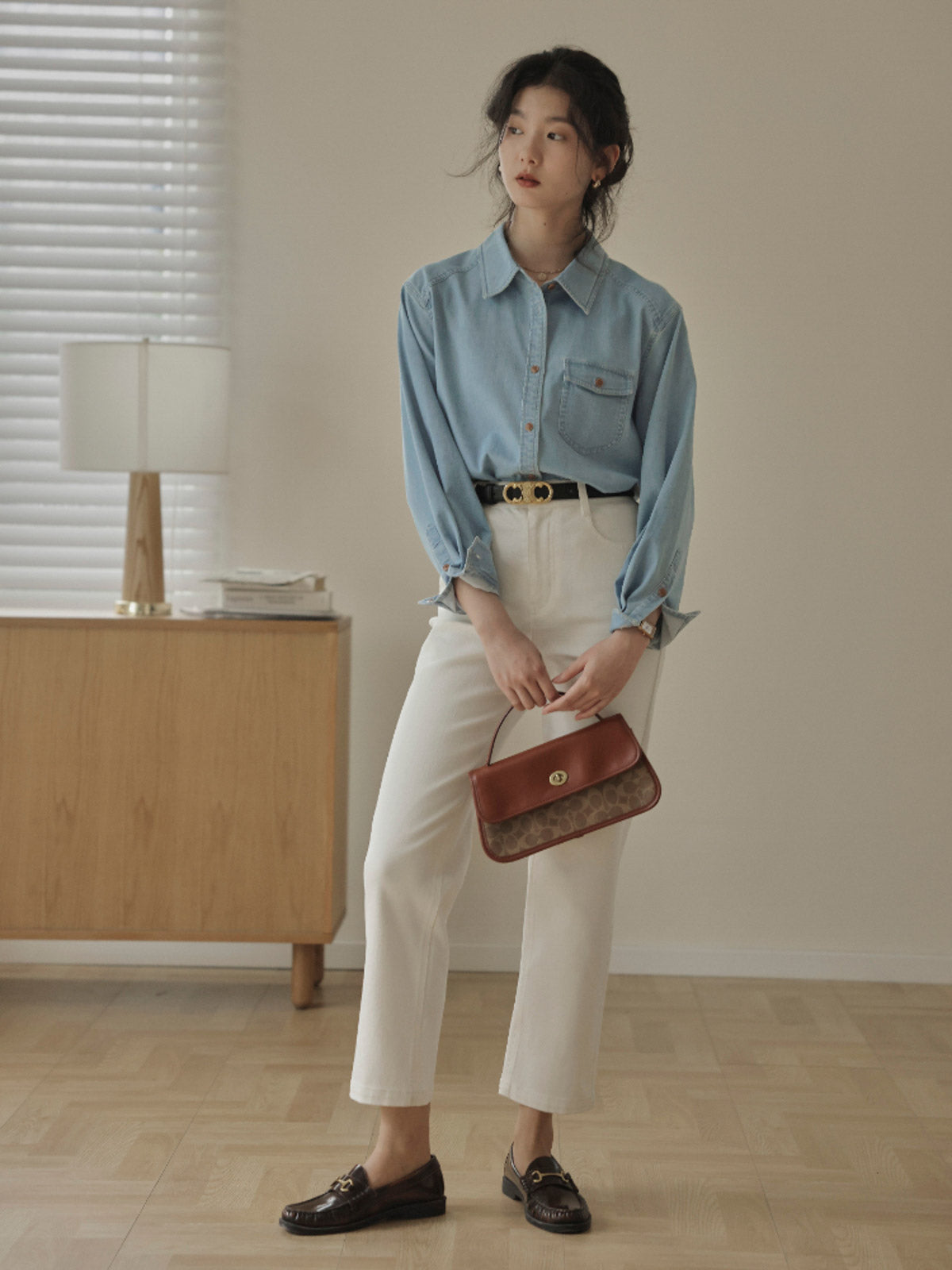 フレンチエレガンスとカジュアルスタイルが融合した、四季向けのデニムシャツです。