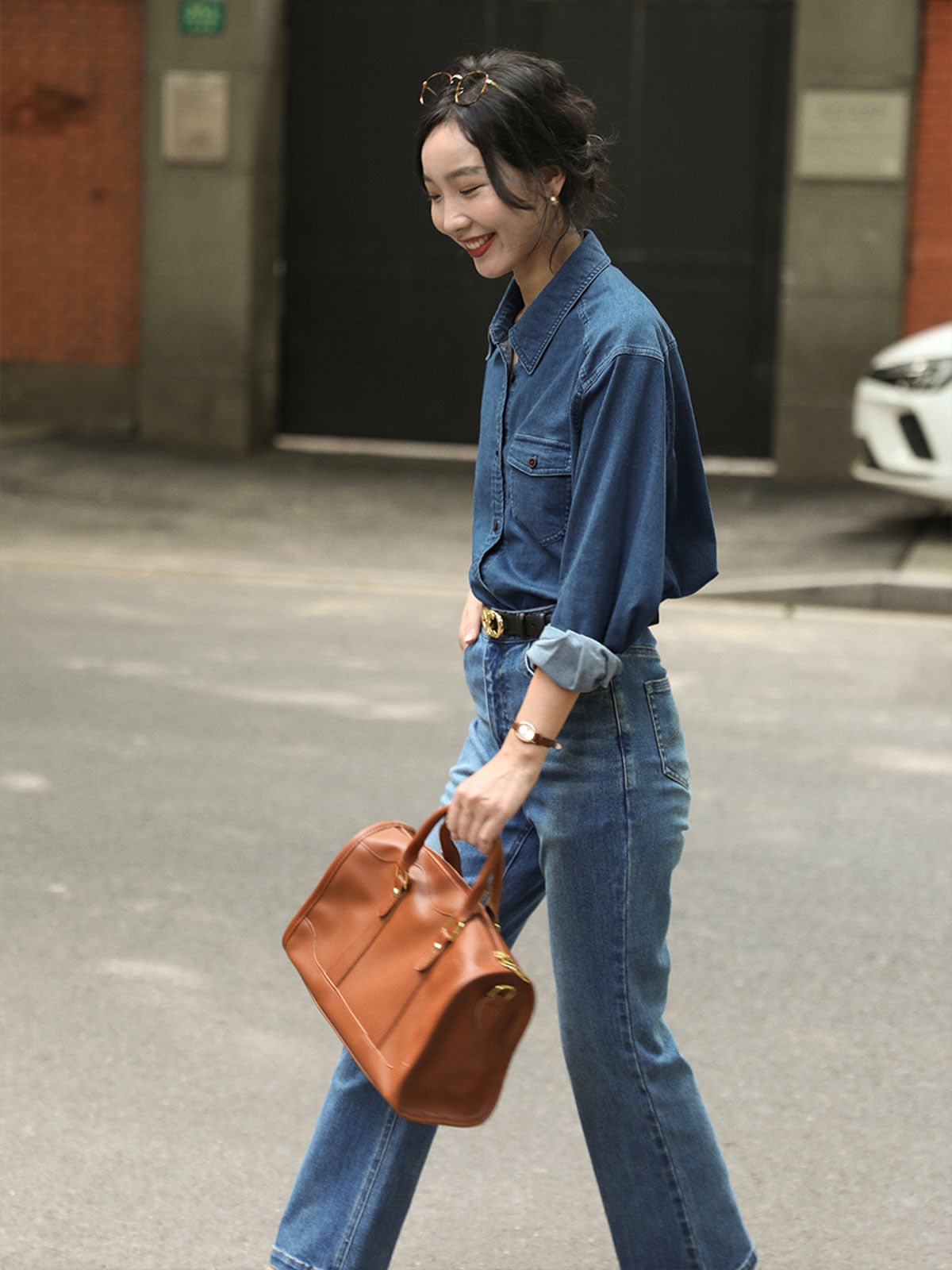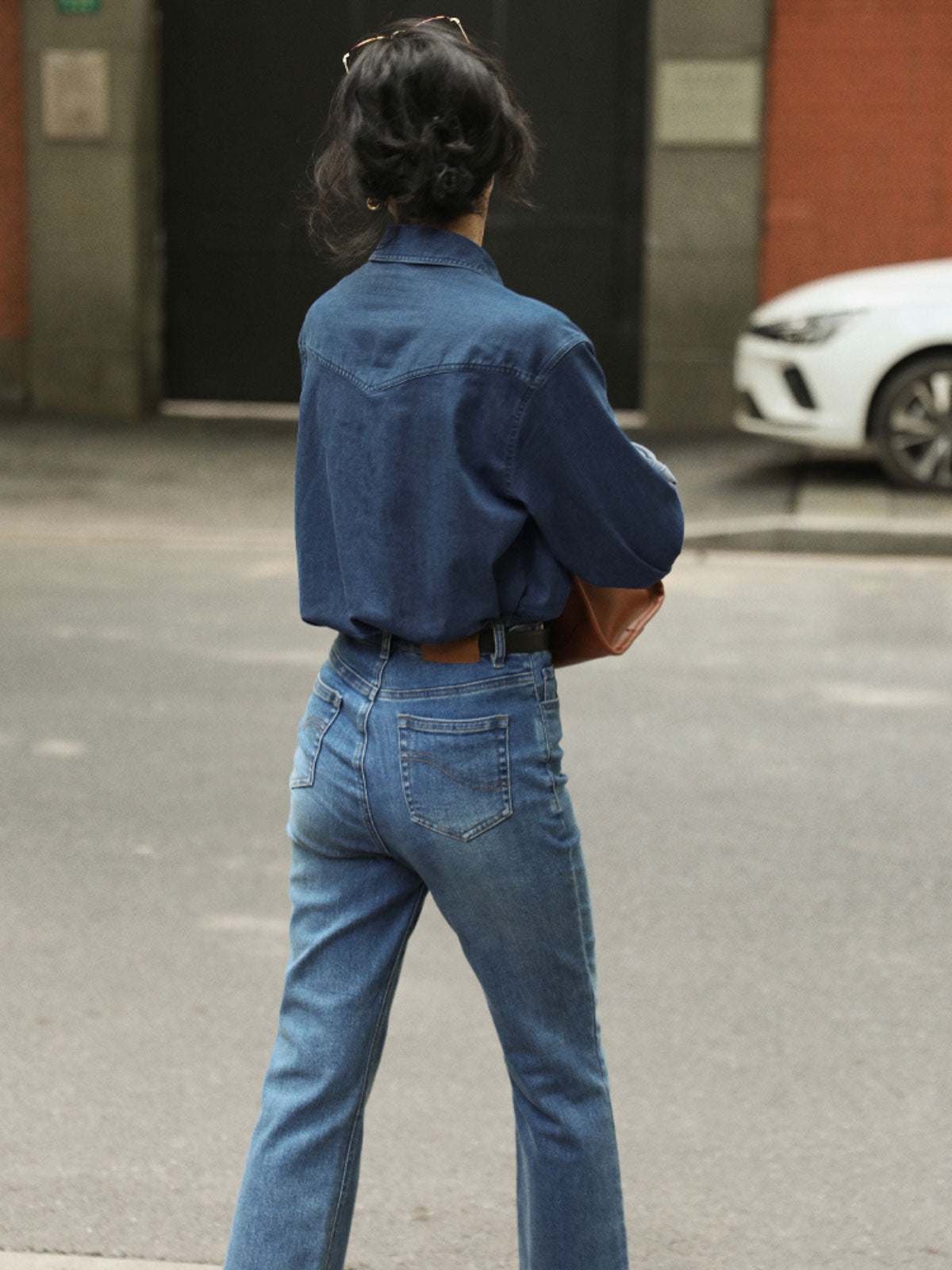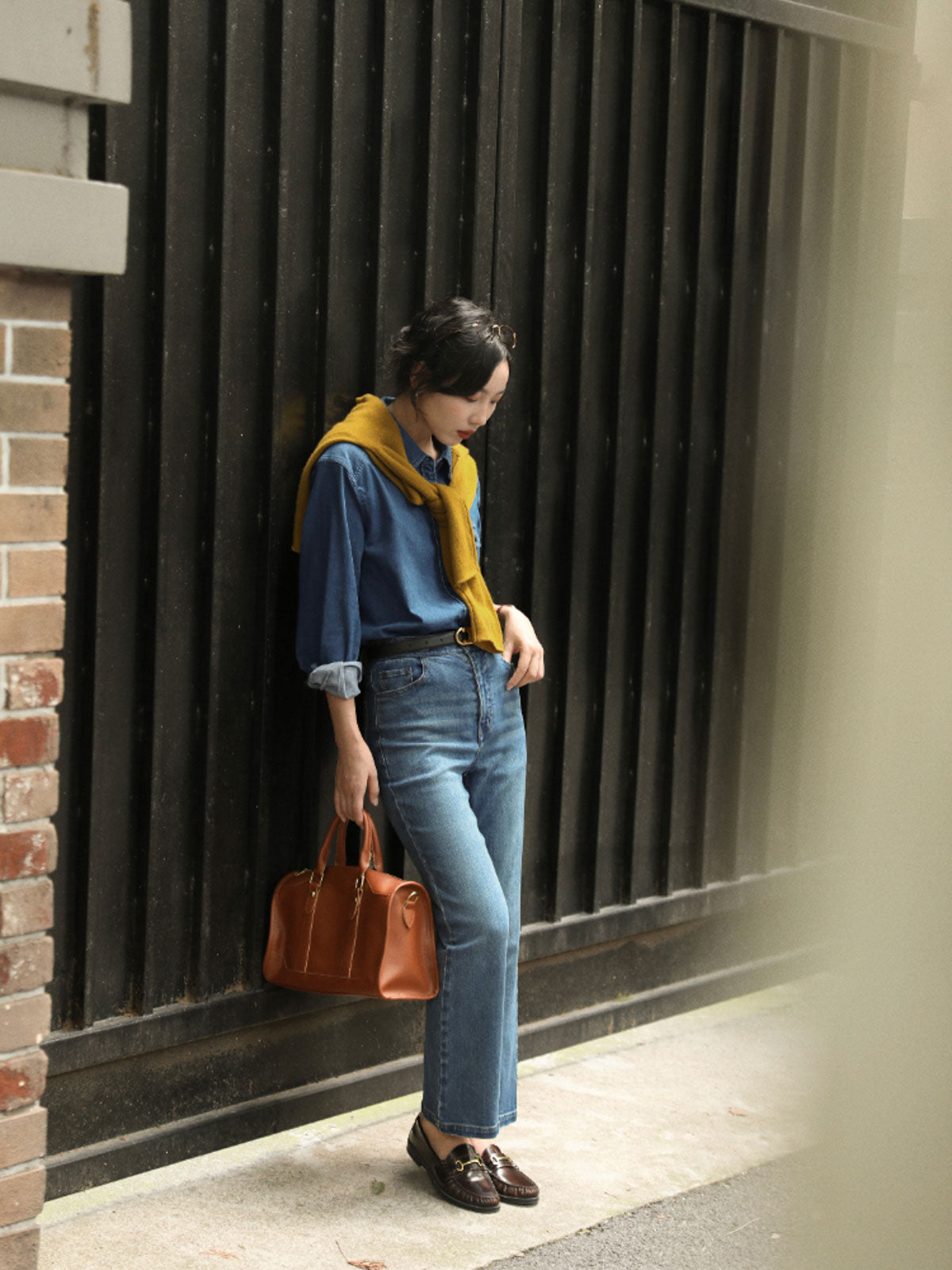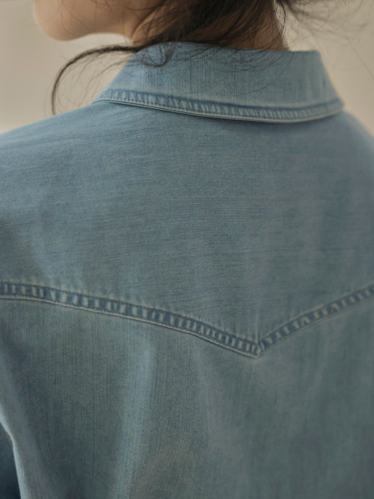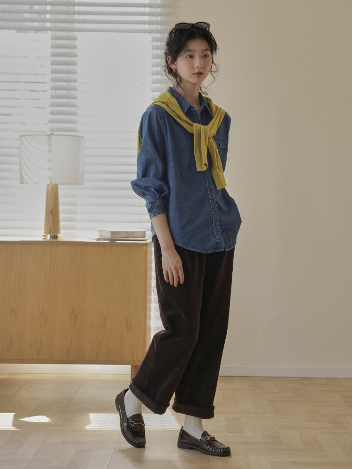 フレンチエレガンスとカジュアルスタイルが融合した、四季向けのデニムシャツです。