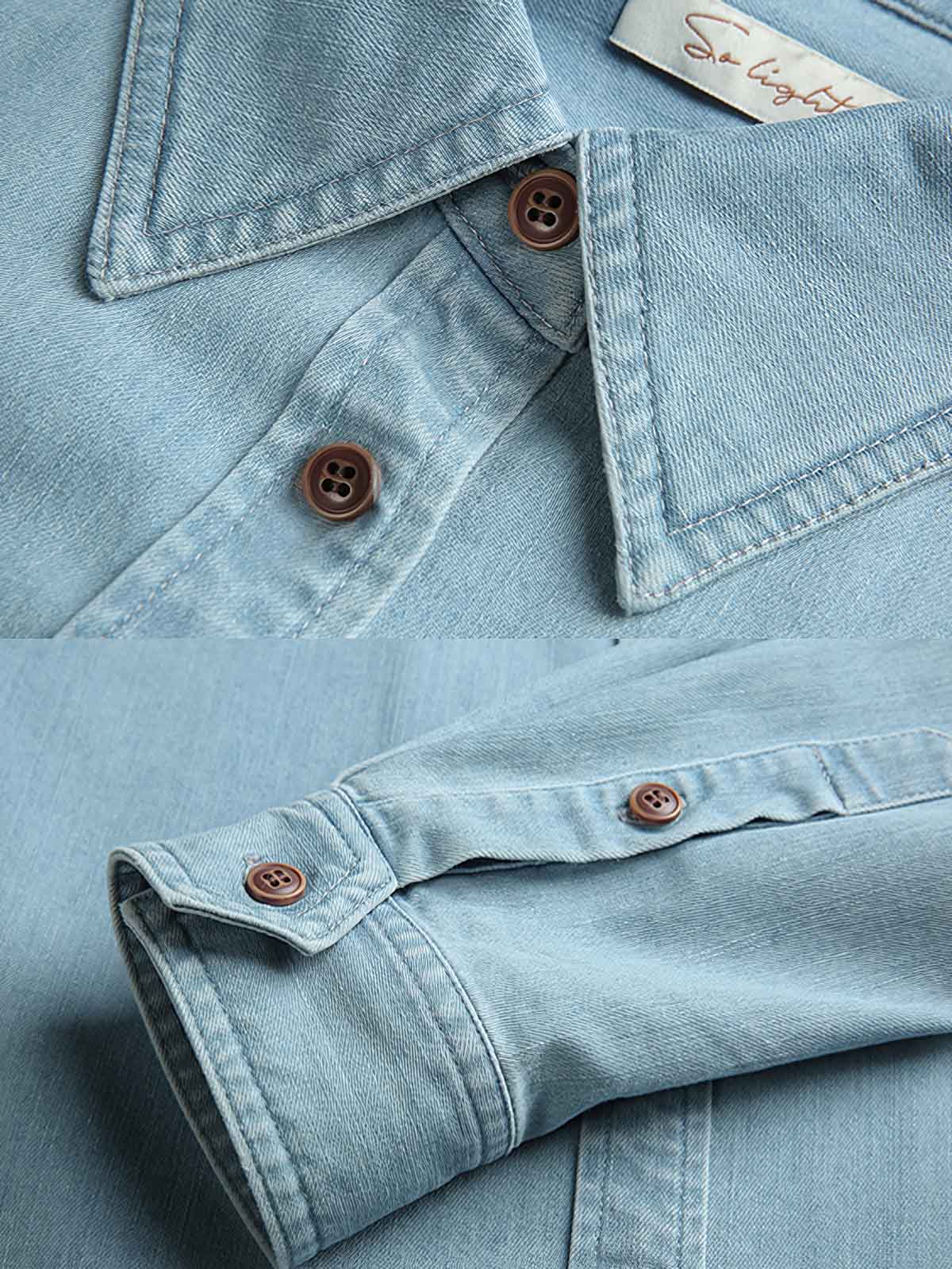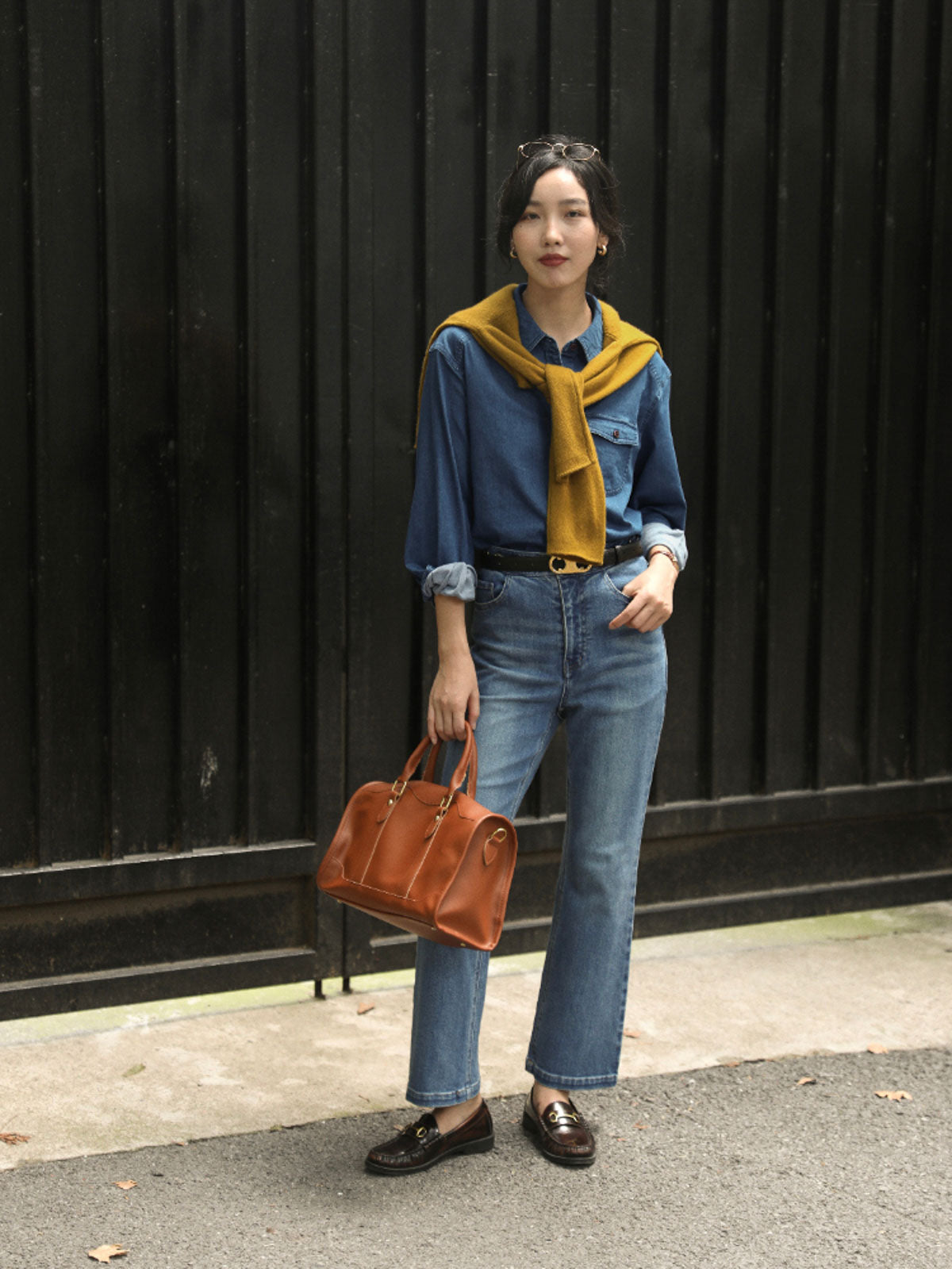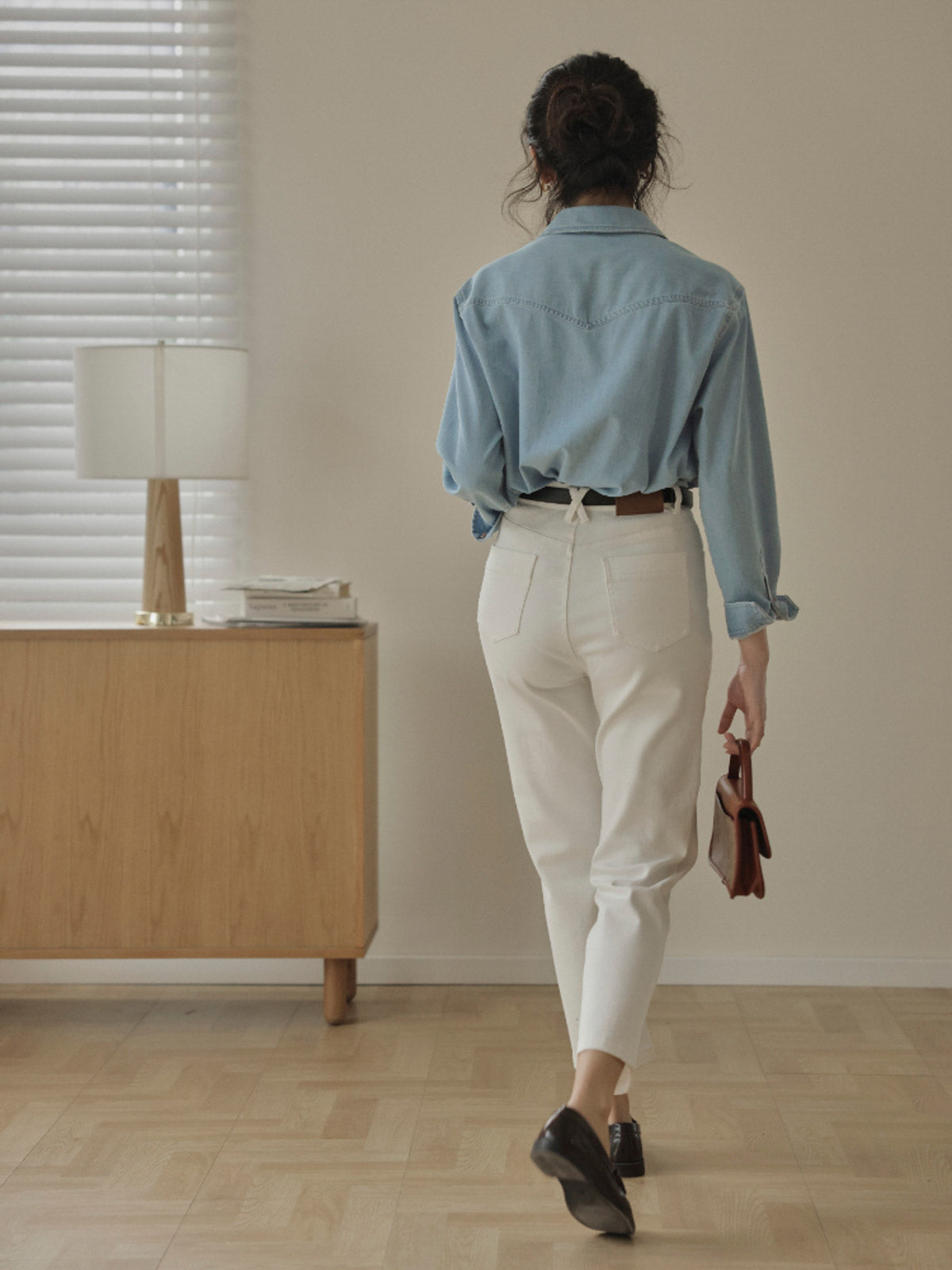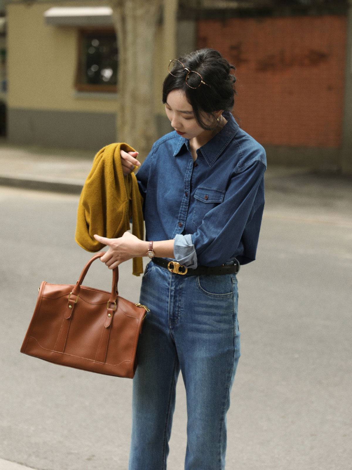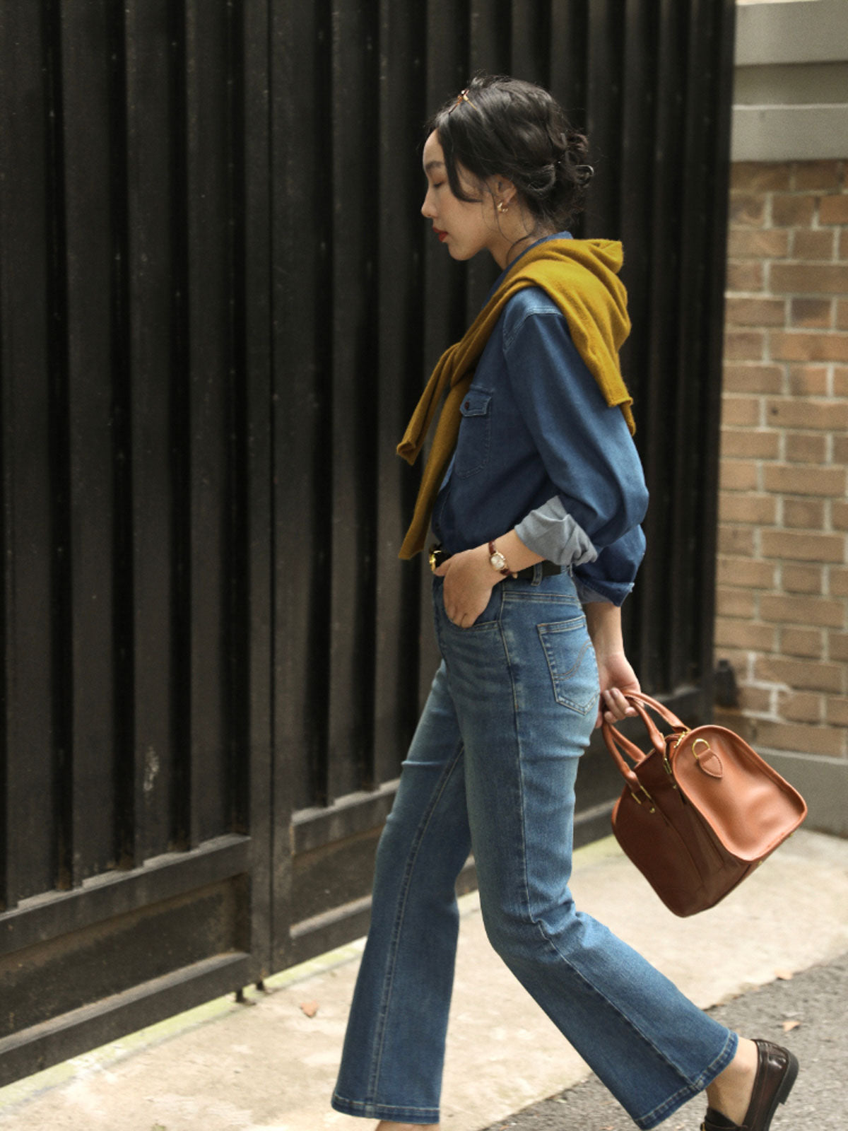 フレンチエレガンスとカジュアルスタイルが融合した、四季向けのデニムシャツです。