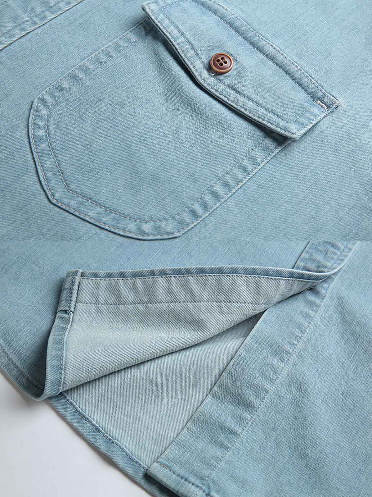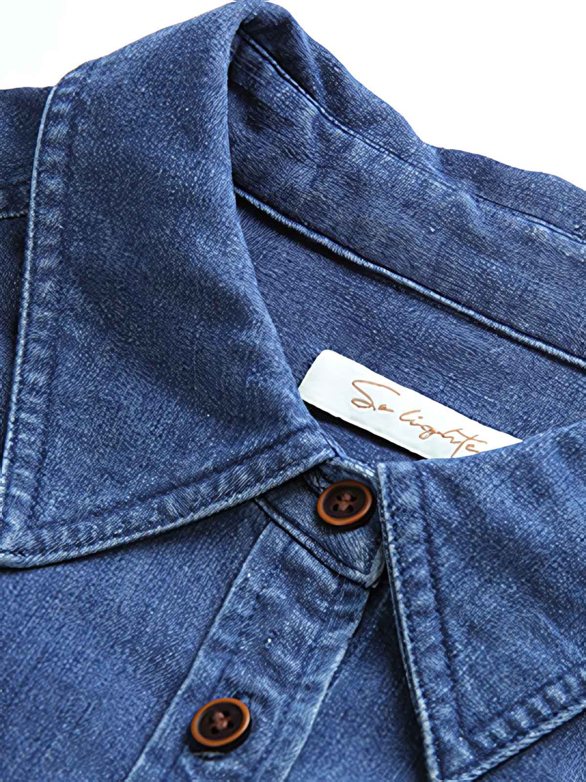 このデニムシャツは、柔らかく通気性に優れたコットンとポリエステルの混紡素材を使用し、快適な着心地を実現します。クラシックなデニムブルーが洗練された雰囲気を演出し、シンプルながらも細部にわたるメタルボタンが高品質を感じさせます。スリムフィットのシルエットが現代的なスタイリングを提供し、カジュアルなジーンズからフォーマルなスカートまで幅広いコーディネートに対応します。フロントの実用的なポケットは機能性とデザイン性を両立させています。