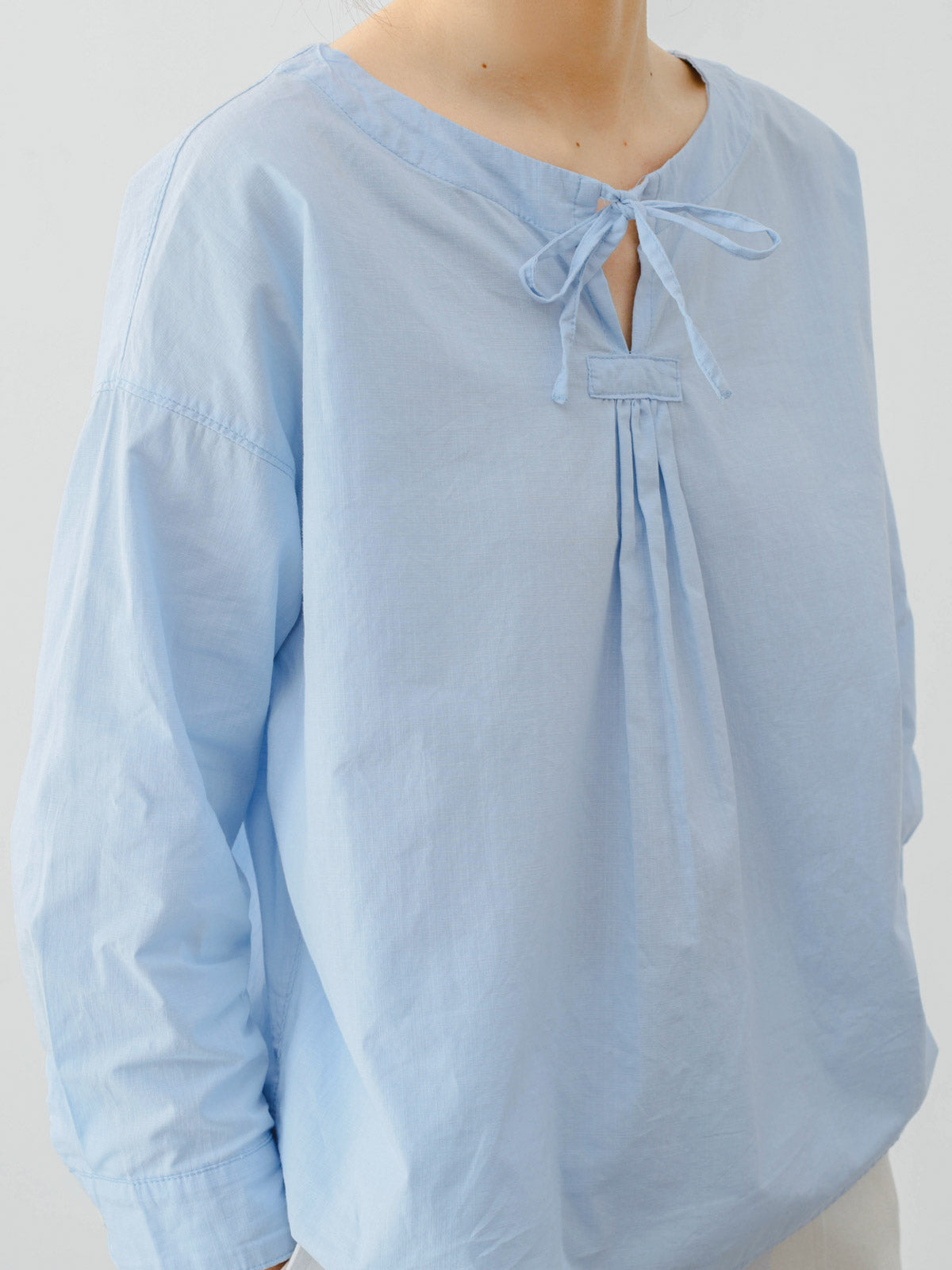 このベビーブルーのルーズフィット コットンシャツは、フランス風の文芸的な魅力を放ち、少女の清潔感とエレガンスを引き出します。