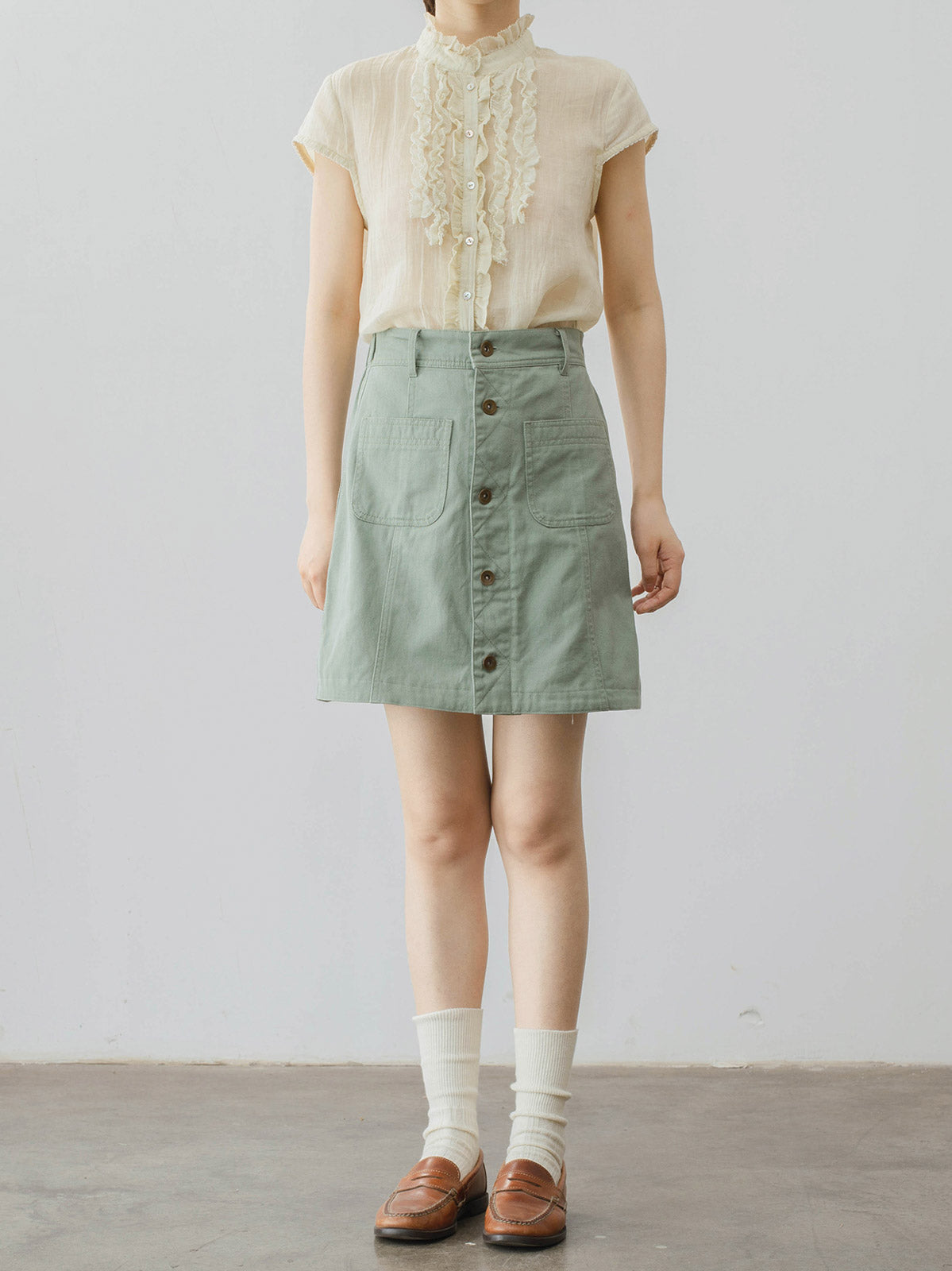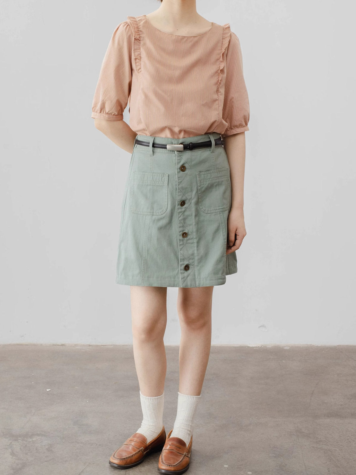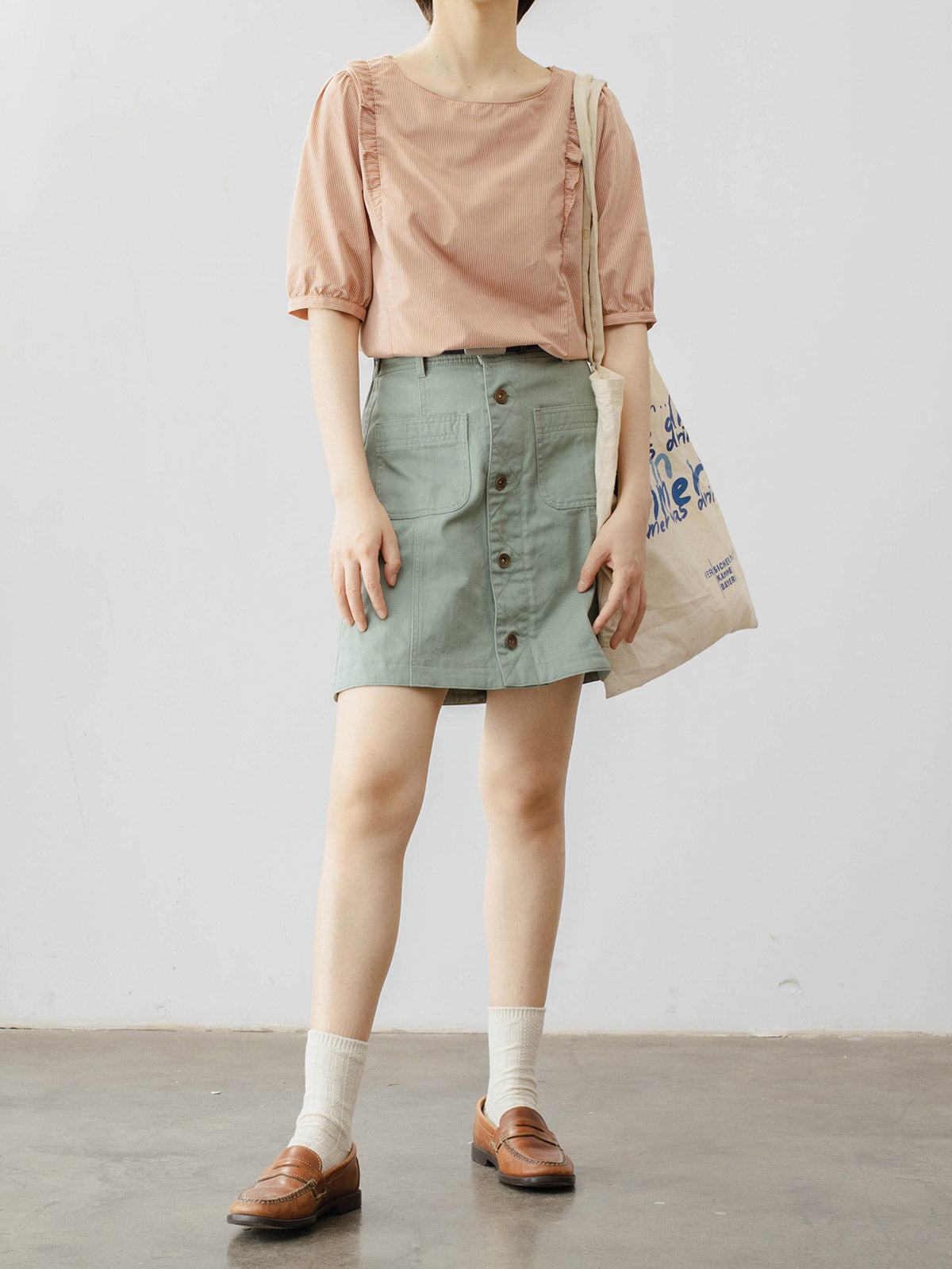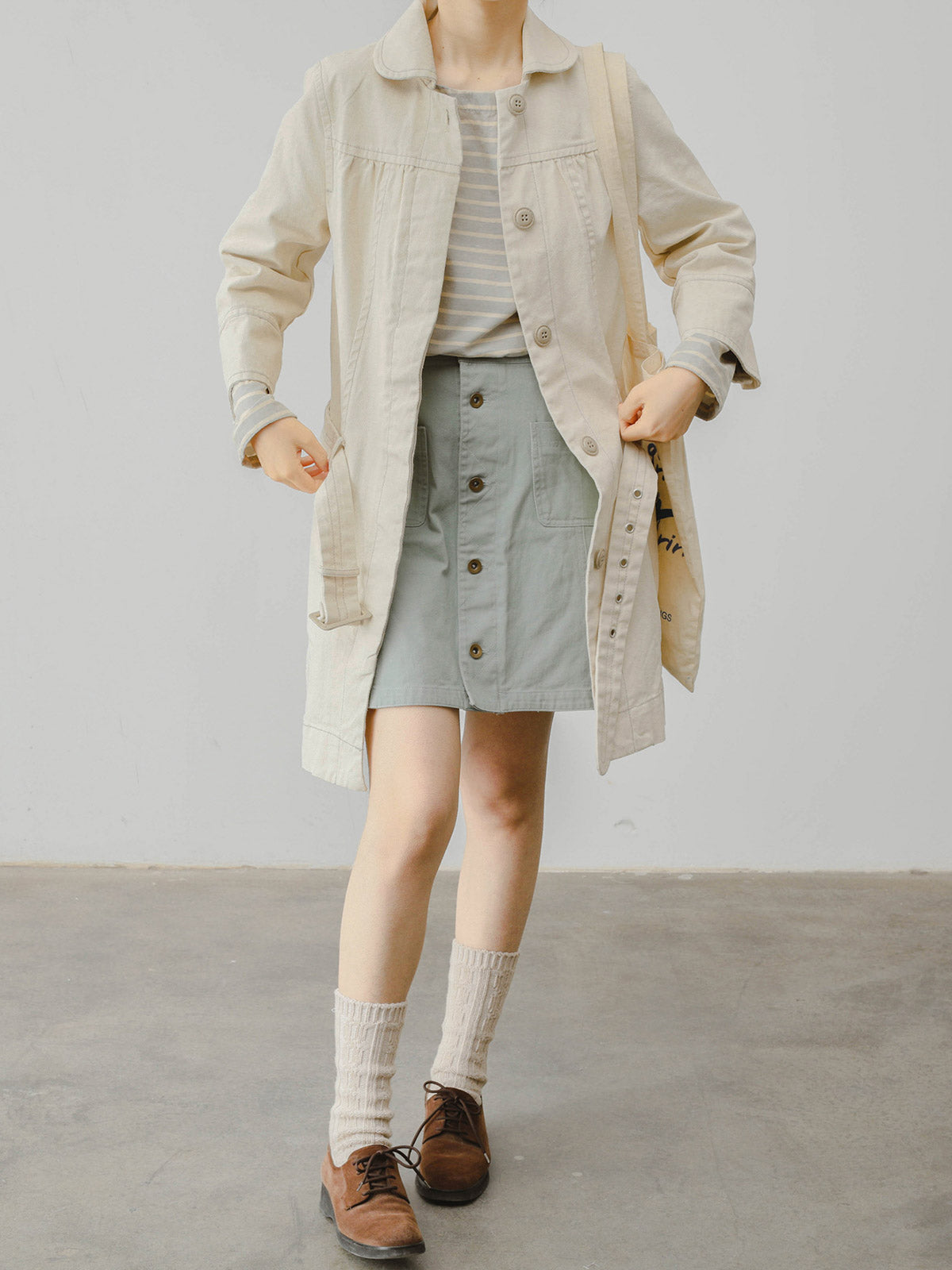 このスカートはフレンチレトロデザインを取り入れ、清新なミントグリーンの色調がアーティスティックな雰囲気を加えます。ハイウエストデザインとゴムウエストバンドにより、快適な着用感を保証し、ウエストラインを強調して脚のラインを長く見せます。前面にはボタンの装飾と大きなポケットがあり、実用的でありながらスタイリッシュです。スカートは100%純コットン素材を使用し、通気性が良く快適で、春夏の季節にぴったりです。Tシャツやシャツと合わせることで、エレガントなレトロスタイルを簡単に演出でき、日常のコーディネートに欠かせないアイテムです。