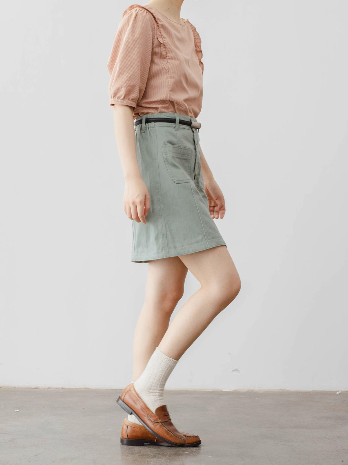 清新でエレガントなミントグリーンのハイウエスト ワークスカート、クラシックなレトロスタイルを演出します。