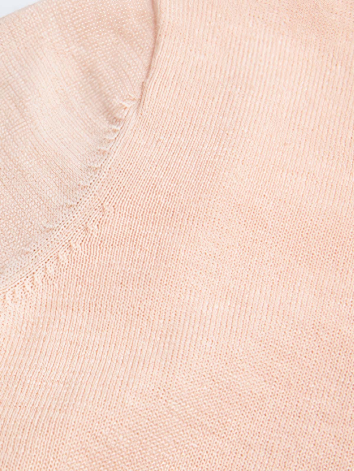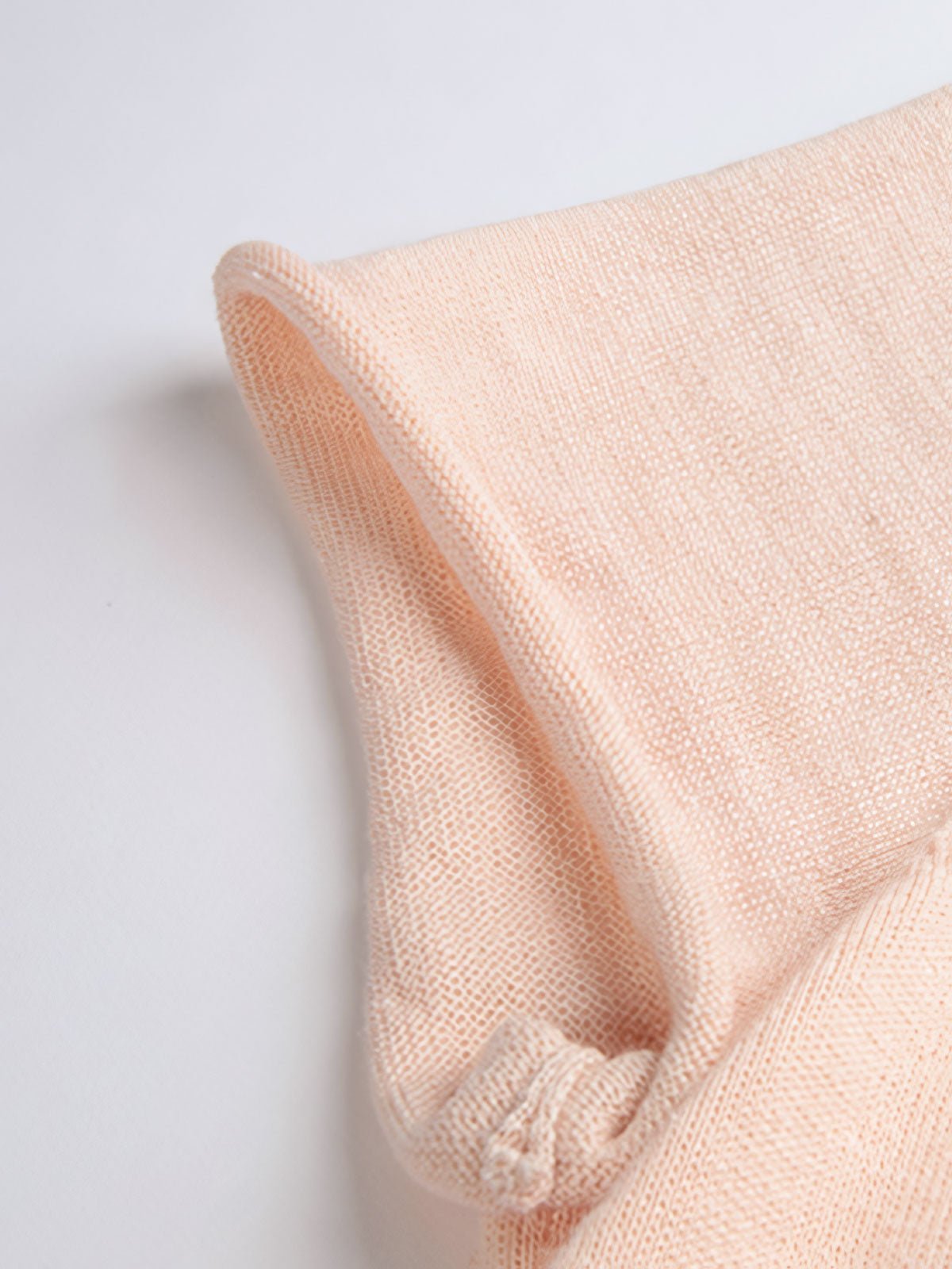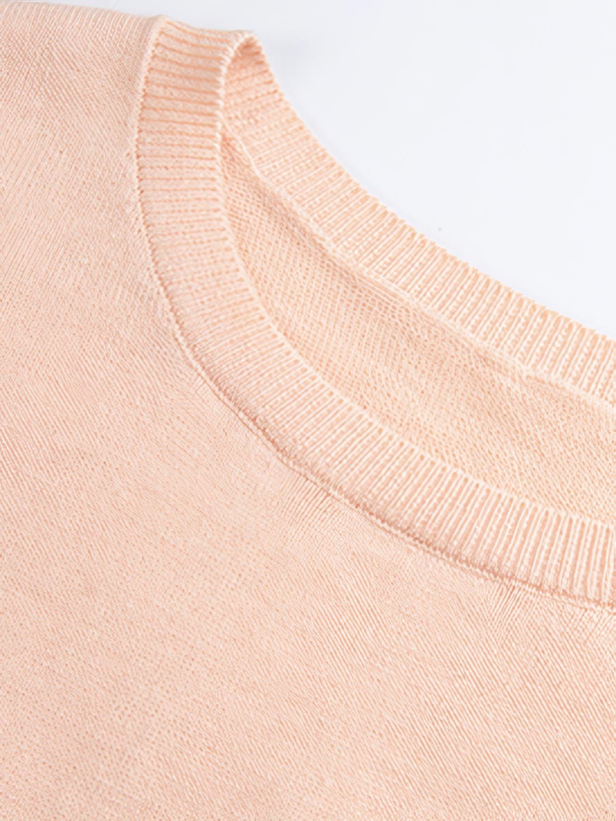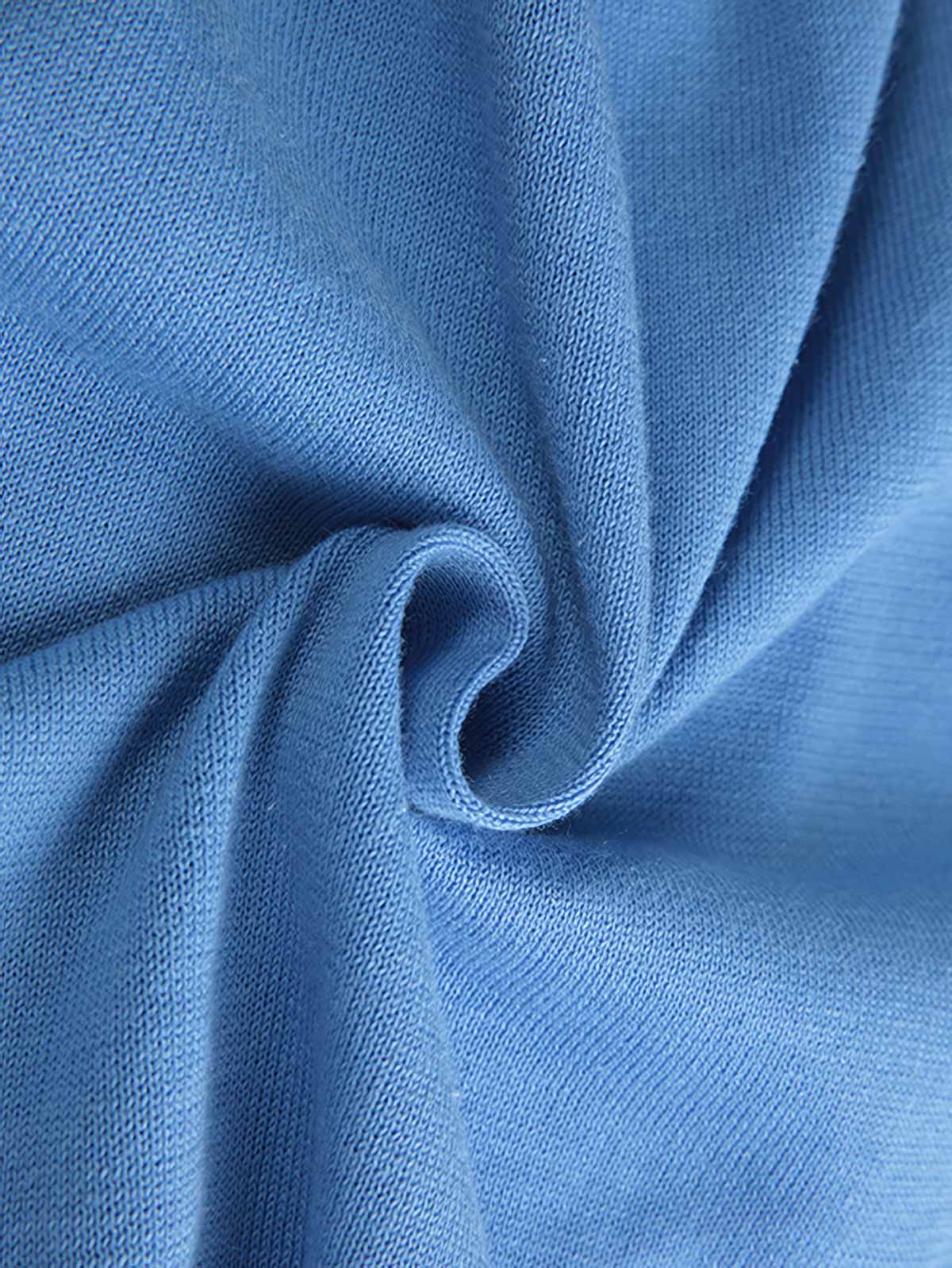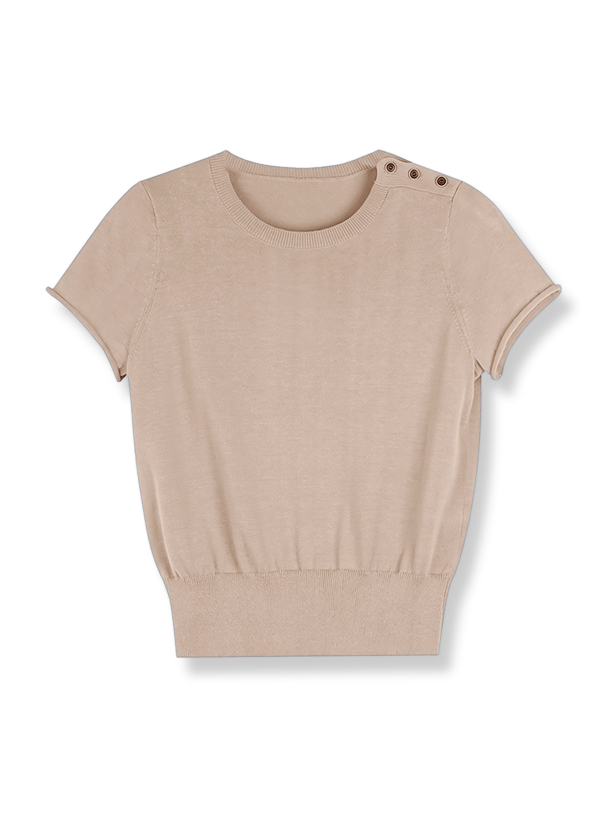 このフレンチスタイルのブルーラウンドネック半袖ニットは、コットン45%とリネン55%の混紡素材を採用し、非常に通気性が良く夏の暑い日でも涼しく快適です。軽量で透け感のあるニット素材は、どんなシーンにも適しており、ラウンドネックデザインがシンプルで洗練された雰囲気を演出します。裾は繊細にデザインされ、少し短めの丈がスタイリッシュなウエストラインを強調します。リラックスフィットのカットで様々な体型にマッチし、左肩にはボタンを配した開閉可能なデザインが施されています。これにより、デザインに新鮮さとユニークなアクセントが加わります。リブ編みの裾が自然なギャザーを作り出し、さらに快適な着心地を提供します。