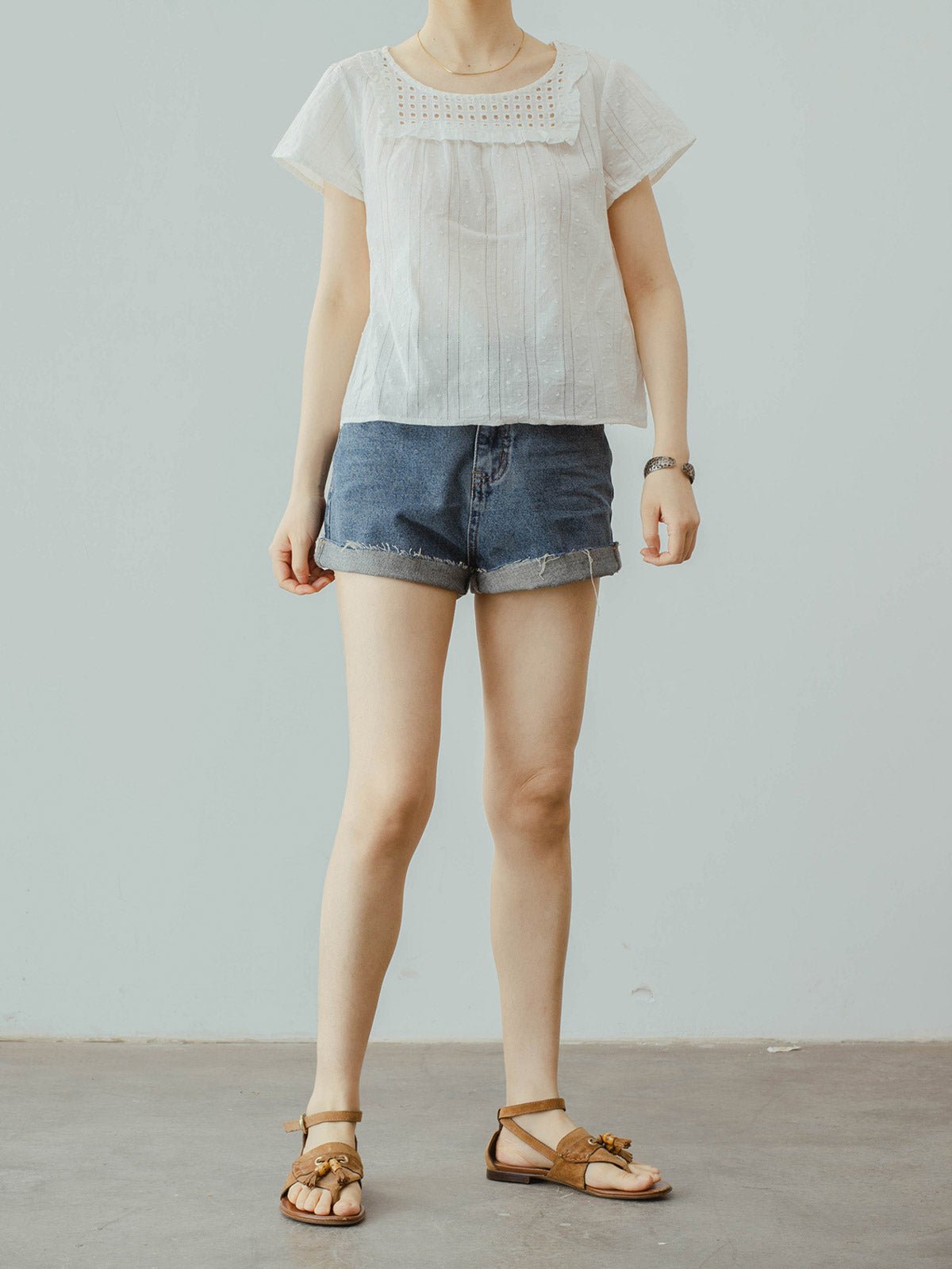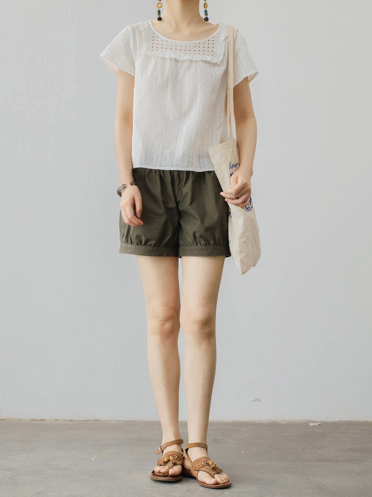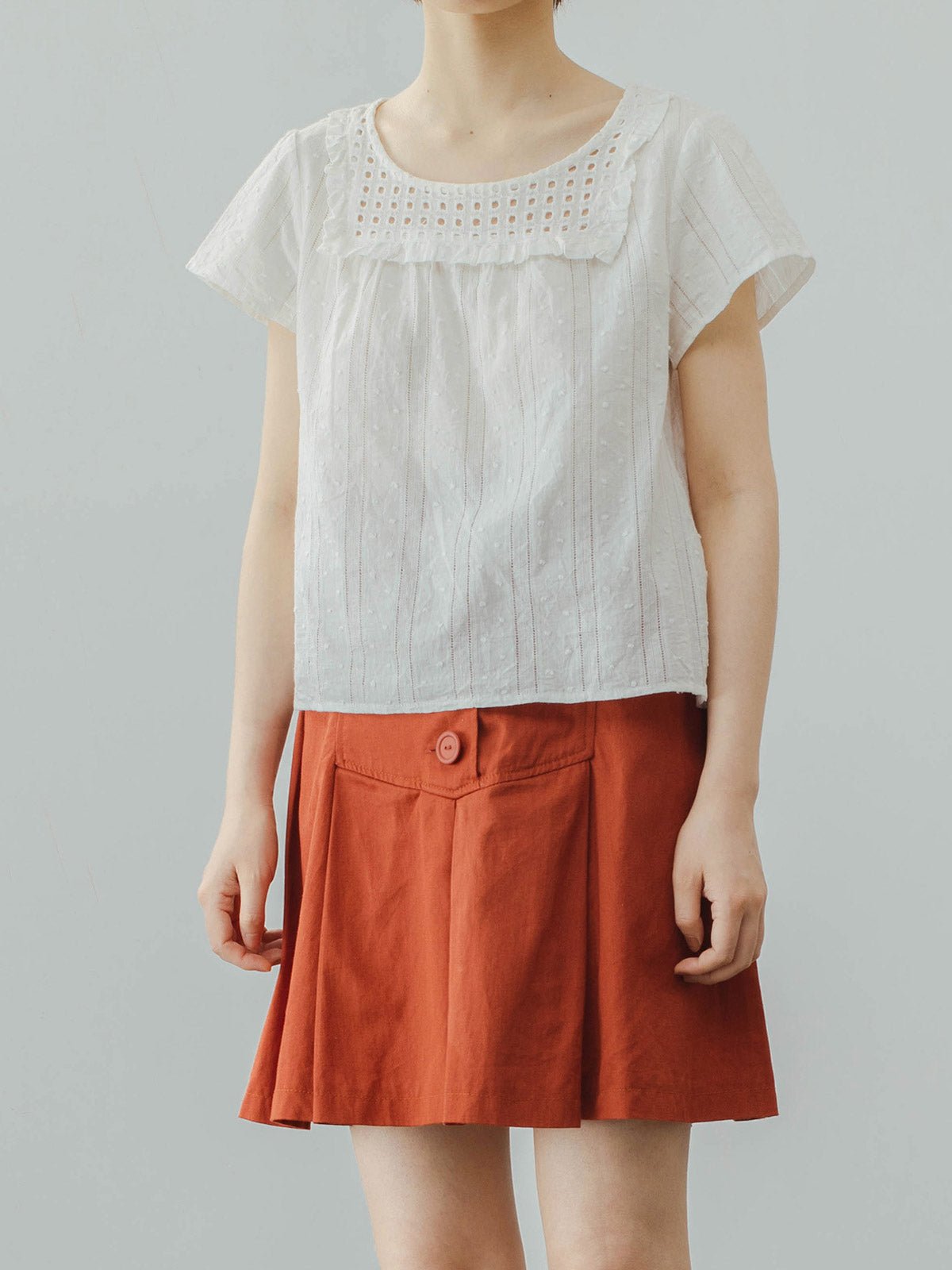 このブラウスはフレンチレトロスタイルを基にデザインされ、スクエアネックとレースのディテールが独特の可愛らしさと活力を演出します。100%高品質のコットン素材を使用しており、柔らかい質感で通気性が良く、夏の季節に最適です。ショート丈デザインは涼しげでスタイリッシュで、高腰のパンツやスカートとの相性が抜群です。ゆったりとしたフィットは快適さと動きやすさを提供します。日常のカジュアルスタイルやリラックスした集まりにも、このブラウスは元気いっぱいのスタイルを簡単に作り出し、若々しい魅力を引き立てます。