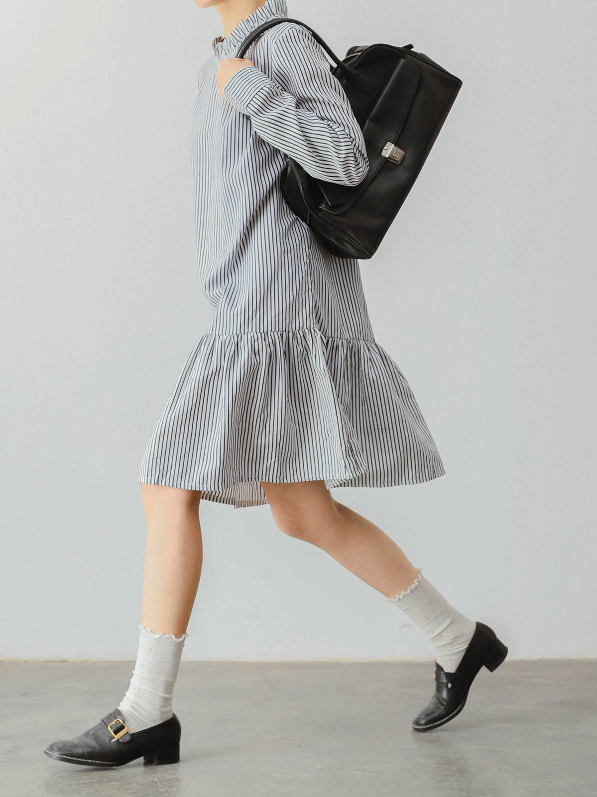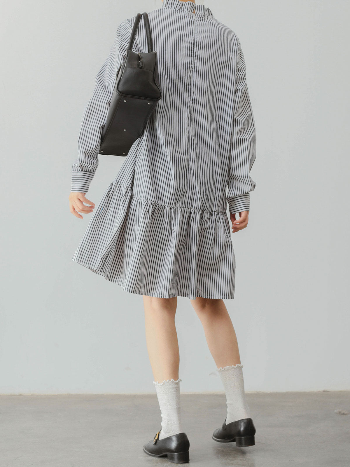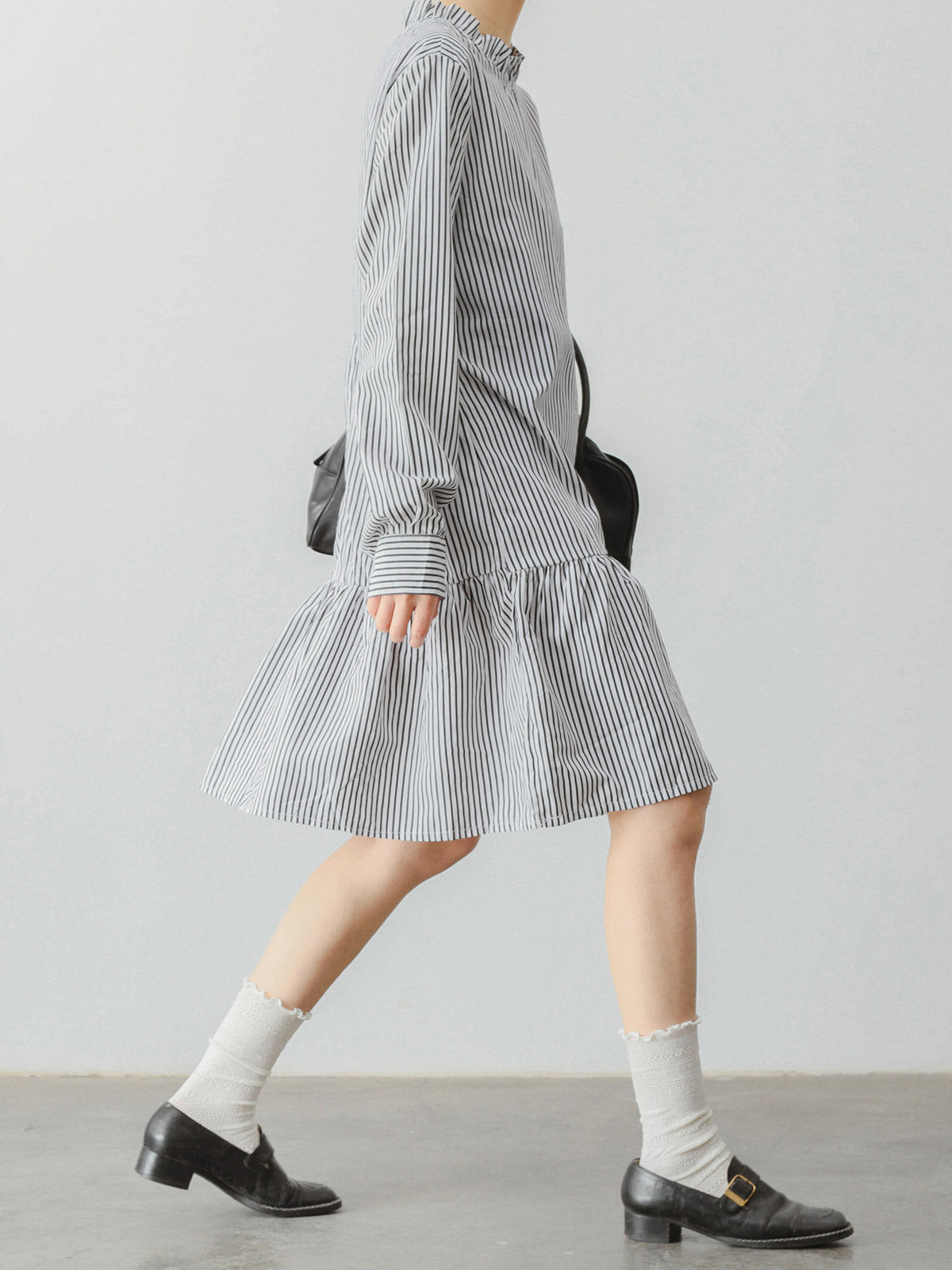 このワンピースはフレンチレトロなデザインで、クラシックなブラック&ホワイトのストライプがエレガントでファッショナブルな印象を与えます。ペタルスタンドカラーのデザインはユニークで繊細なスタイルを演出します。ローウエストデザインとマーメイドシルエットのスカートが組み合わさり、全体に層次感と動きを加えます。長袖デザインは春秋の季節に最適で、保温性とスタイルを兼ね備えています。ワンピースは高品質の素材を使用し、70%コットン、27%ナイロン、3%ポリウレタンの混紡生地で、柔らかく快適な着心地を提供し、通気性も優れています。