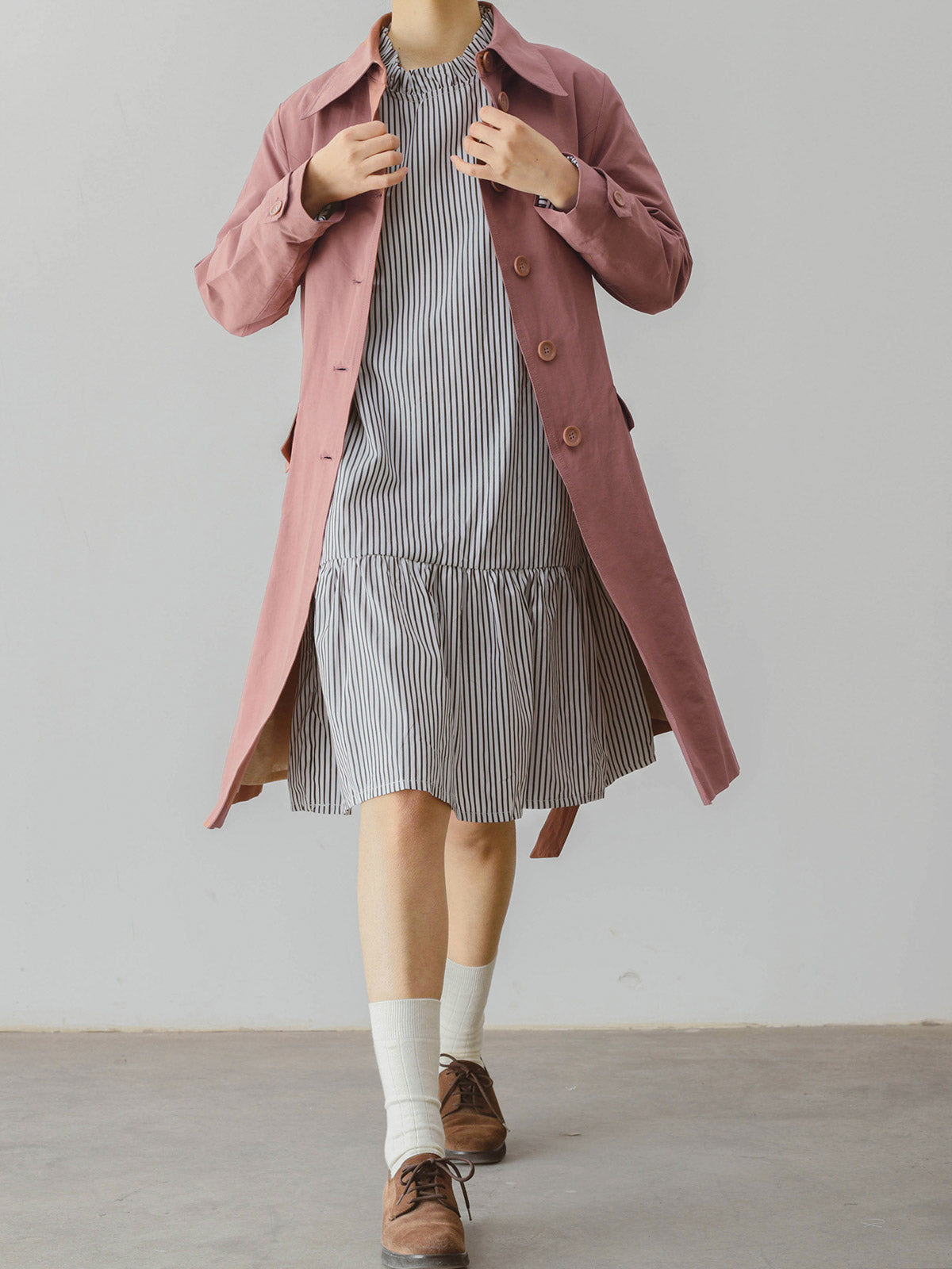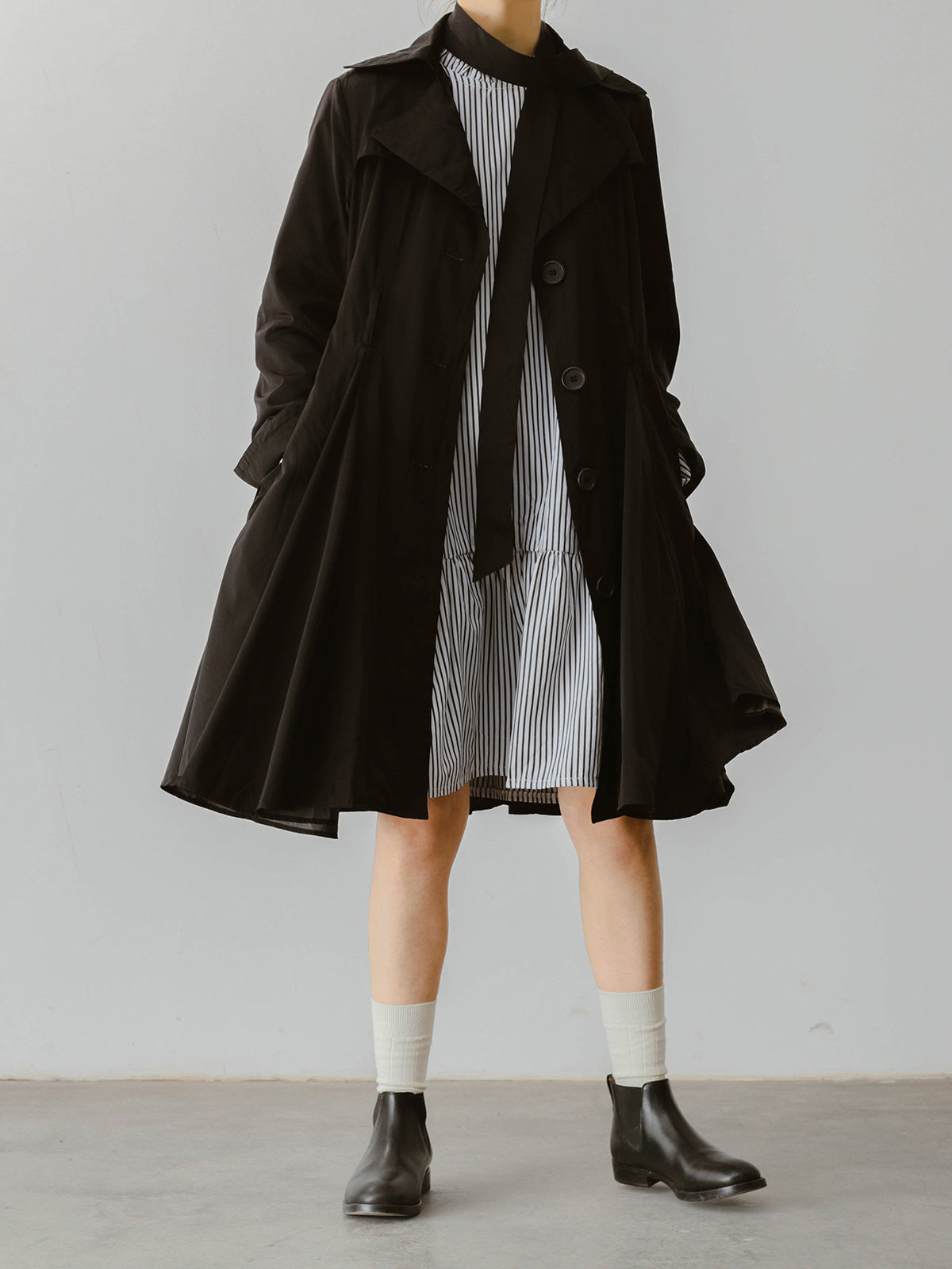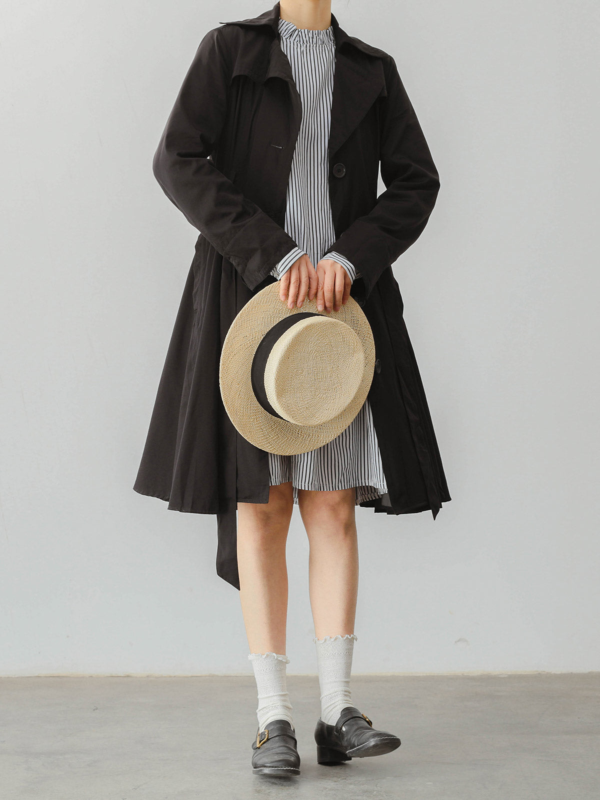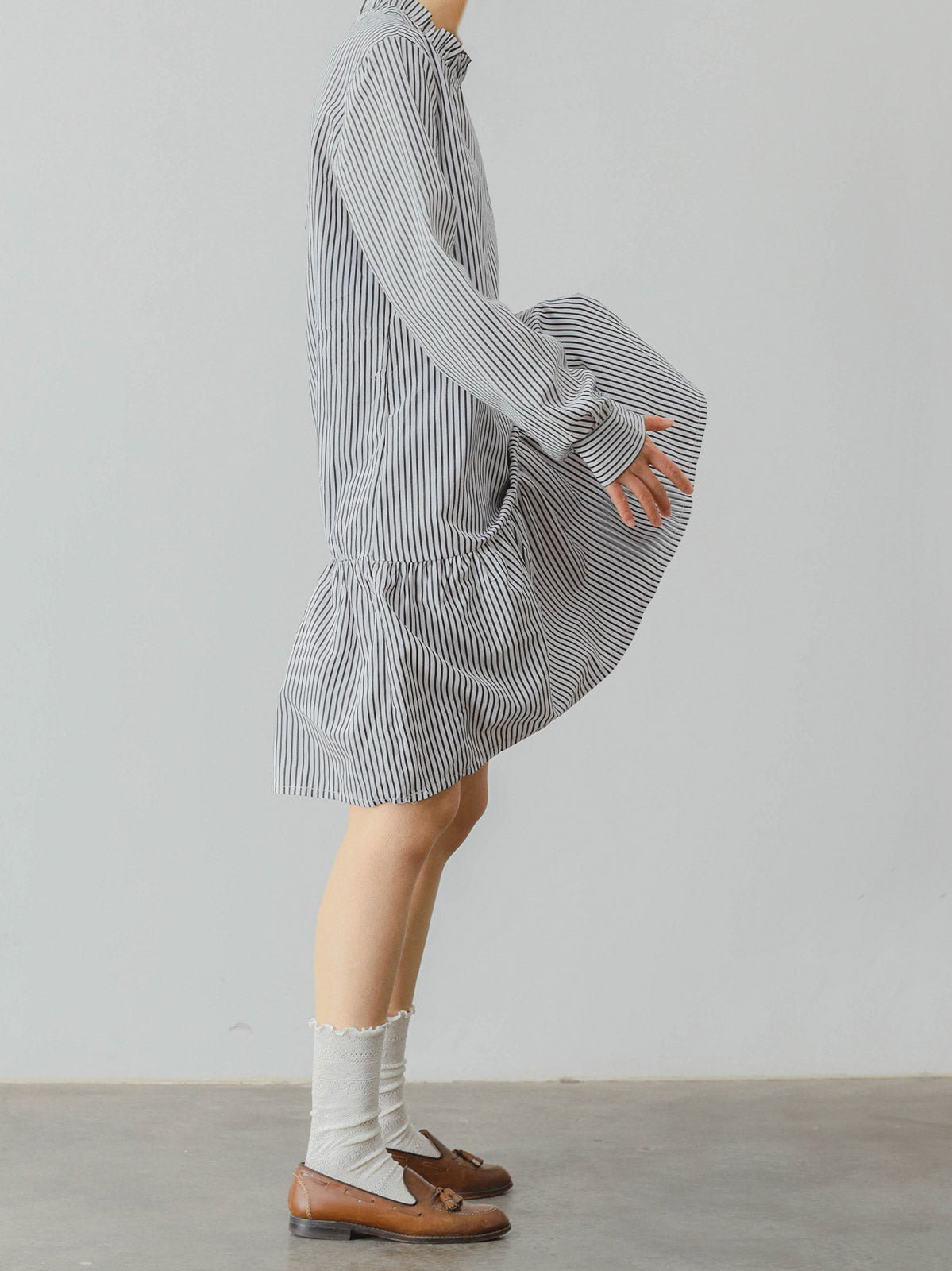 このワンピースはフレンチレトロなデザインで、クラシックなブラック&ホワイトのストライプがエレガントでファッショナブルな印象を与えます。ペタルスタンドカラーのデザインはユニークで繊細なスタイルを演出します。ローウエストデザインとマーメイドシルエットのスカートが組み合わさり、全体に層次感と動きを加えます。長袖デザインは春秋の季節に最適で、保温性とスタイルを兼ね備えています。ワンピースは高品質の素材を使用し、70%コットン、27%ナイロン、3%ポリウレタンの混紡生地で、柔らかく快適な着心地を提供し、通気性も優れています。