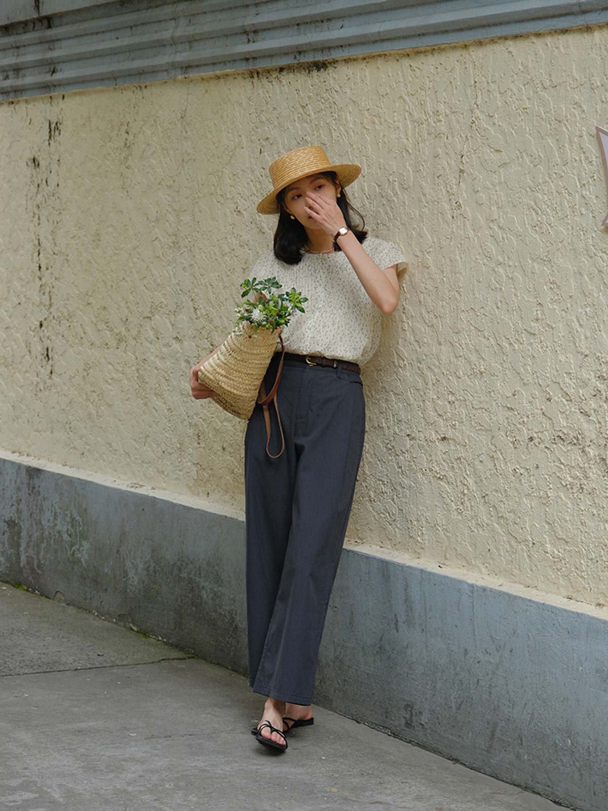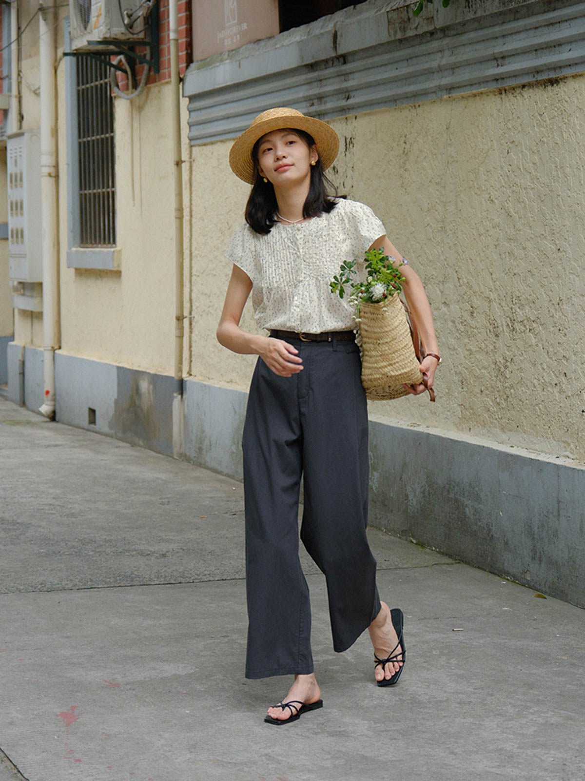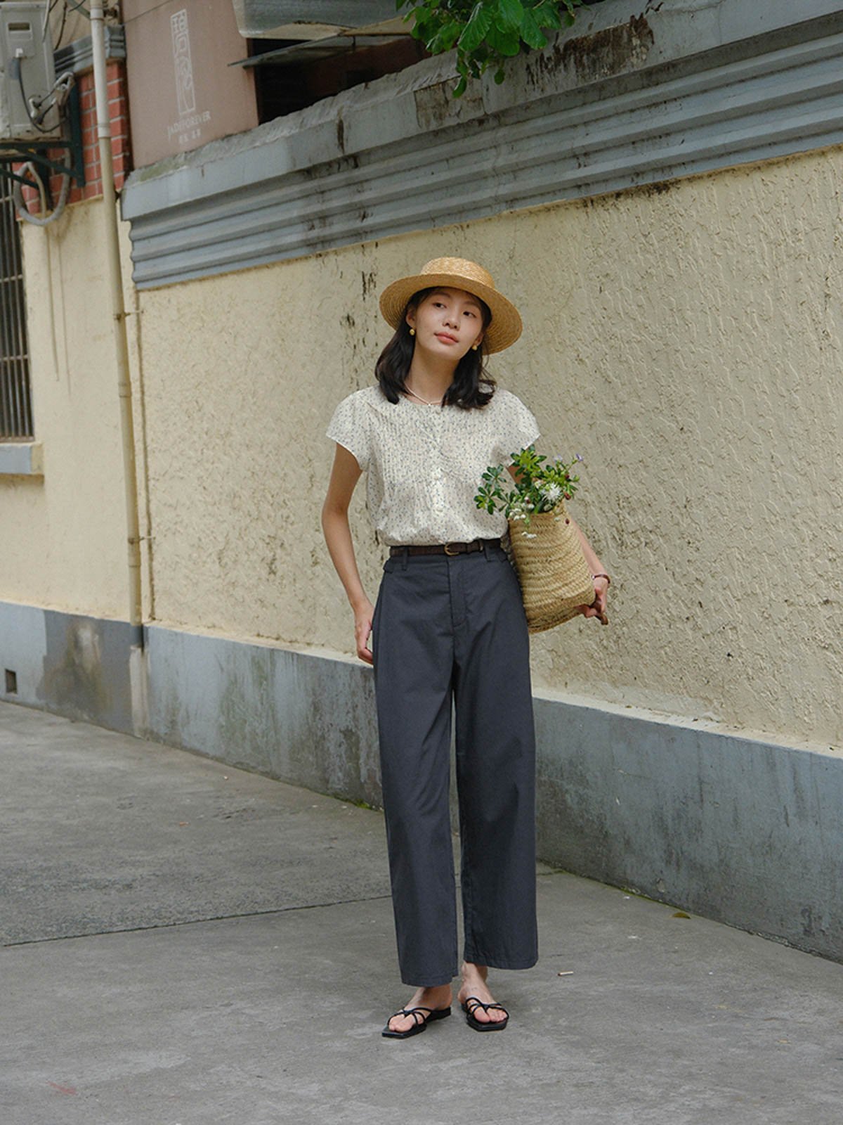 このフレンチスタイルのテンセルコットン九分丈パンツは、50%テンセルと50%コットンの混紡素材を使用し、快適さと通気性を確保しています。ストレートなデザインと九分丈の長さは、スタイリッシュでスリムなシルエットを演出し、さまざまなシーンに適しています。ウエストデザインはシンプルでエレガントで、パンツの幅が広く、動きやすい仕様です。シャツやカジュアルなトップスと合わせることで、エレガントなフレンチスタイルを簡単に表現できます。柔らかく通気性のある素材で、夏の着用に最適です。