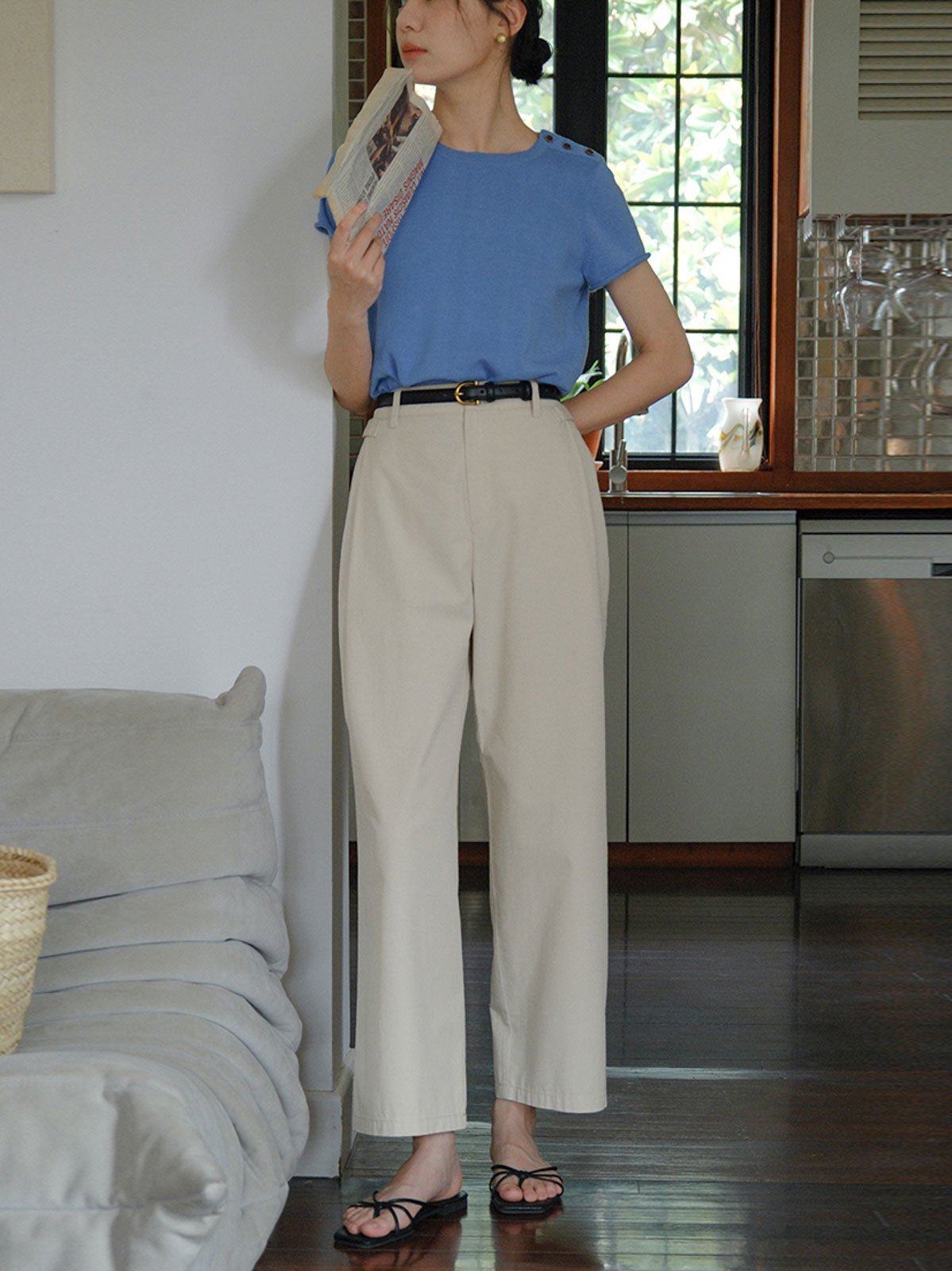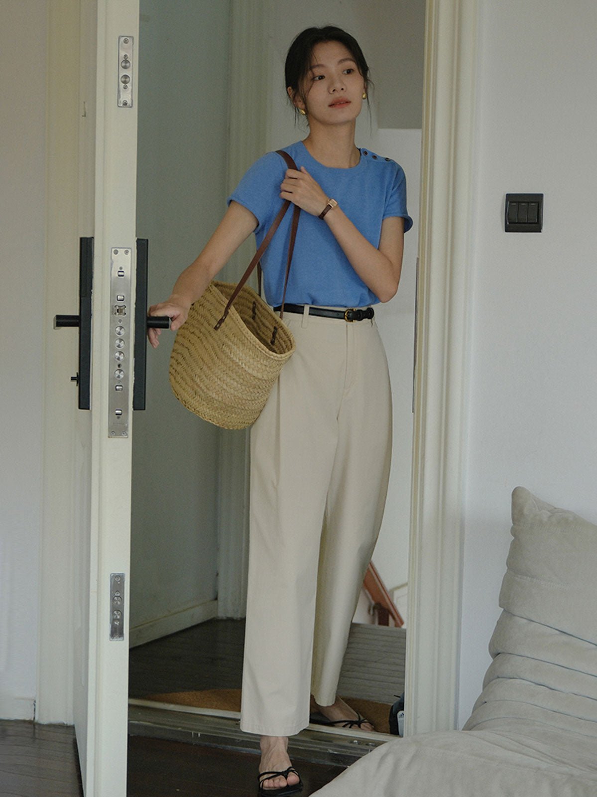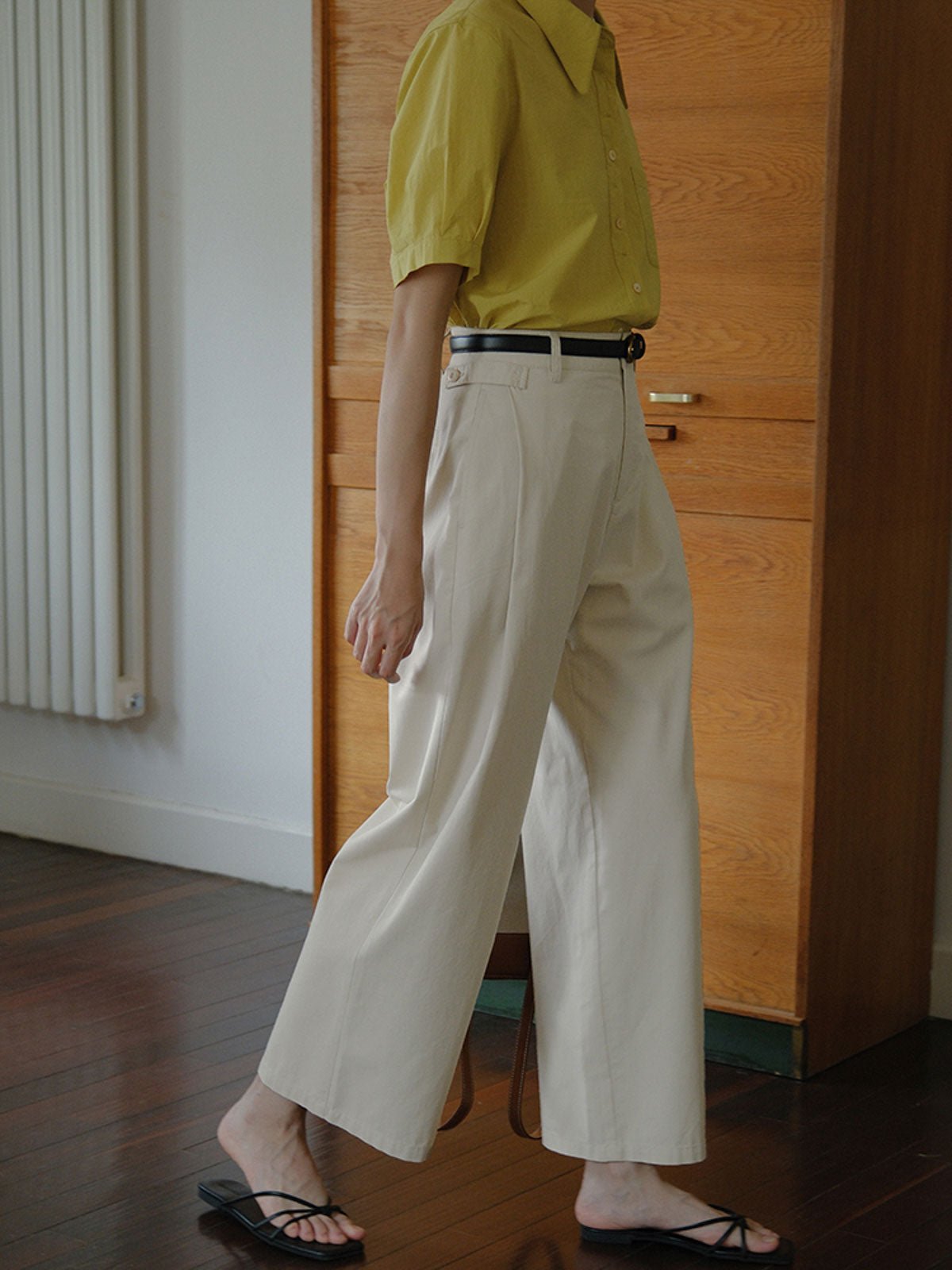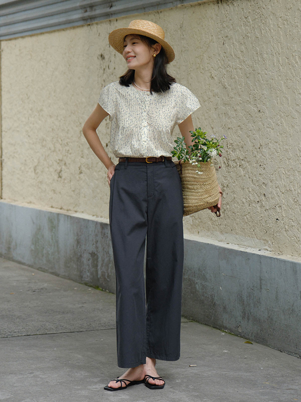 このフレンチスタイルのテンセルコットン九分丈パンツは、50%テンセルと50%コットンの混紡素材を使用し、快適さと通気性を確保しています。ストレートなデザインと九分丈の長さは、スタイリッシュでスリムなシルエットを演出し、さまざまなシーンに適しています。ウエストデザインはシンプルでエレガントで、パンツの幅が広く、動きやすい仕様です。シャツやカジュアルなトップスと合わせることで、エレガントなフレンチスタイルを簡単に表現できます。柔らかく通気性のある素材で、夏の着用に最適です。