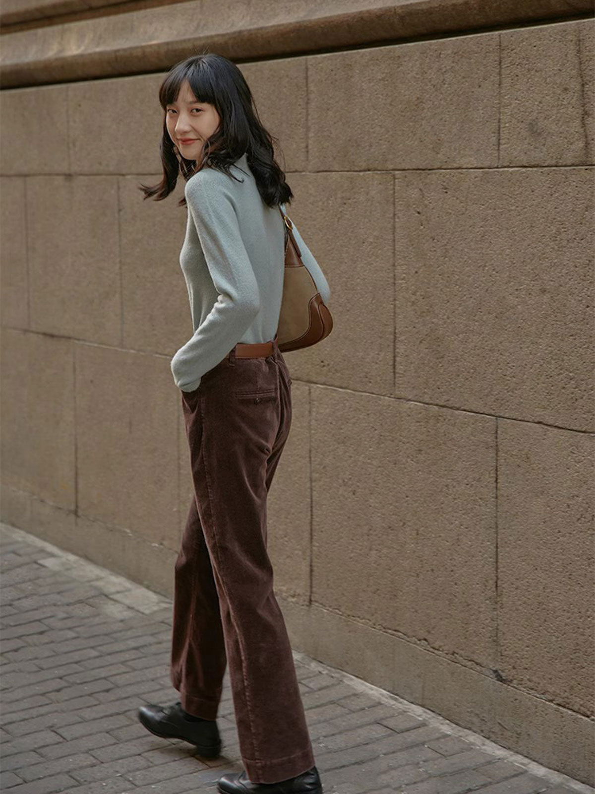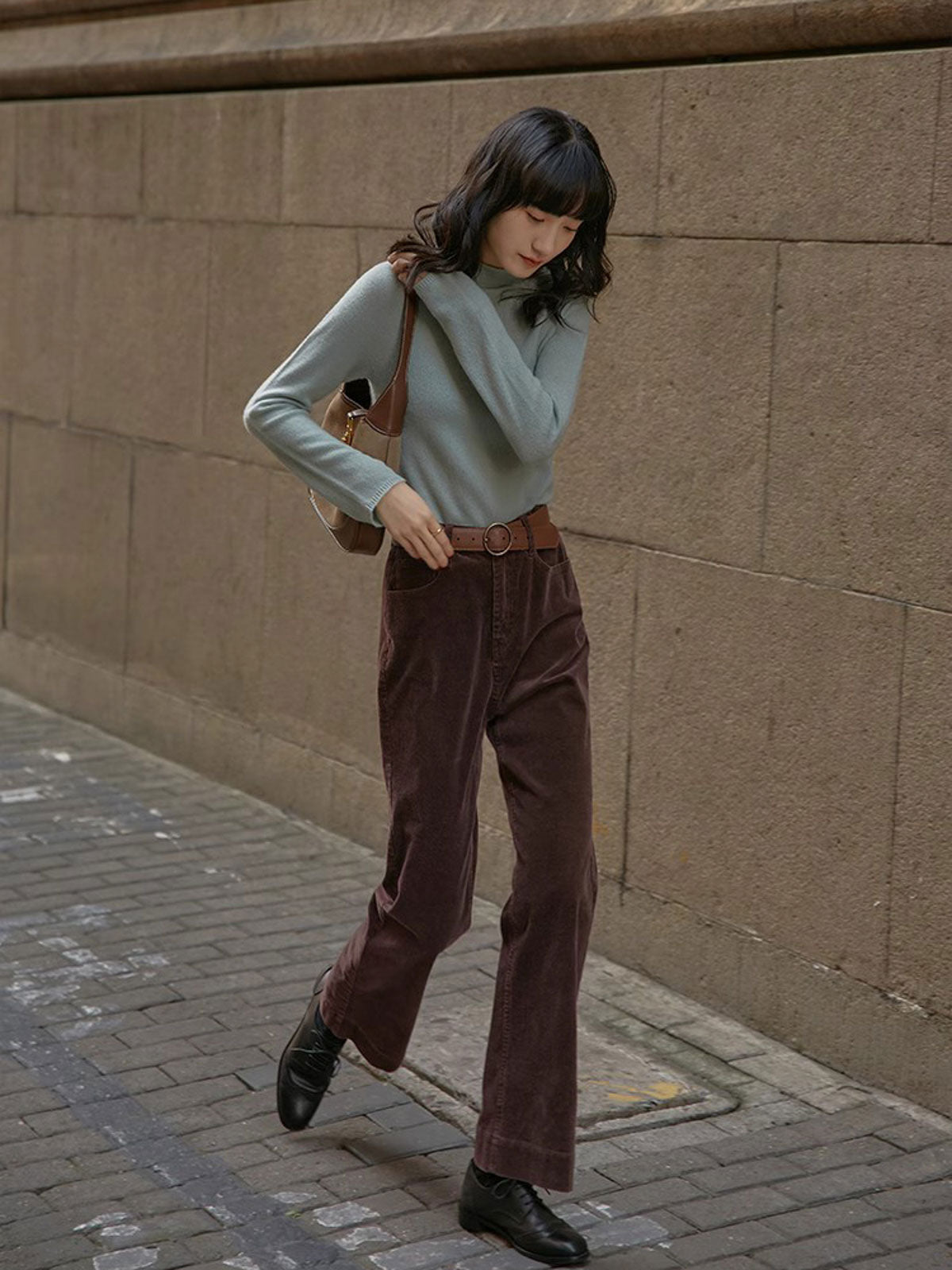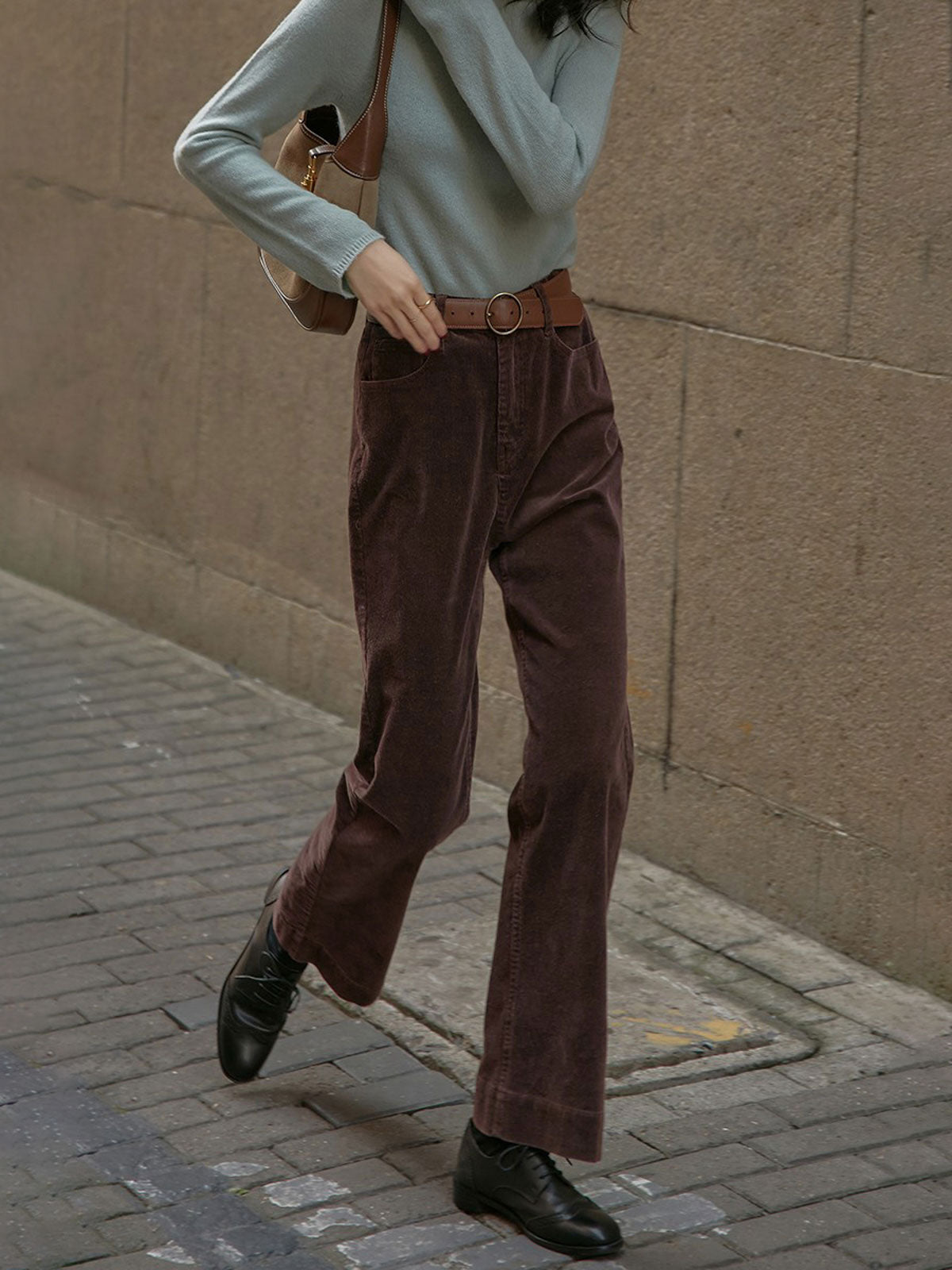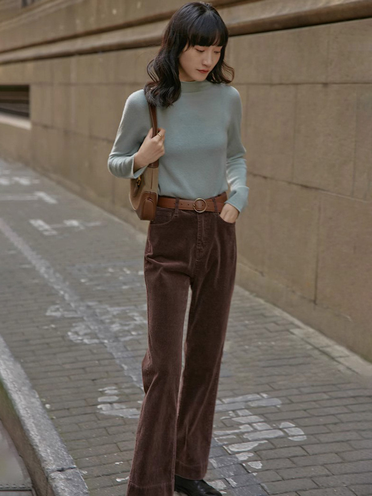 ハイウエストと微フレアデザインが融合し、クラシックでモダンなスタイルを実現します。