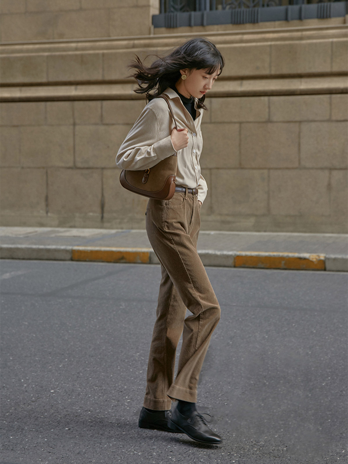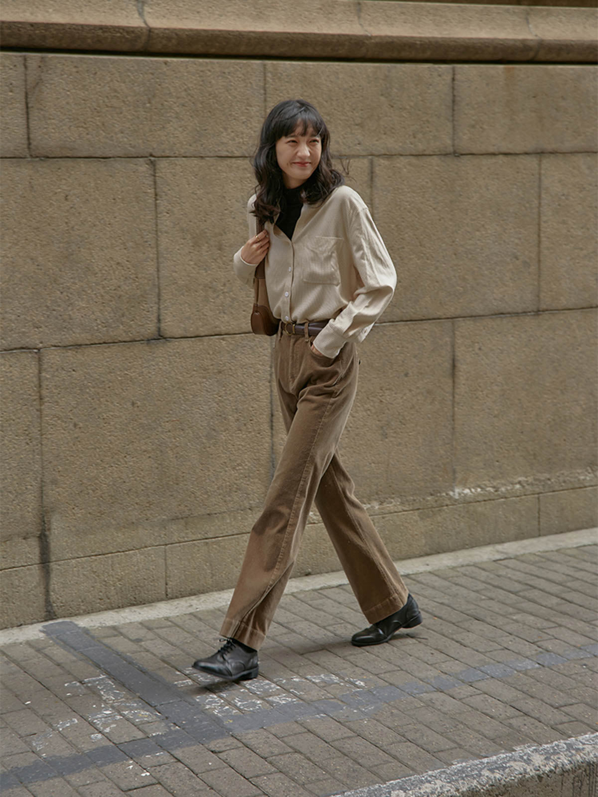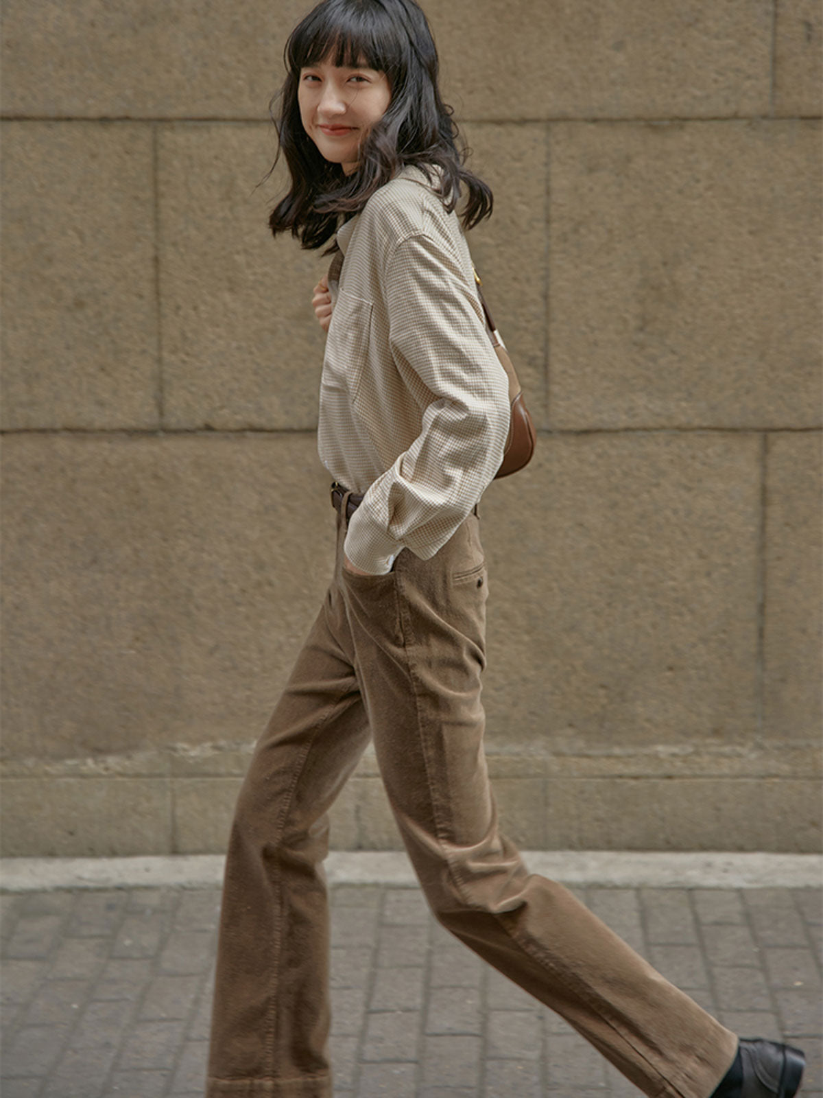 ハイウエストと微フレアデザインが融合し、クラシックでモダンなスタイルを実現します。
