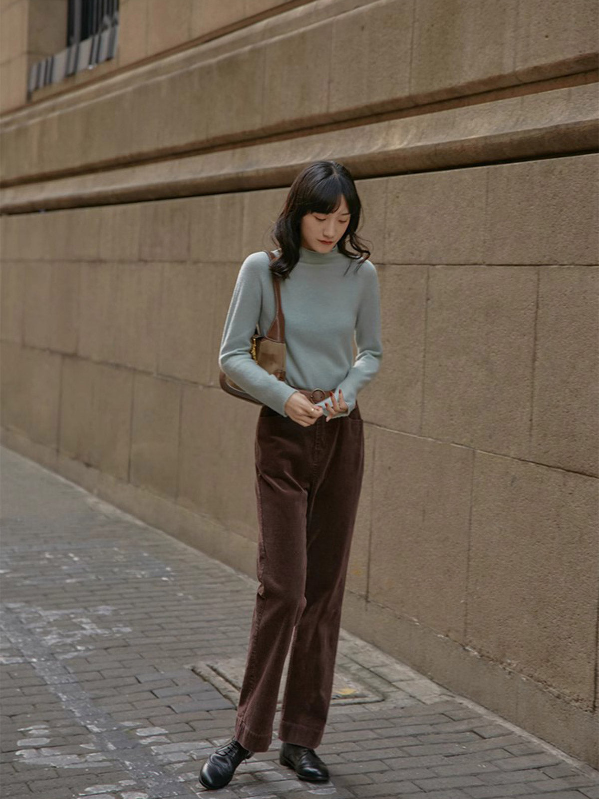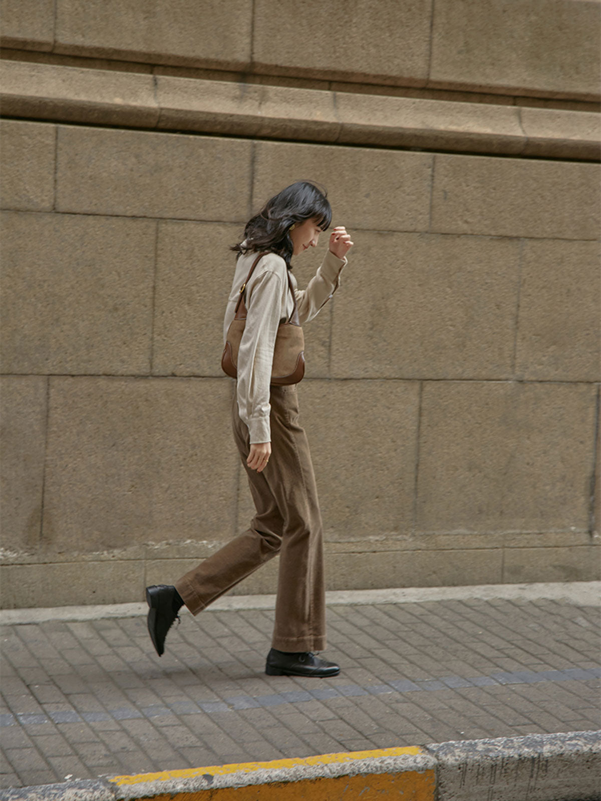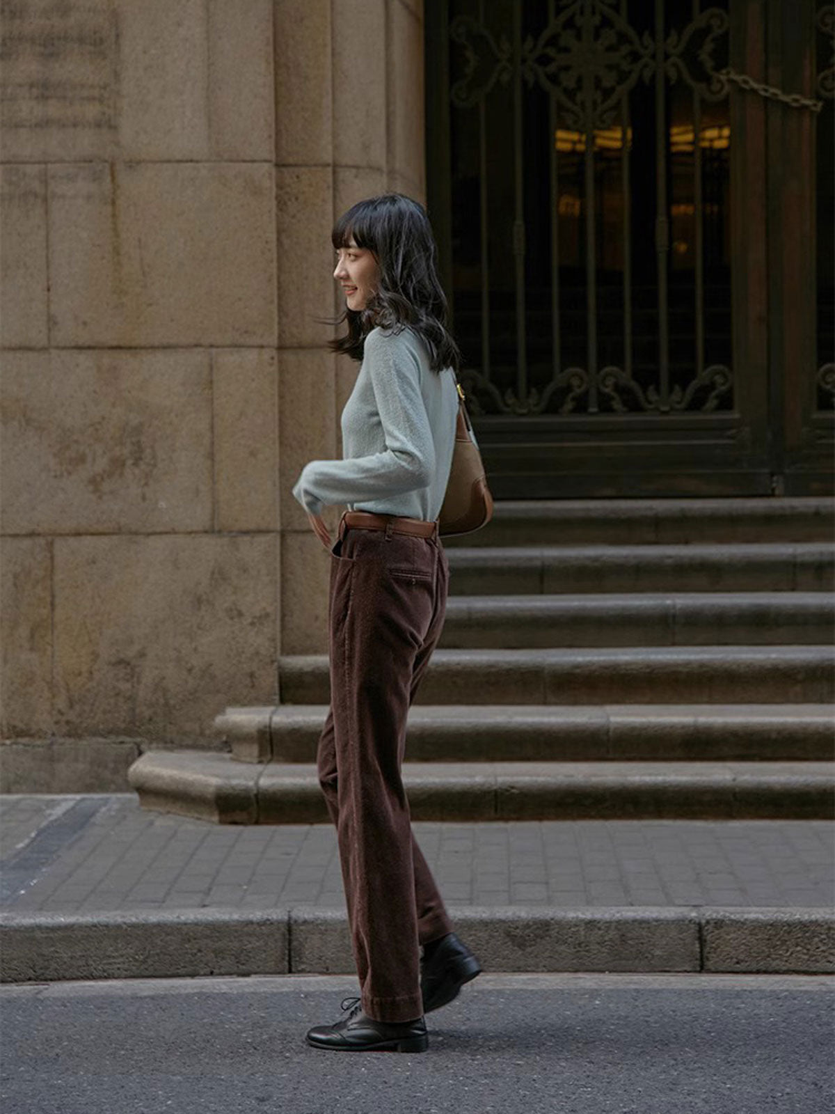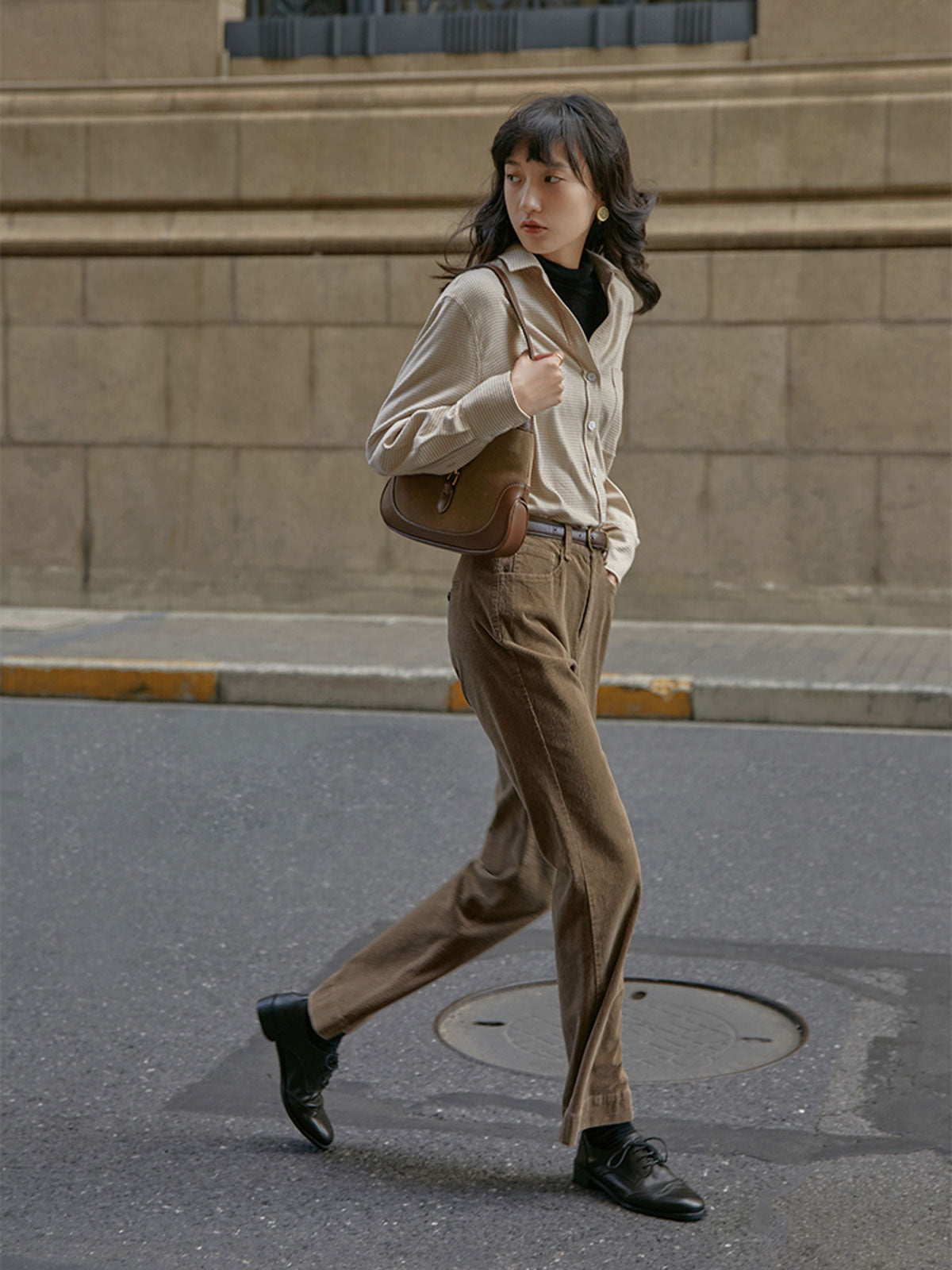 ハイウエストと微フレアデザインが融合し、クラシックでモダンなスタイルを実現します。