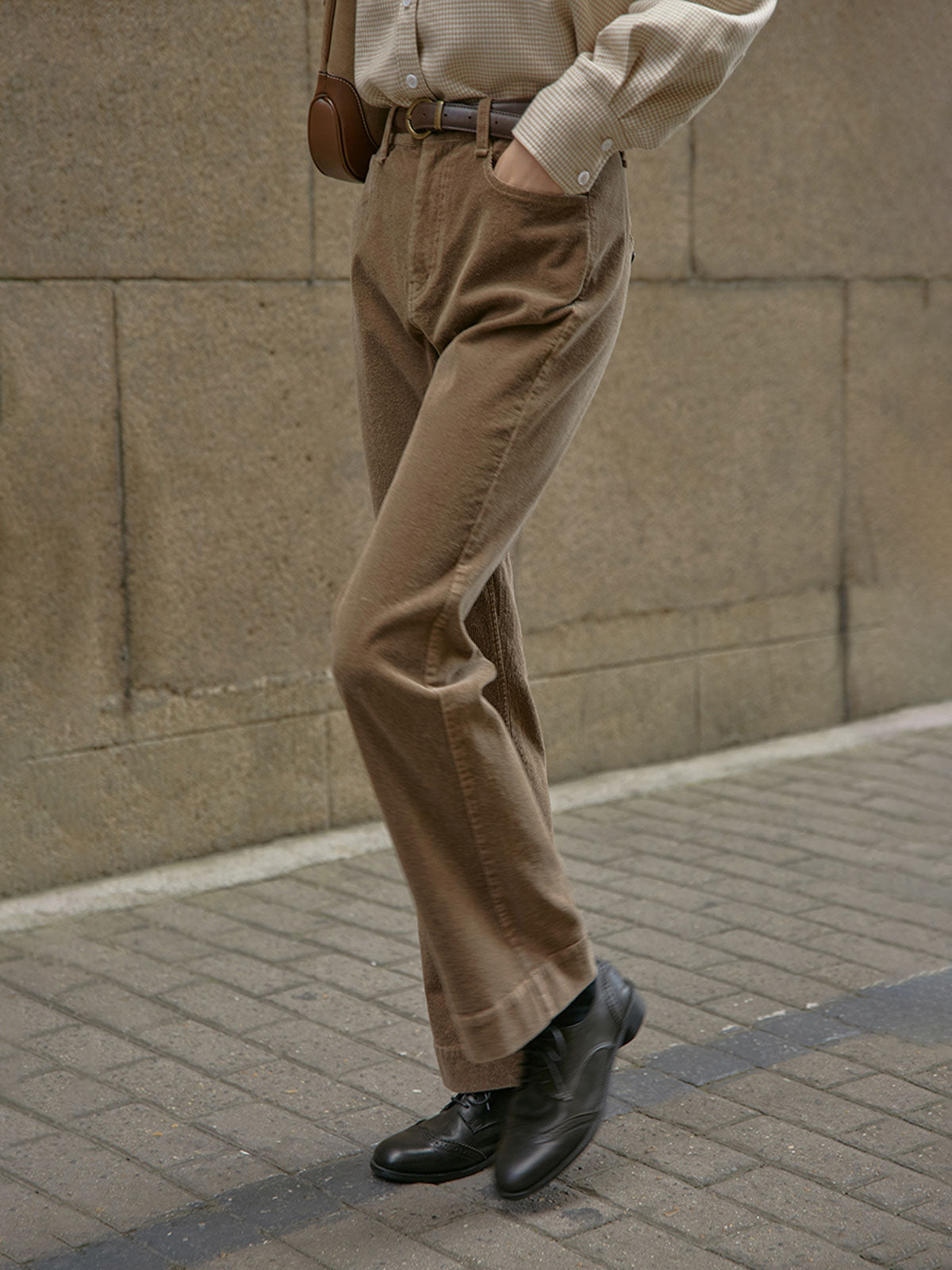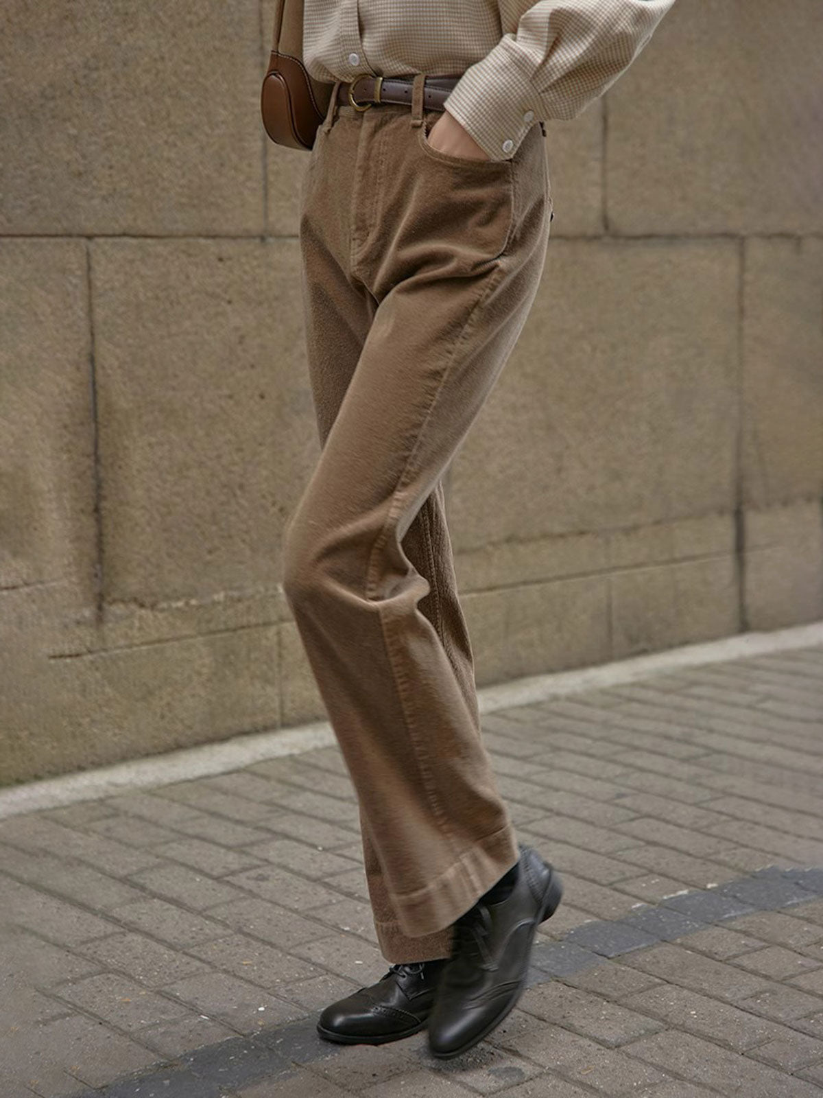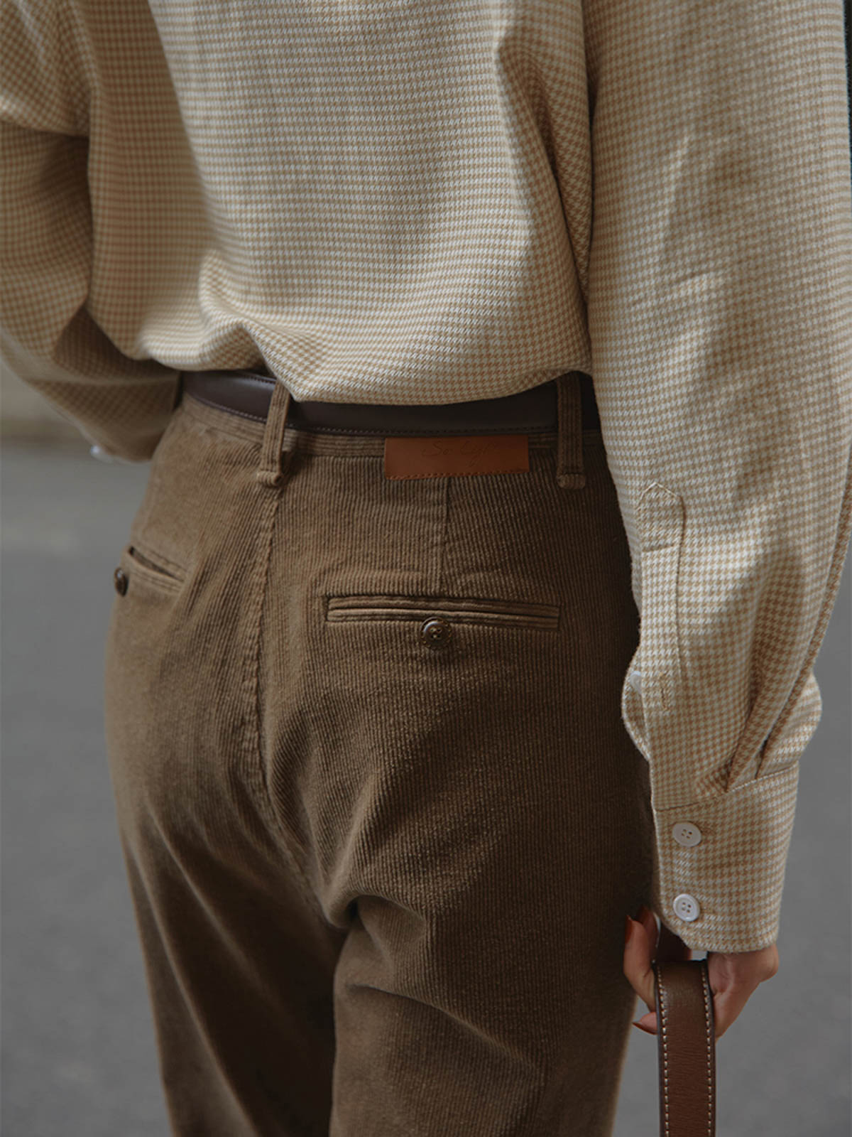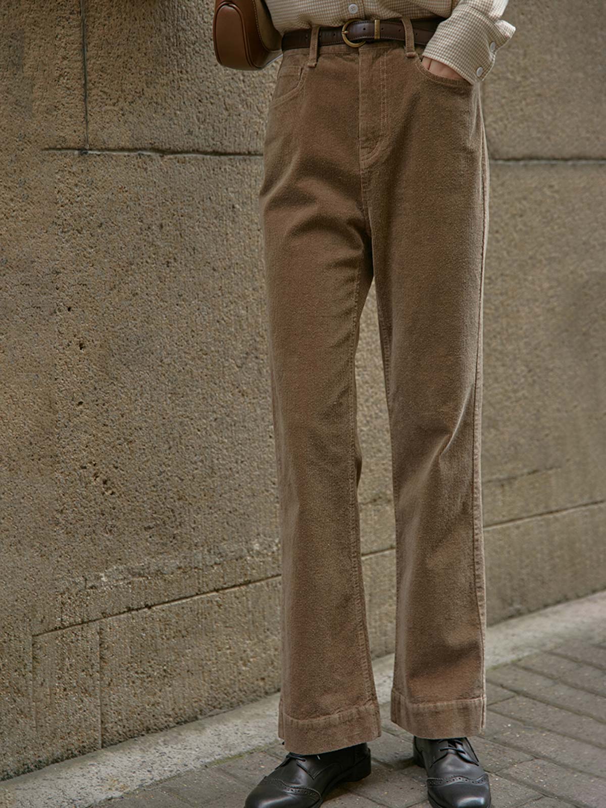 このパンツはハイウエストデザインで脚長効果があり、スリムに見せる効果も高いです。微フレアシルエットはヴィンテージ感とエレガンスを兼ね備え、さまざまなシーンに適しています。97%コットンと3%ポリウレタンの素材を使用しており、快適で適度な伸縮性があります。前後ポケットのデザインが実用性と美観を両立し、ボタンとジッパーのクローズ方式で着脱が簡単です。Tシャツやシャツとのコーディネートで独特のヴィンテージ魅力を引き立てます。