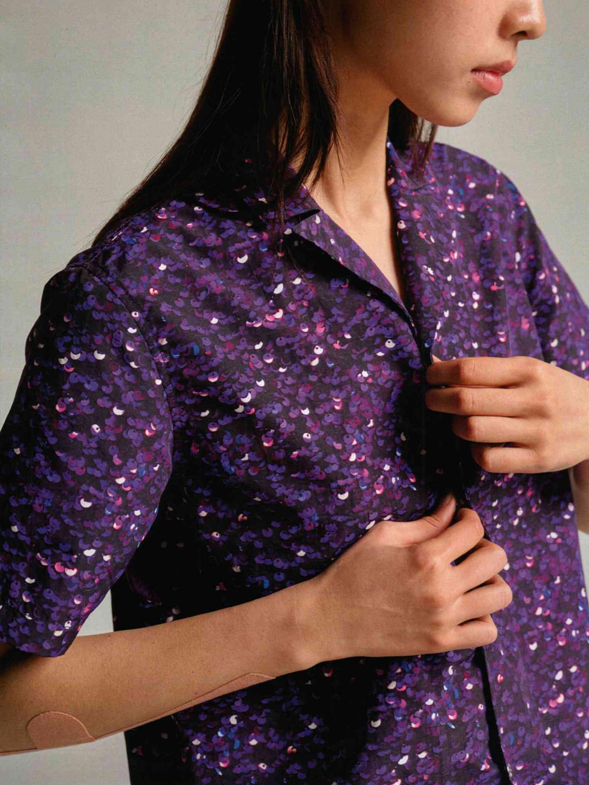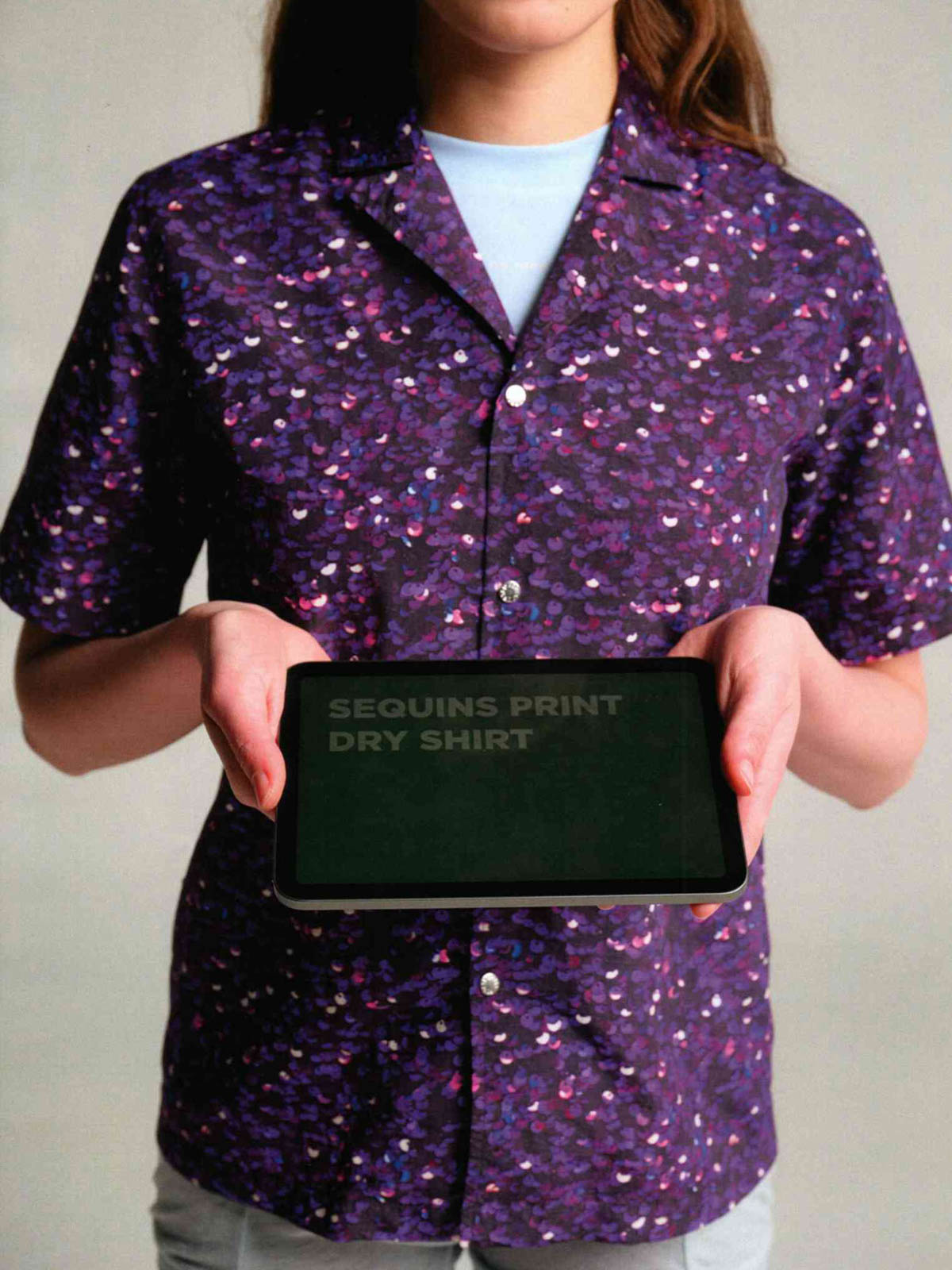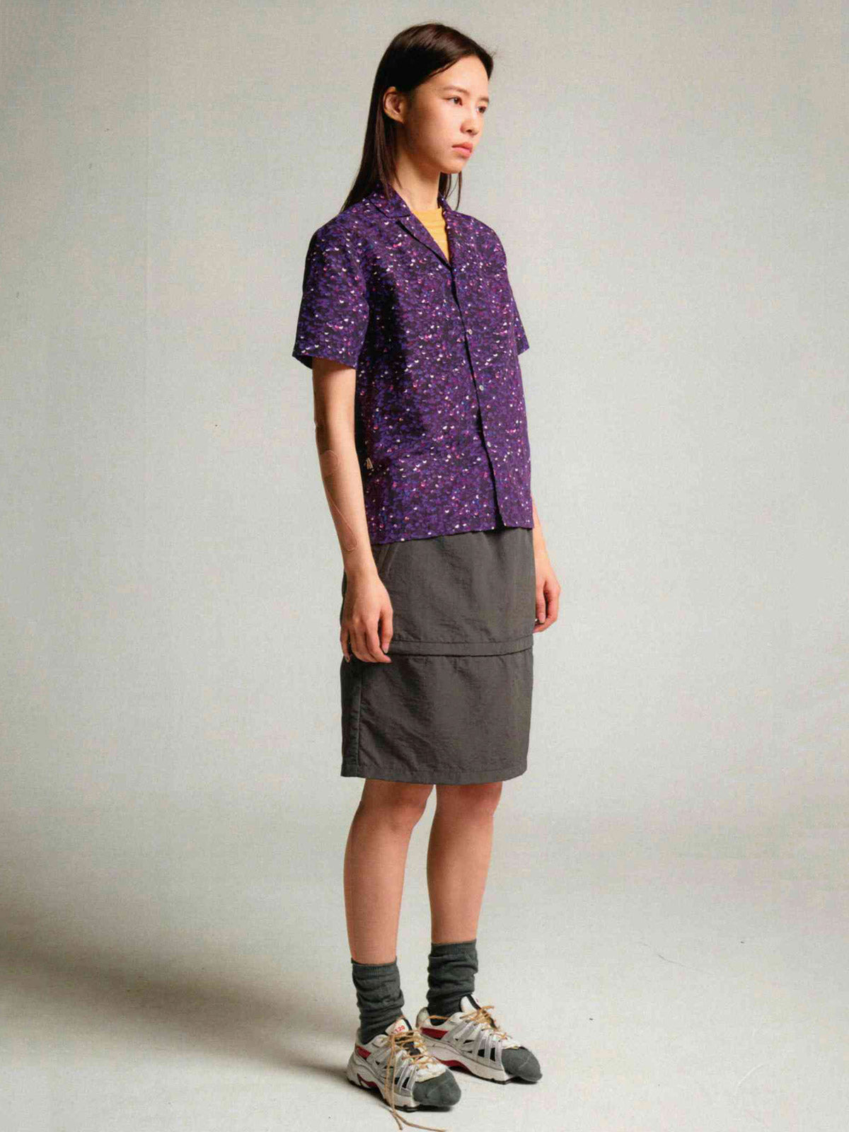 軽量で速乾性があり、アーティスティックなプリントが特徴のアウトドアシャツ。