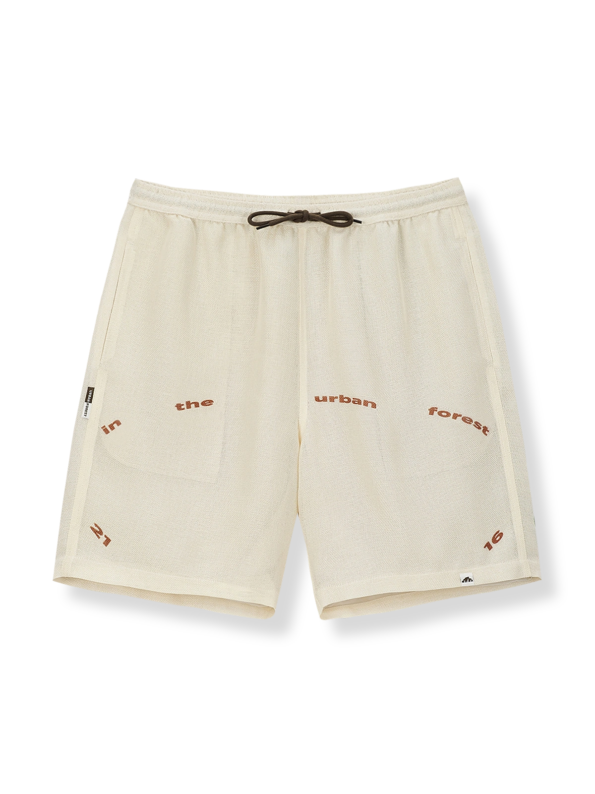ユニセックスのルーズフィット、ドライで快適な人工ラフィア素材のショーツ。