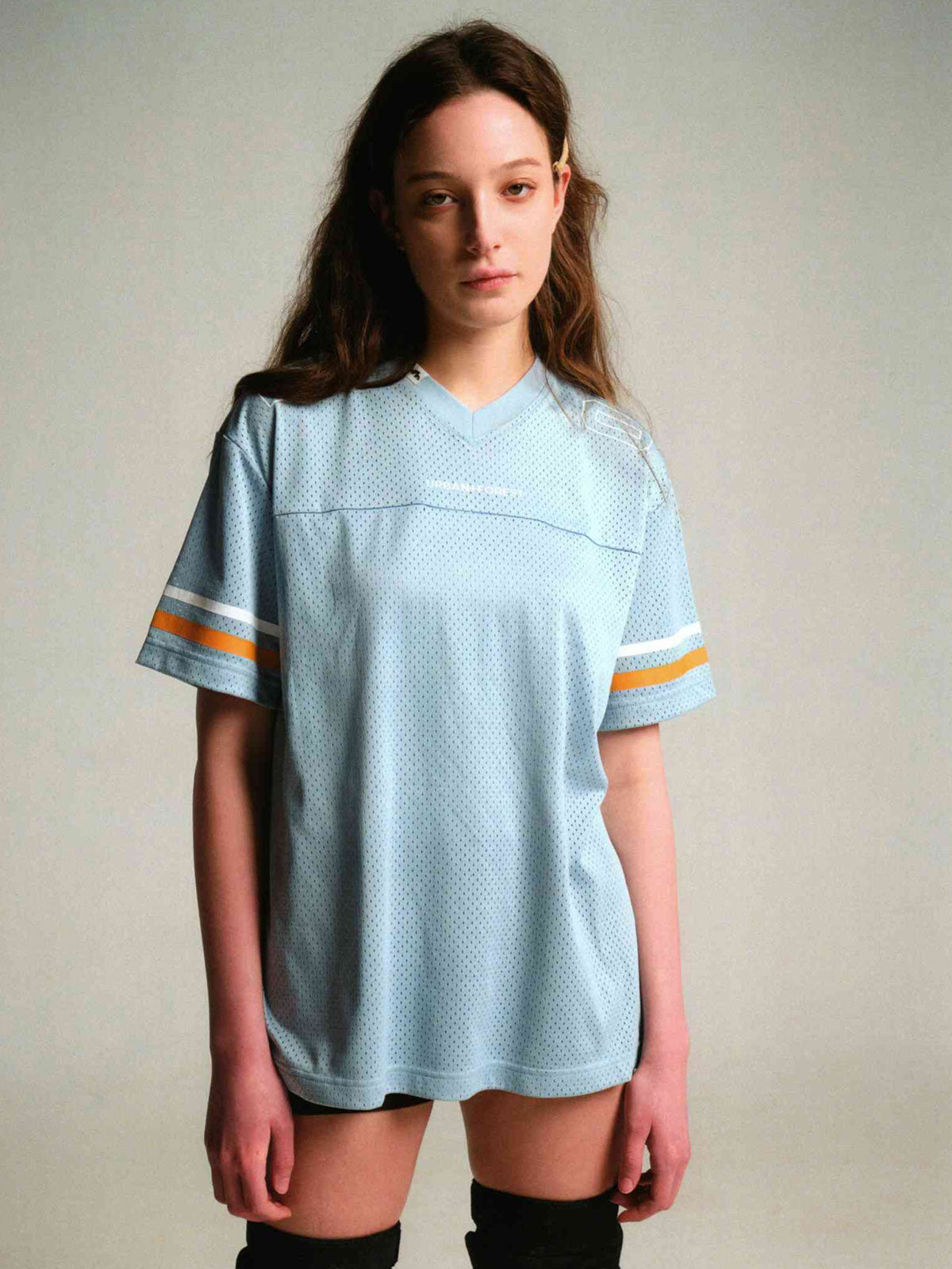 この速乾メッシュラグビージャージは、100%ポリエステル素材を使用し、軽量で速乾性能に優れています。ゆったりとしたスポーツフィットデザインで、さまざまな運動や日常の着用に適しています。リブVネックが快適な着心地を提供し、刺繍風のFOOTBALL CRESTプリントデザインがクラシックなスポーツの雰囲気を添えます。生地は軽量でドライなニット工芸を採用し、長時間の運動やアウトドア活動時にも快適さを保ちます。
