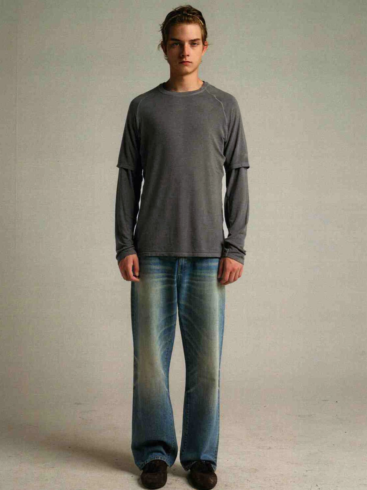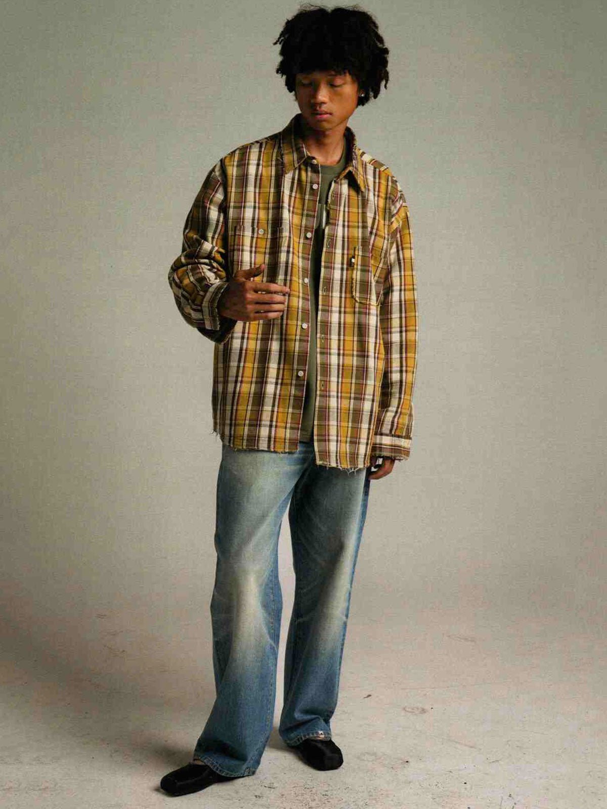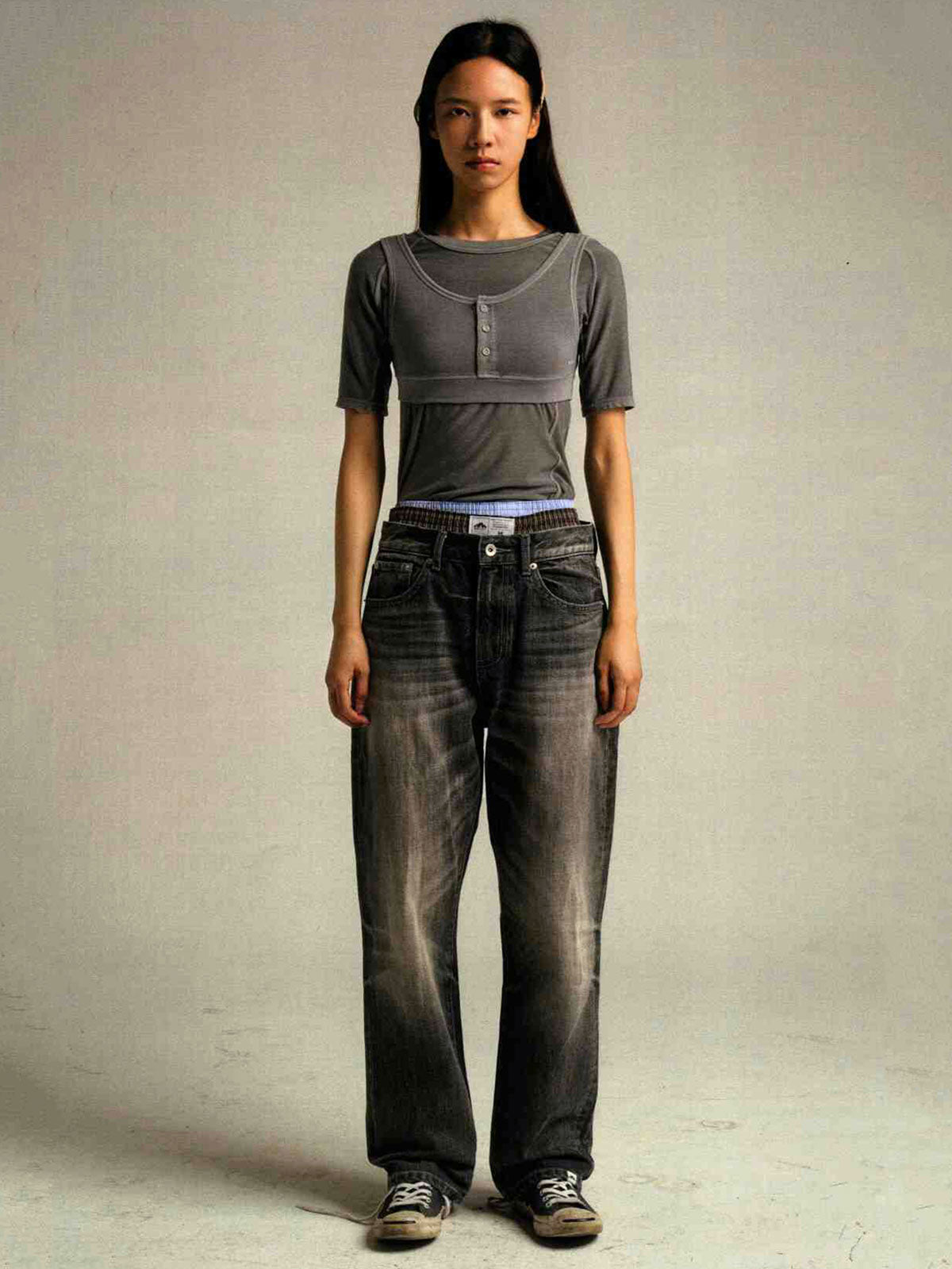 この50年代ワイドウォッシュデニムパンツは、ヴィンテージの高いウエストとワイドなパンツレッグのデザインを採用し、50年代のクラシックなスタイルを再現しています。URBAN FORESTブランドのために特別に開発された高品質な竹節デニム生地を使用し、何度もダメージ加工とウォッシュ加工を施して、自然な色落ちと独特のヴィンテージ感を演出。凹面ボタン、リベット、メタルジッパーフライにはブランドの刻印が施されており、細部にまでこだわりが感じられます。バックポケットにはクラシックな山脈ラインのディテールが施され、デザイン性が高まっています。100%コットン素材で、快適な着心地と耐久性を保証します。コーディネート提案として、このデニムパンツはさまざまなトップスと合わせて、カジュアルなヴィンテージスタイルを楽しめます。