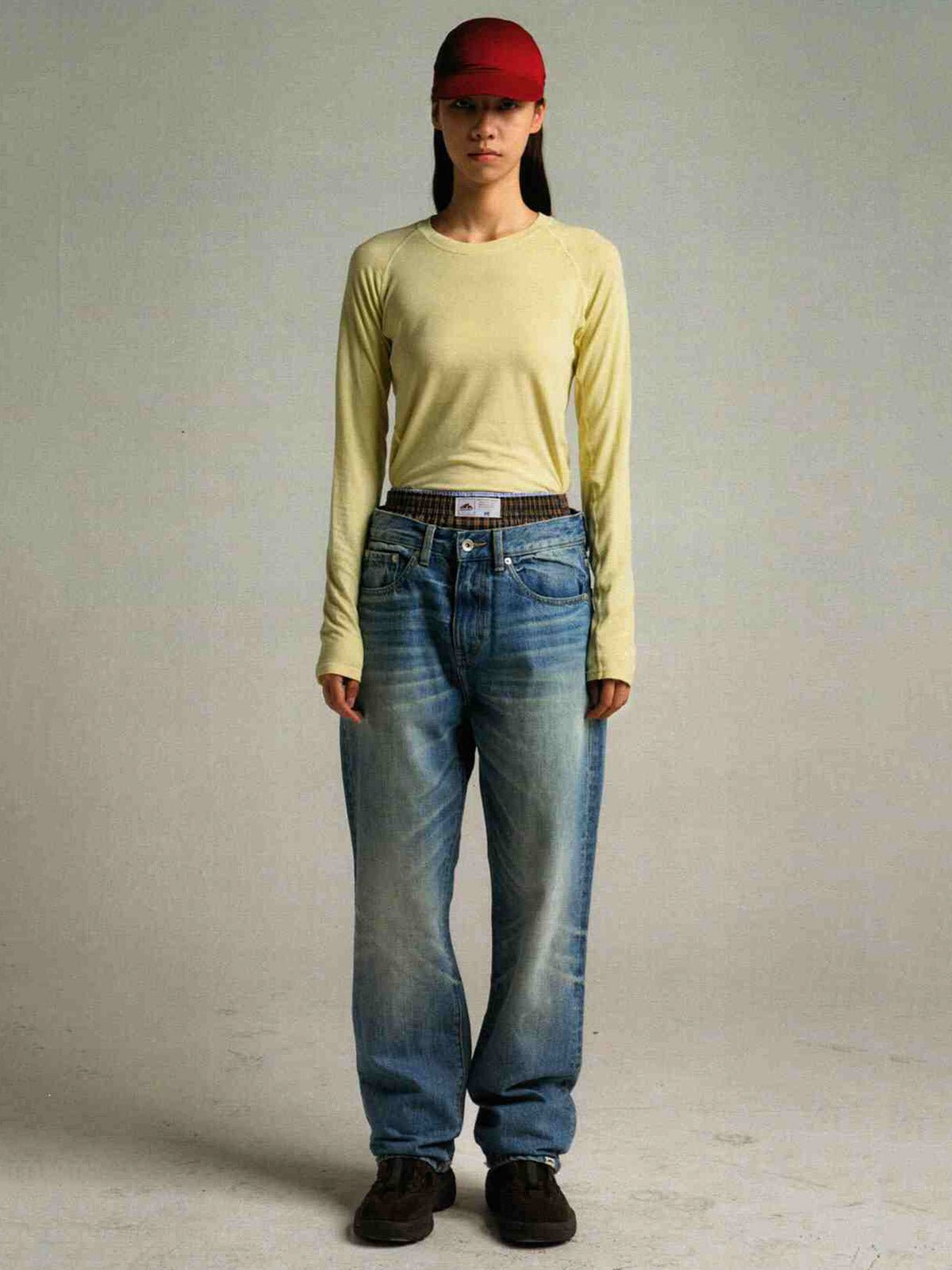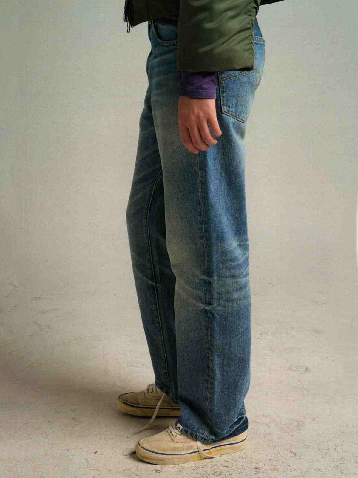 ヴィンテージの高いウエストとワイドシルエット、ナチュラルな加工感が魅力。