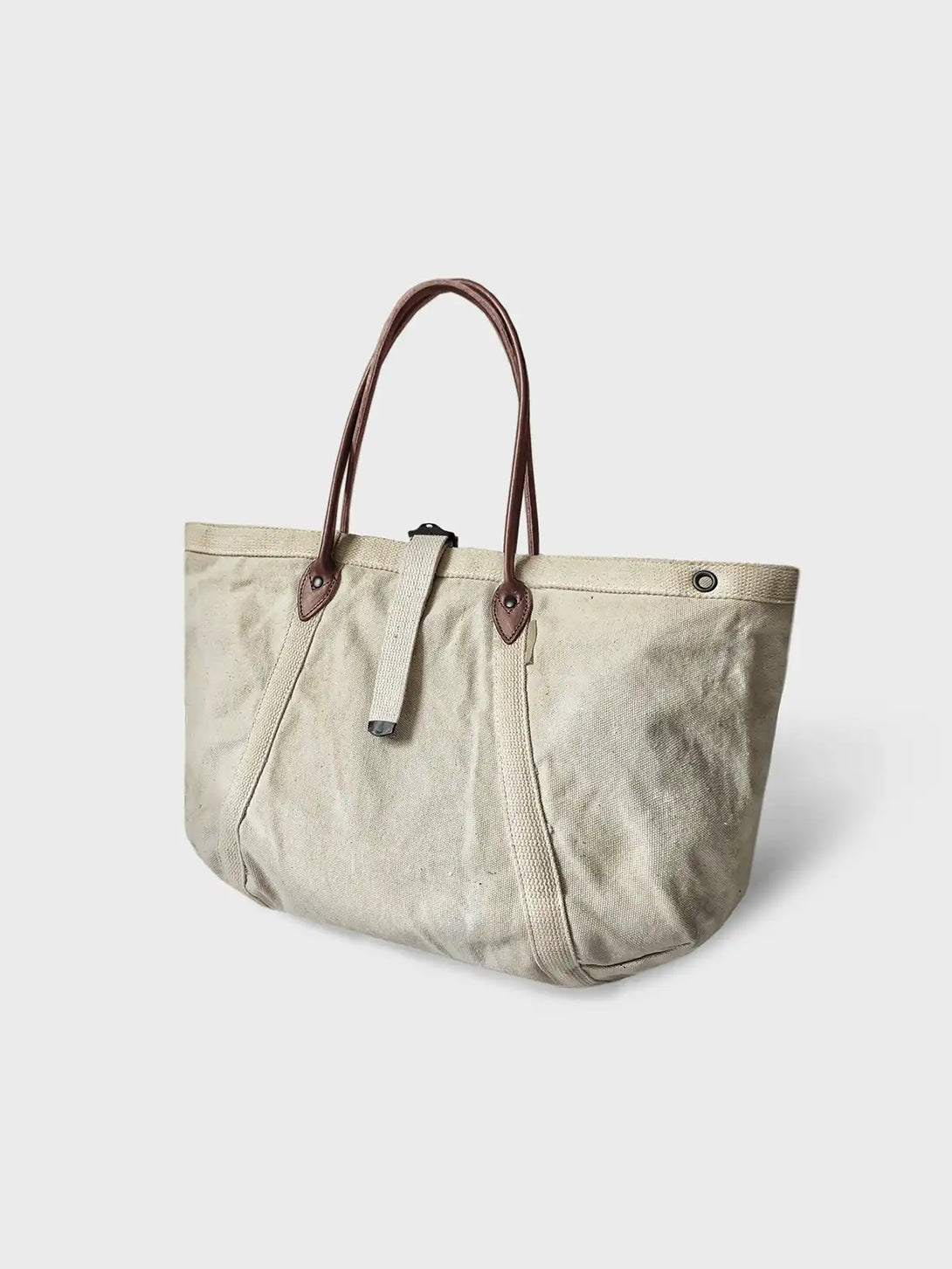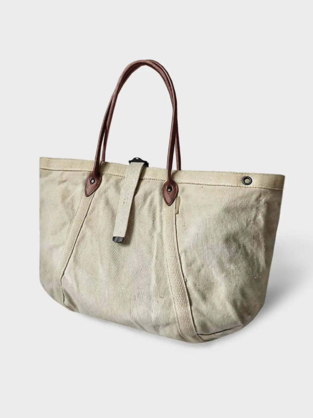 耐久性に優れた密織キャンバスと真鍮金具、レザーを組み合わせた、大容量で時代を超えて愛されるトートバッグ。