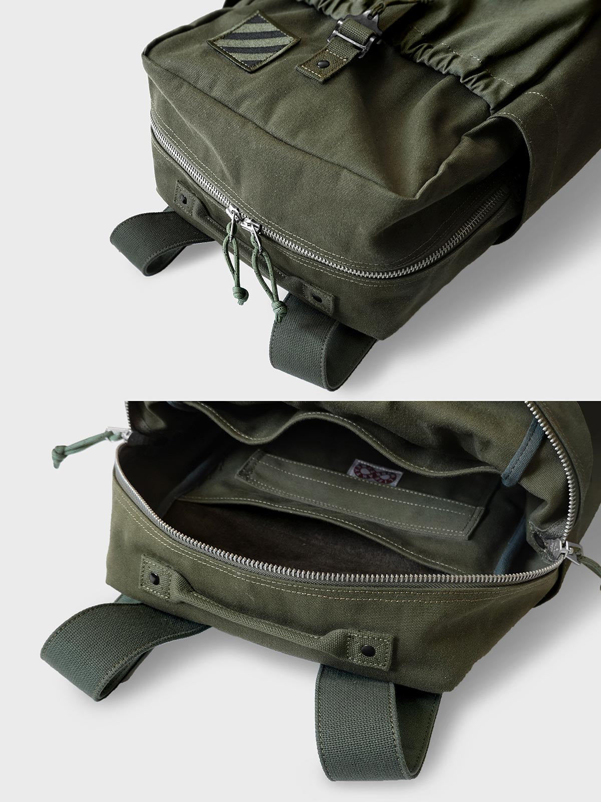 耐久性に優れたキャンバスと牛革を組み合わせ、アメリカ陸軍第3歩兵師団のクラシックデザインを踏襲。通勤からアウトドアライドまで活躍するヴィンテージ風リュック。