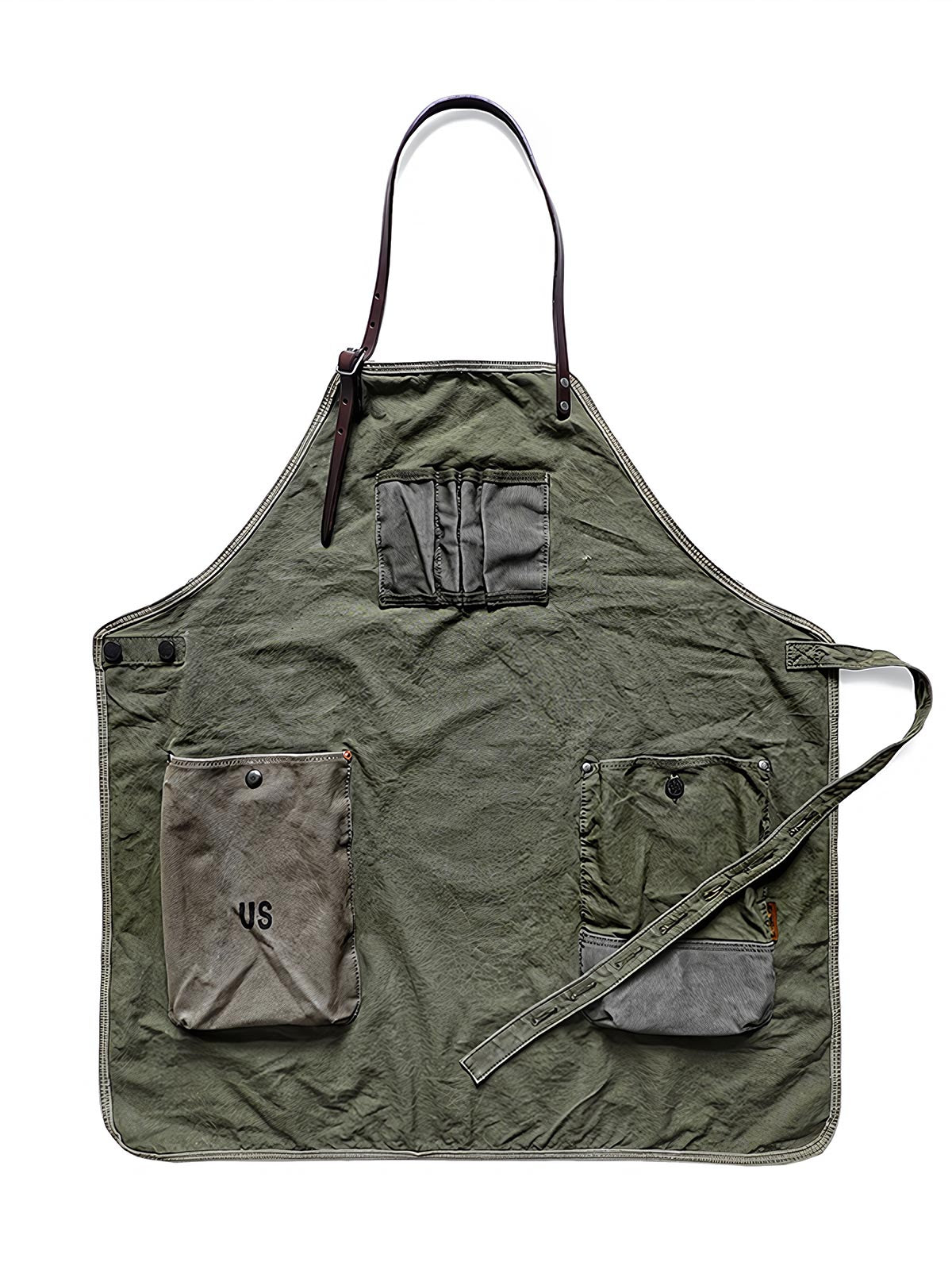 軽量で耐久性のあるキャンバス素材を使用し、ヴィンテージ感漂うデザインが特徴のワークエプロン。絵画や木工、ガーデニングに最適。