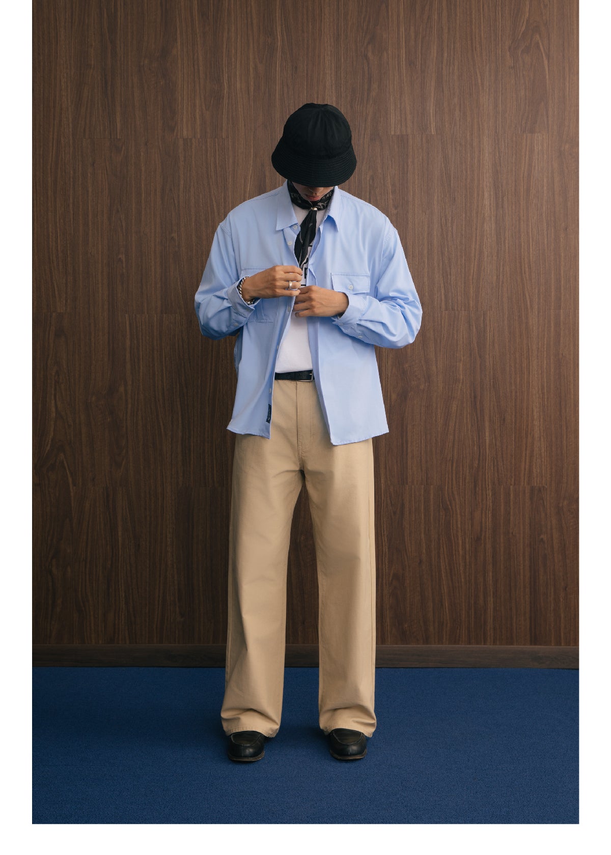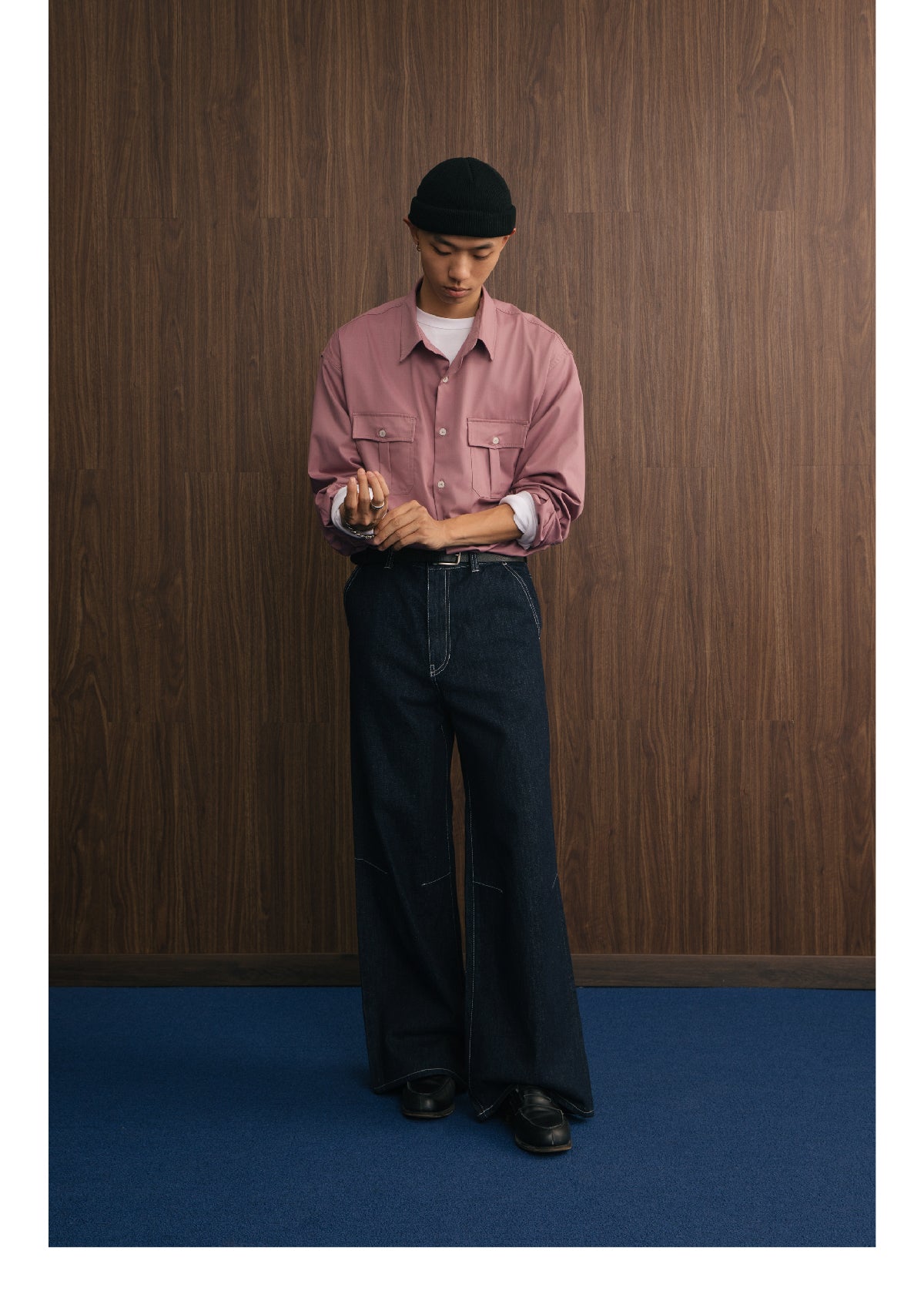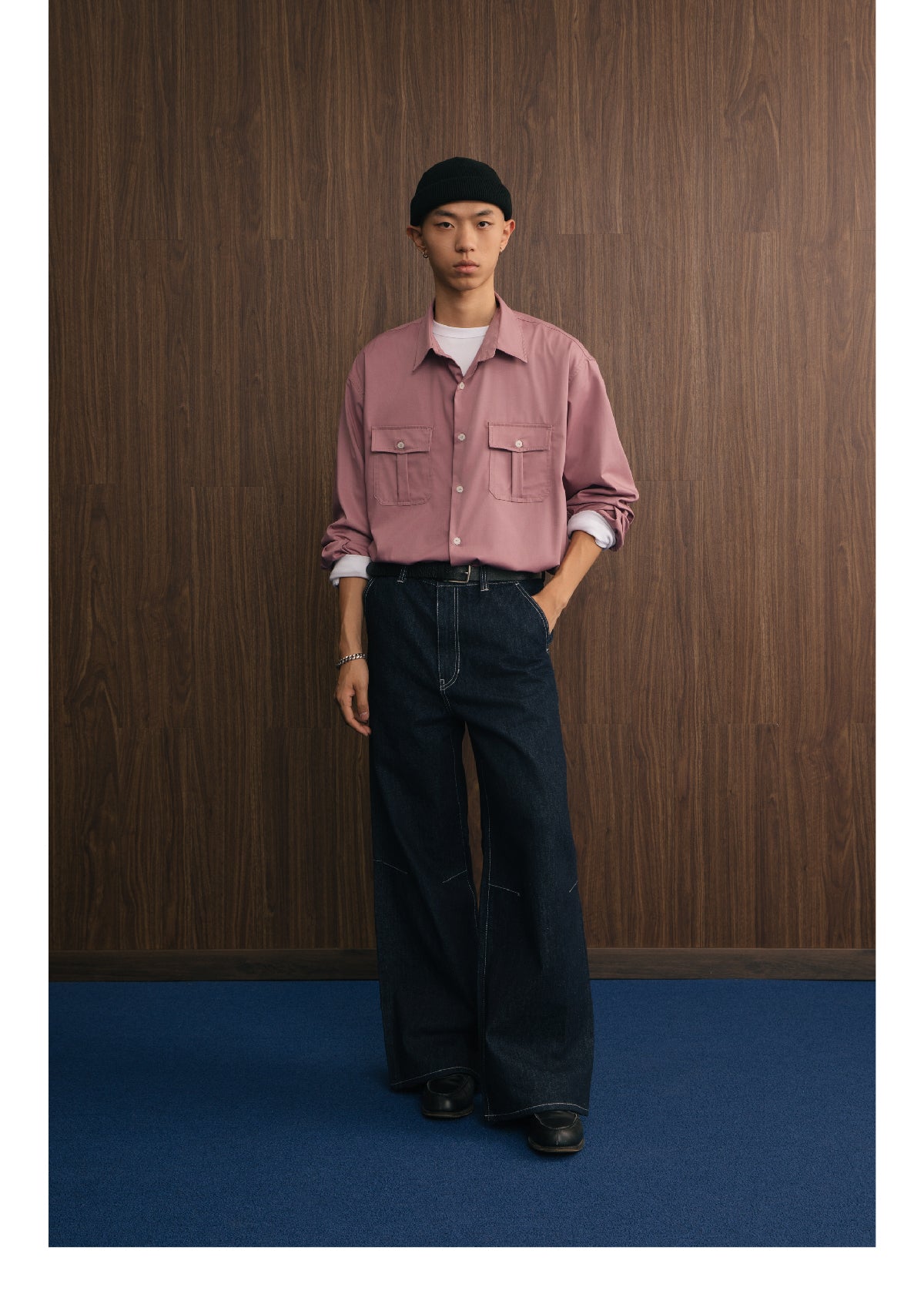 アメリカンヴィンテージスタイルのダブルポケットデザインとモダール素材の滑らかな手触りが融合し、機能性とスタイリッシュさを兼ね備えた長袖シャツ。