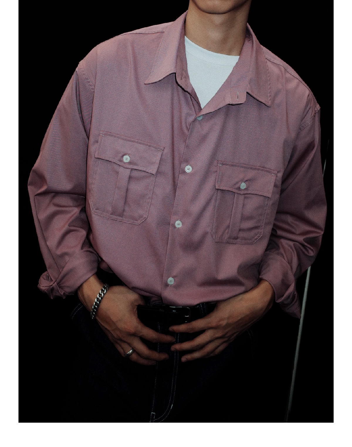 この長袖シャツは、アメリカンヴィンテージスタイルにインスパイアされたデザインで、胸元にフラップ付きのダブルポケットを配置。収納機能と視覚的なアクセントを加えています。モダール素材はシルクのような柔らかな手触りと優れた吸湿性・通気性を兼ね備えており、日常のコーディネートや通勤に最適です。シンプルかつ洗練されたカットと、実用的なディテールが調和し、都会的な印象を与えます。デニムやカジュアルパンツと合わせて、カジュアルでありながら洗練された印象を演出します。