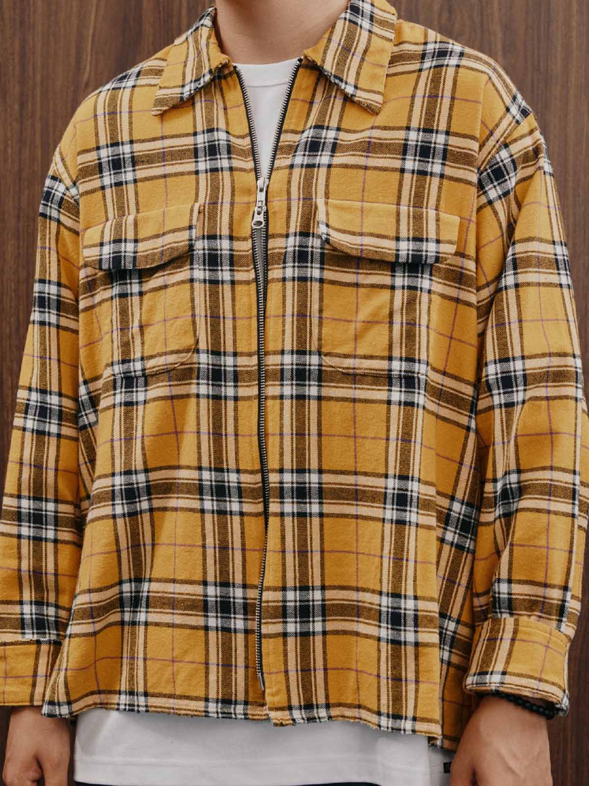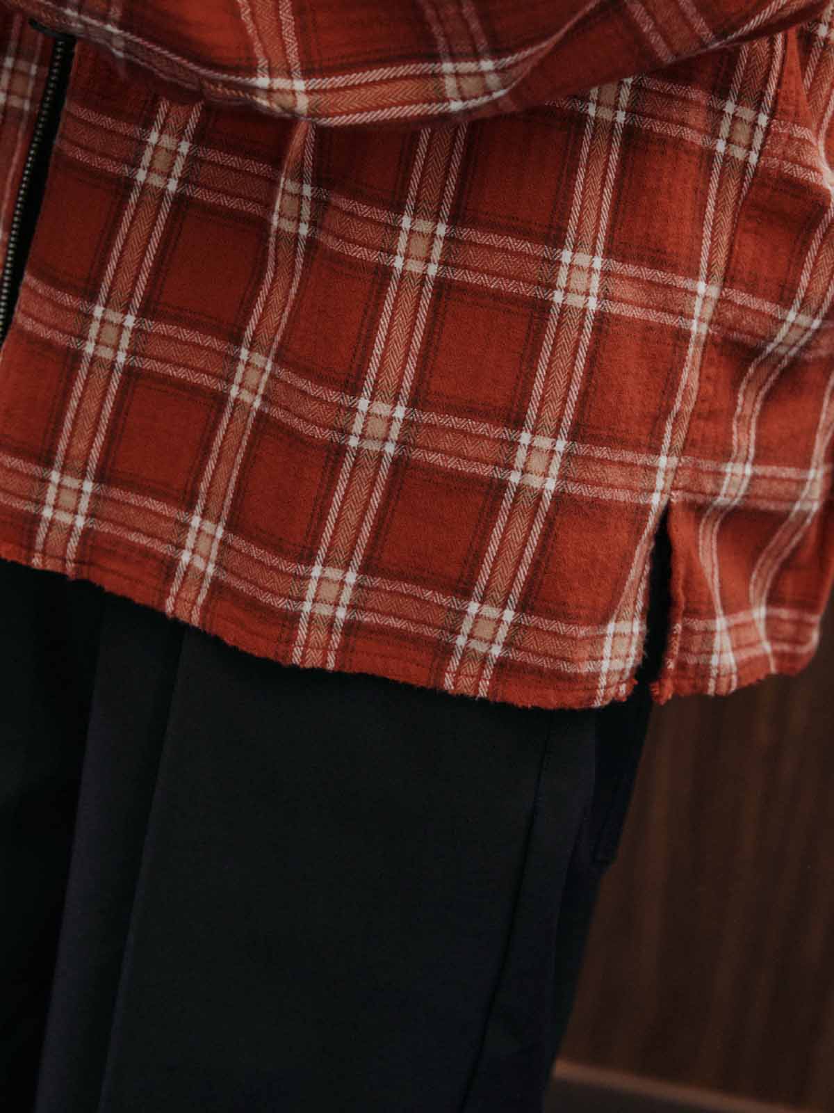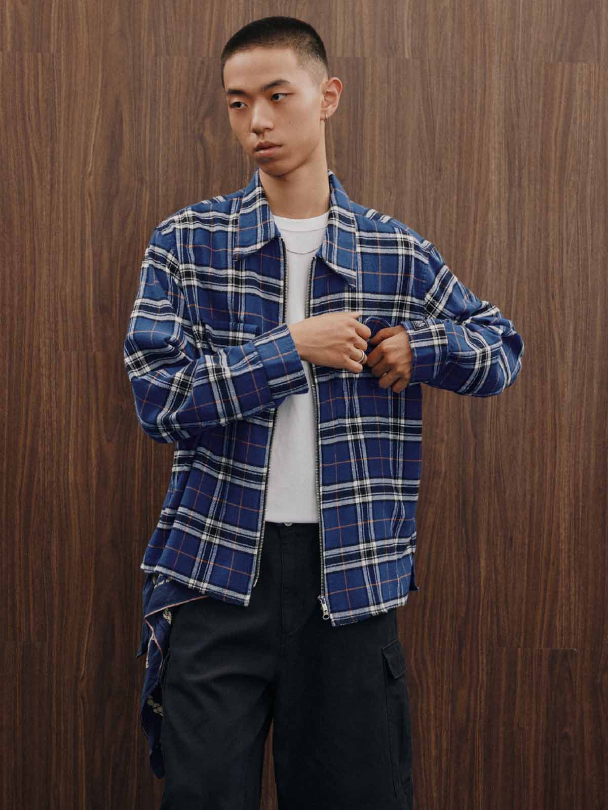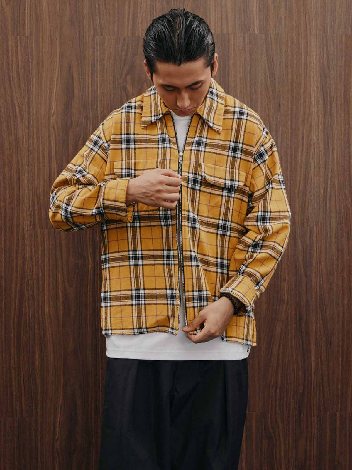 本シャツは、20世紀のアメリカン工装とストリートカルチャーの融合から着想を得た、クラシックなチェック柄にジッパー付きフロントを組み合わせたデザインが魅力です。ダメージ加工と摩耗処理により、自然なヴィンテージ感を引き出しながら、標準フィットで快適な着用感を実現。胸元のダブルポケットが実用性を強化し、チェックシャツらしい伝統的な魅力に現代的なストリートエッセンスを加えています。シンプルなトップスやデニム、ワークパンツとの相性も抜群で、カジュアルなアメリカンスタイルを手軽に楽しめる一着です。