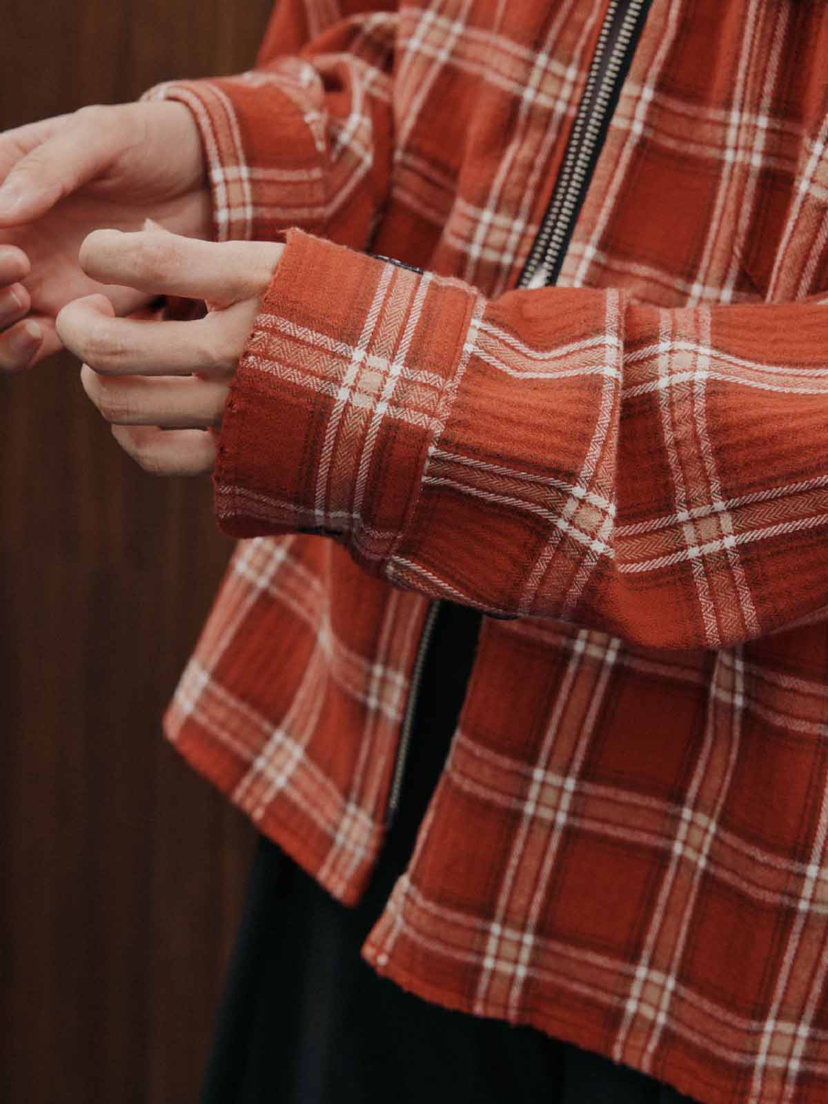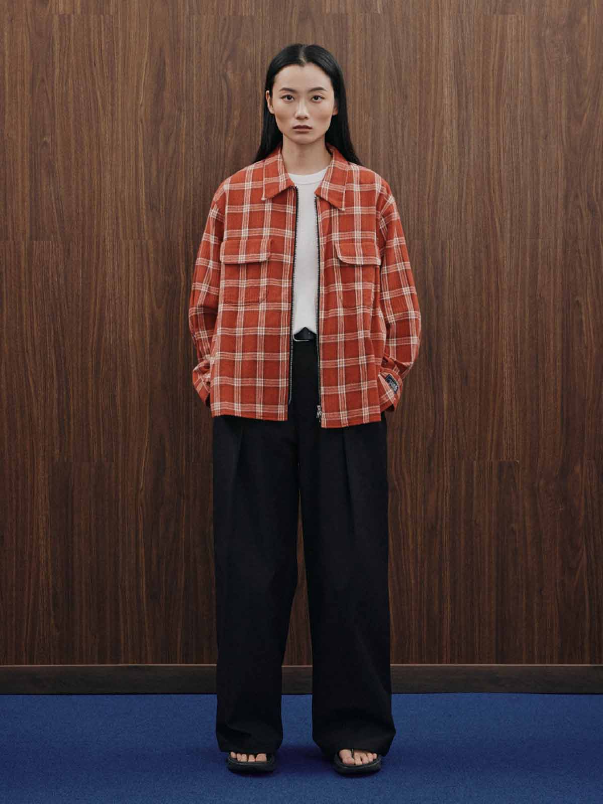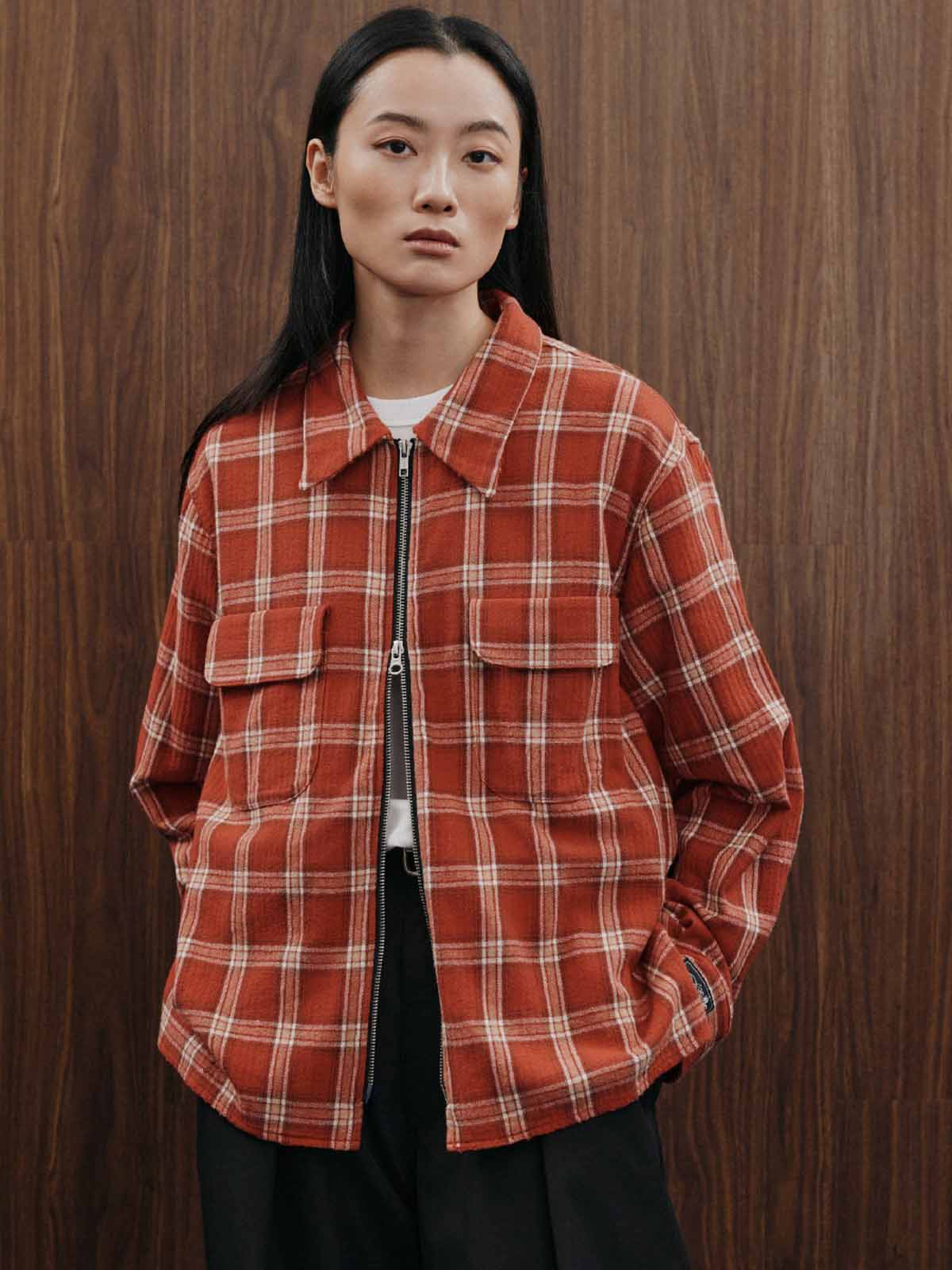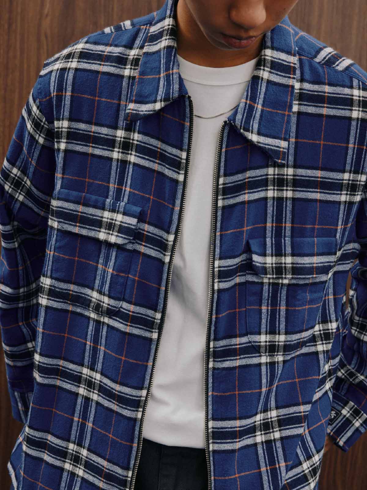 本シャツは、20世紀のアメリカン工装とストリートカルチャーの融合から着想を得た、クラシックなチェック柄にジッパー付きフロントを組み合わせたデザインが魅力です。ダメージ加工と摩耗処理により、自然なヴィンテージ感を引き出しながら、標準フィットで快適な着用感を実現。胸元のダブルポケットが実用性を強化し、チェックシャツらしい伝統的な魅力に現代的なストリートエッセンスを加えています。シンプルなトップスやデニム、ワークパンツとの相性も抜群で、カジュアルなアメリカンスタイルを手軽に楽しめる一着です。