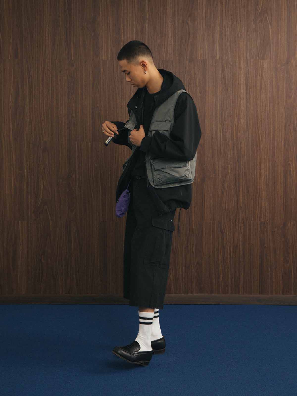 本ベストは、軽量で耐摩耗性に優れるナイロン生地を使用し、ショート丈で動きやすく、豊富なポケットレイアウトが日常の必需品をしっかり収納できる実用的なデザインに仕上げています。フロントはジッパー付きで、着脱が容易でシンプルながら洗練されたラインを実現。内部には通気性の高いライニングを採用しており、快適な着心地と効果的な放熱をサポートします。工装パンツやデニムとの相性も抜群で、アウトドアから都市でのカジュアルスタイルまで幅広いシーンにマッチする一着です。