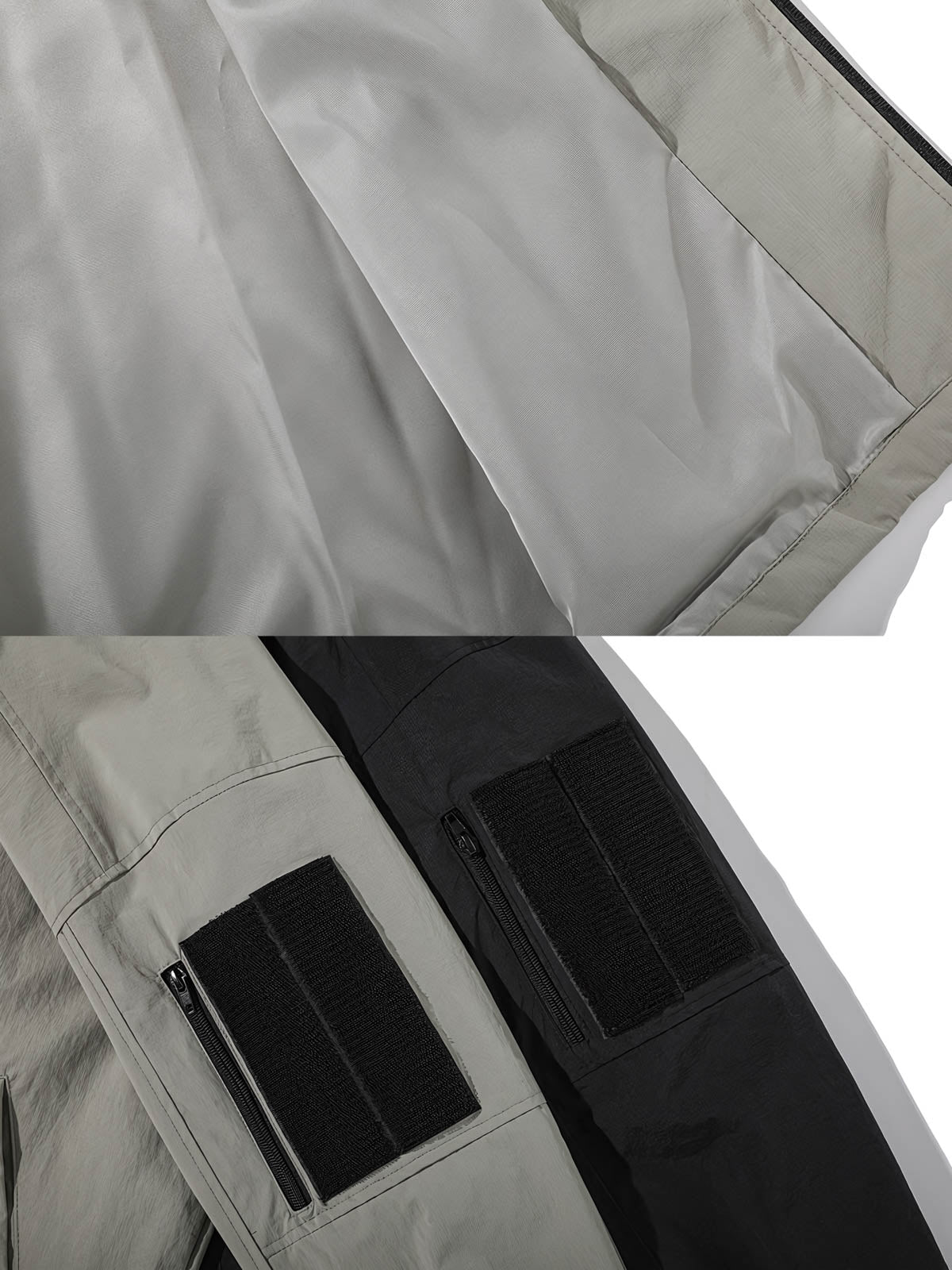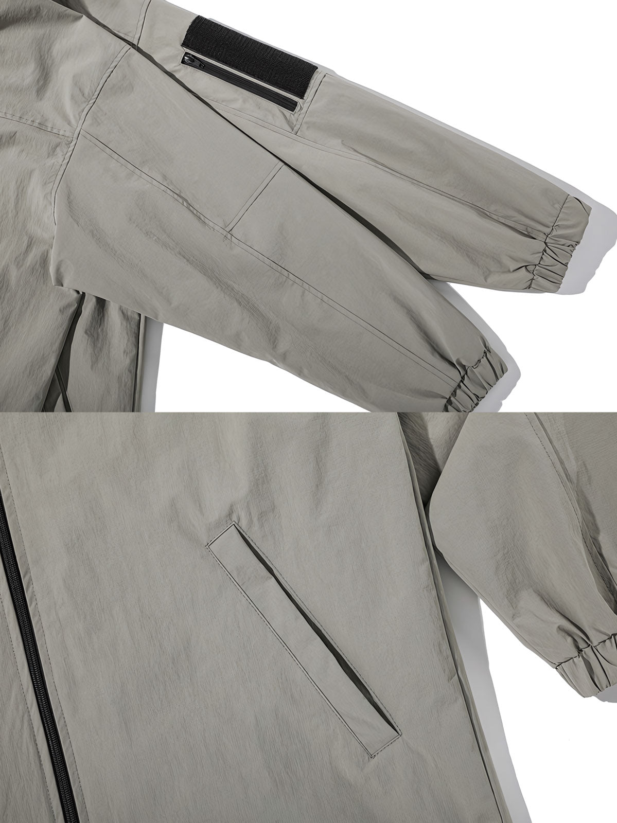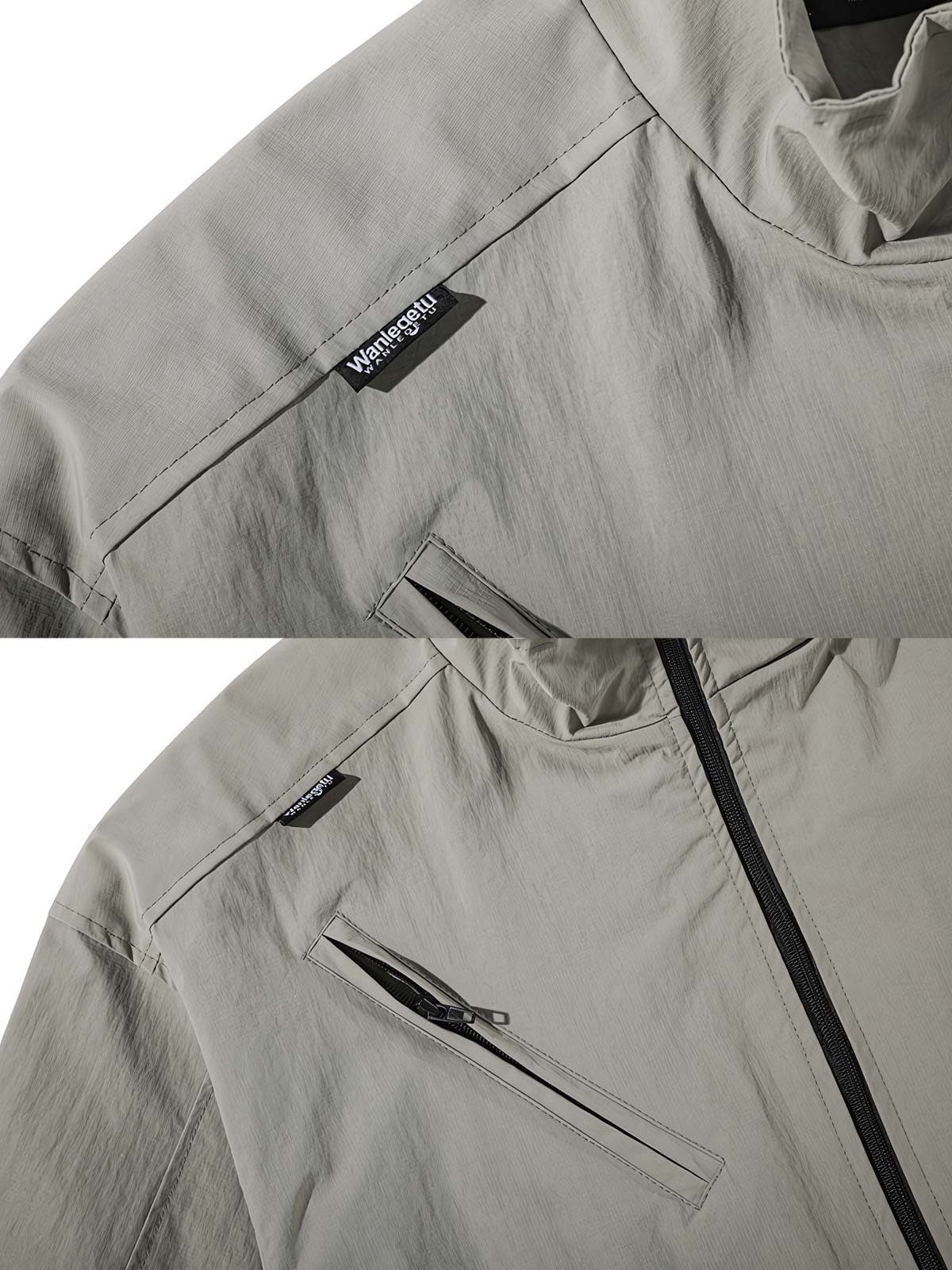 素材には軽量で耐久性のある素材を選び、春秋の着用に適しています。ライトブラウンとベージュのパッチワーク、胸部と袖にある反射ストライプは、視覚的な効果を高めるとともに、夜間の安全性も向上させています。