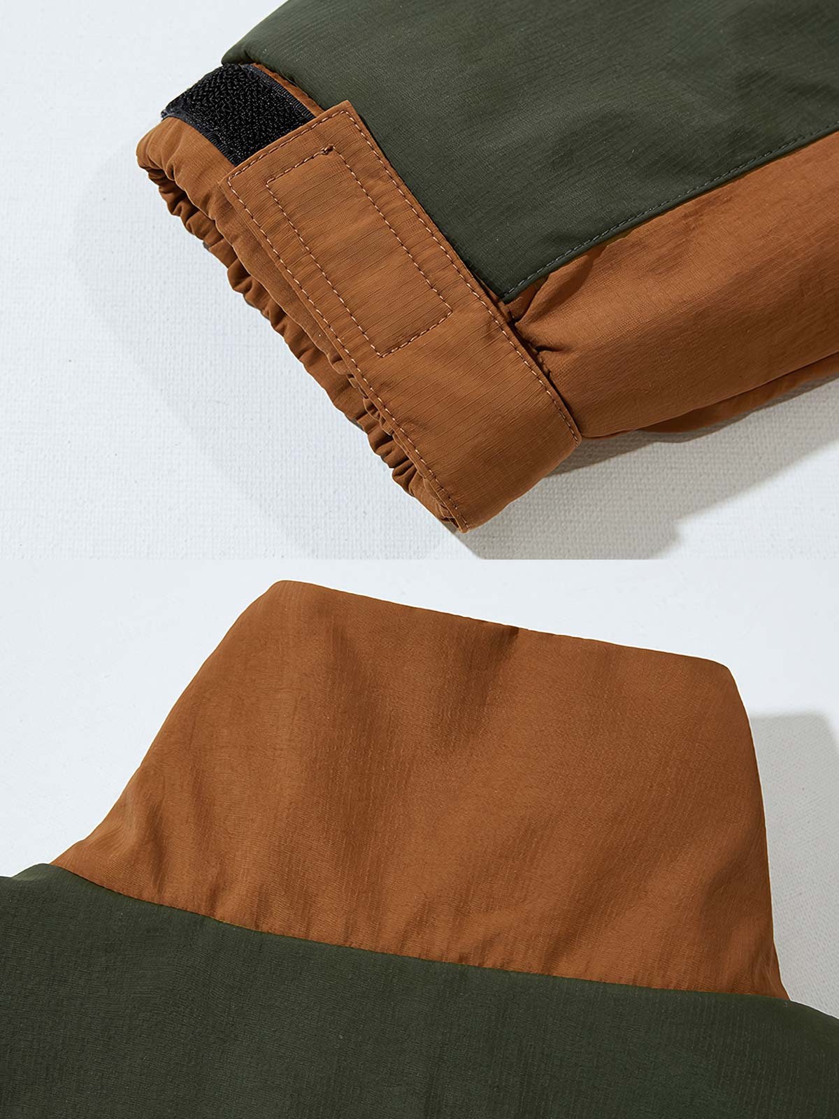 このジャケットは、自然と調和するアウトドア活動にインスパイアされたジャケットです。トラディショナルなアウトドアウェアの機能性と、現代のファッション感覚が融合しており、都会的なスタイルにも適応します。二色のコントラストが特徴的なデザインは、自然の色彩から着想を得ています。