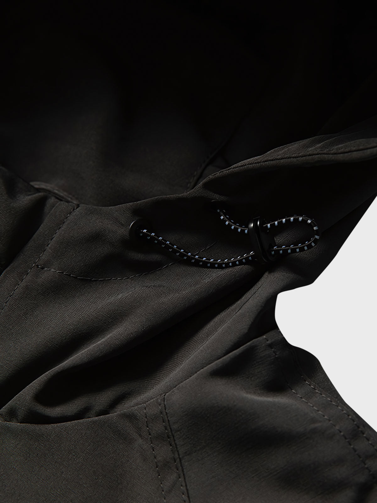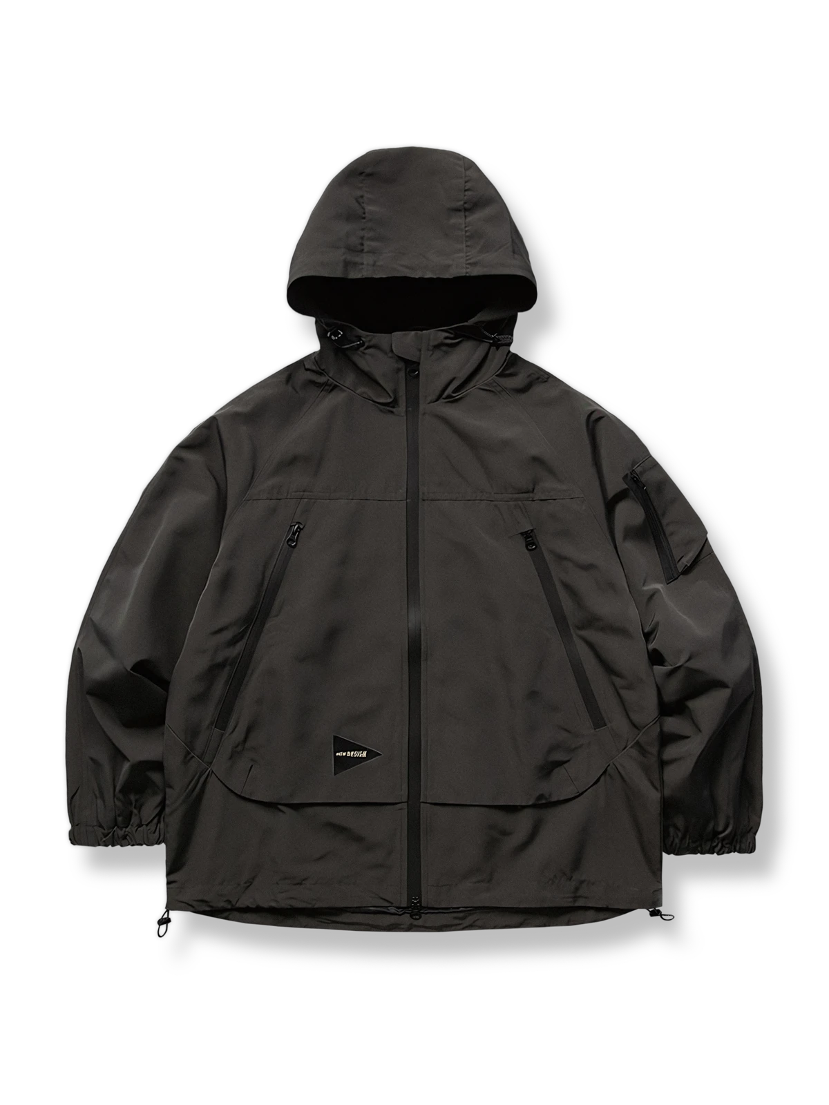 このジャケットはゆったりとしたフィット感で設計されており、重ね着が容易になっています。フード付きで、防風・防水機能を備えた素材を使用しているため、どんな天気の中でも快適さと乾燥を保つことができます。ドローコードを調整することで、アウトドア活動に応じてフィット感を自由に変更することが可能です。