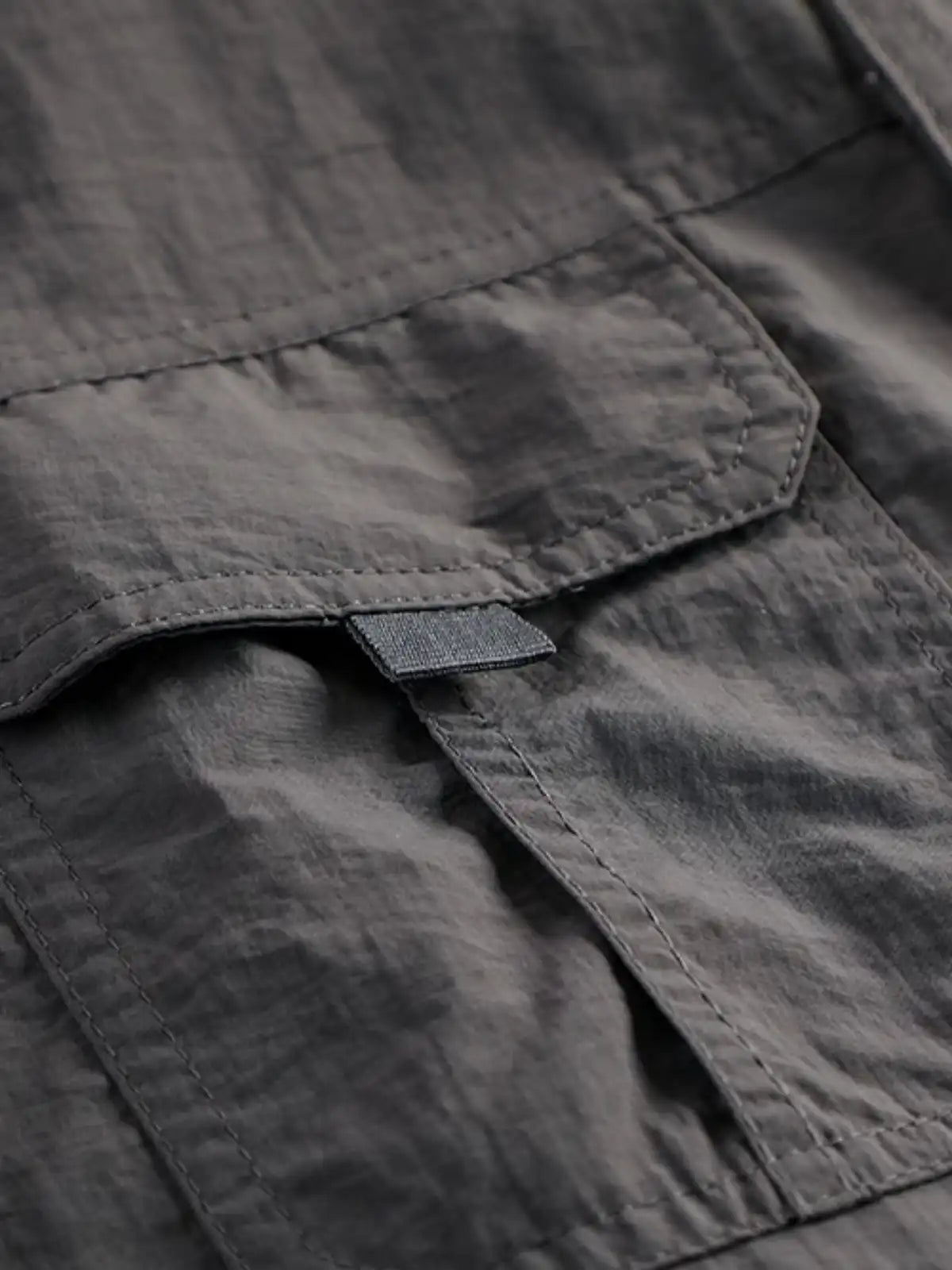 超軽量のリップストップナイロンは耐引裂性に優れ、強い日差しも遮るUVカット性能を備えています。フロントはスナップボタン&耐磨耗ポケットで実用性を高め、背面のベンチレーション&内側メッシュが抜群の通気性を実現。シワになりにくい加工で、洗濯後も形状安定。山岳から都市までシームレスに対応するスマートな一着です。