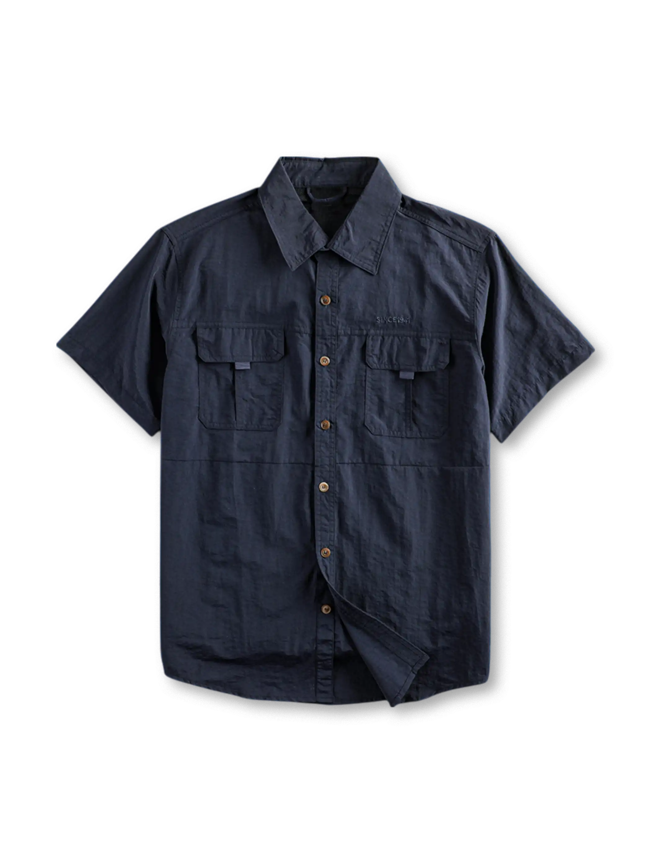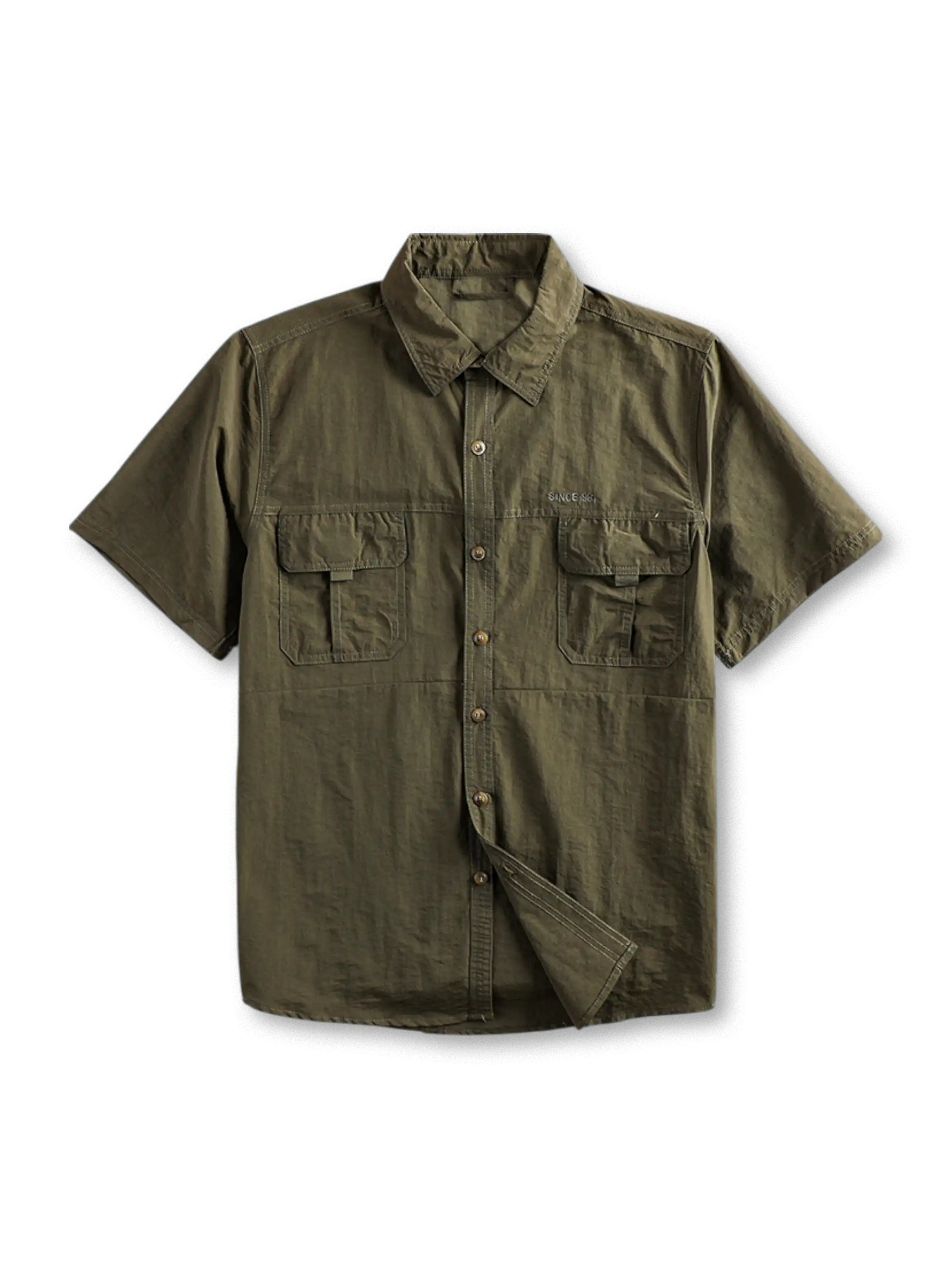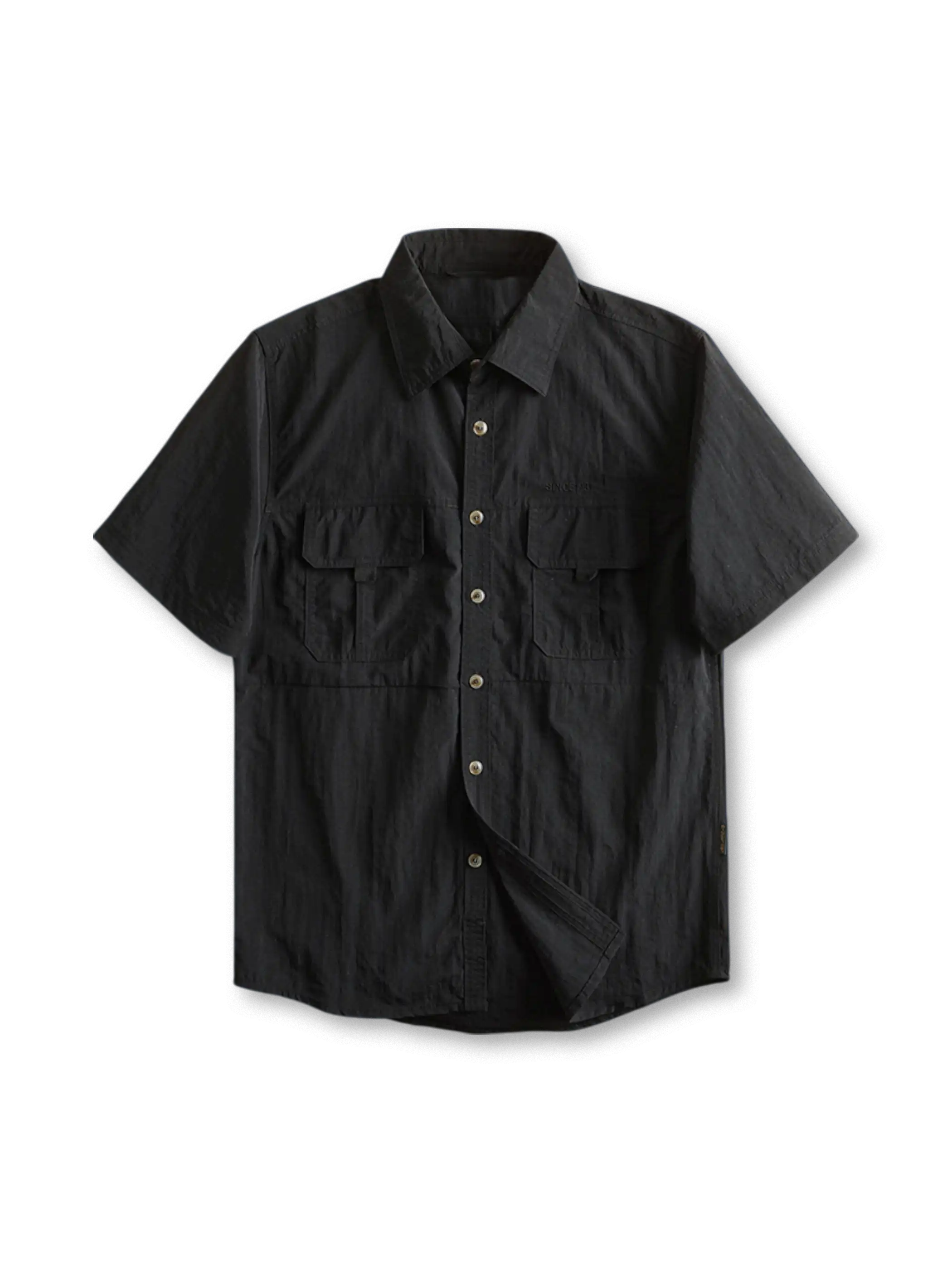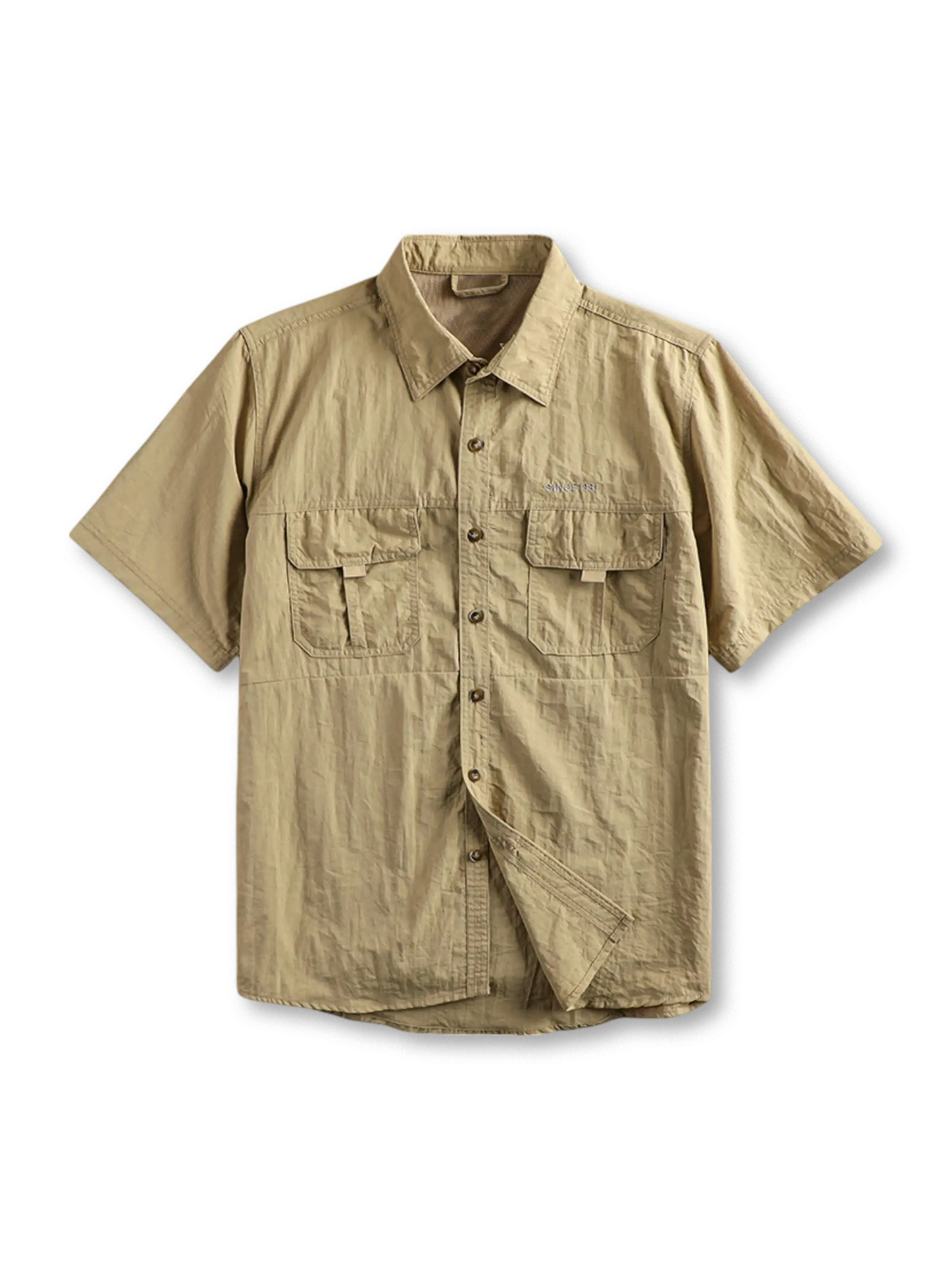 100%ナイロン撥水リップストップ生地を用い、UVカット&快速乾燥機能を両立したアウトドアワークシャツ。