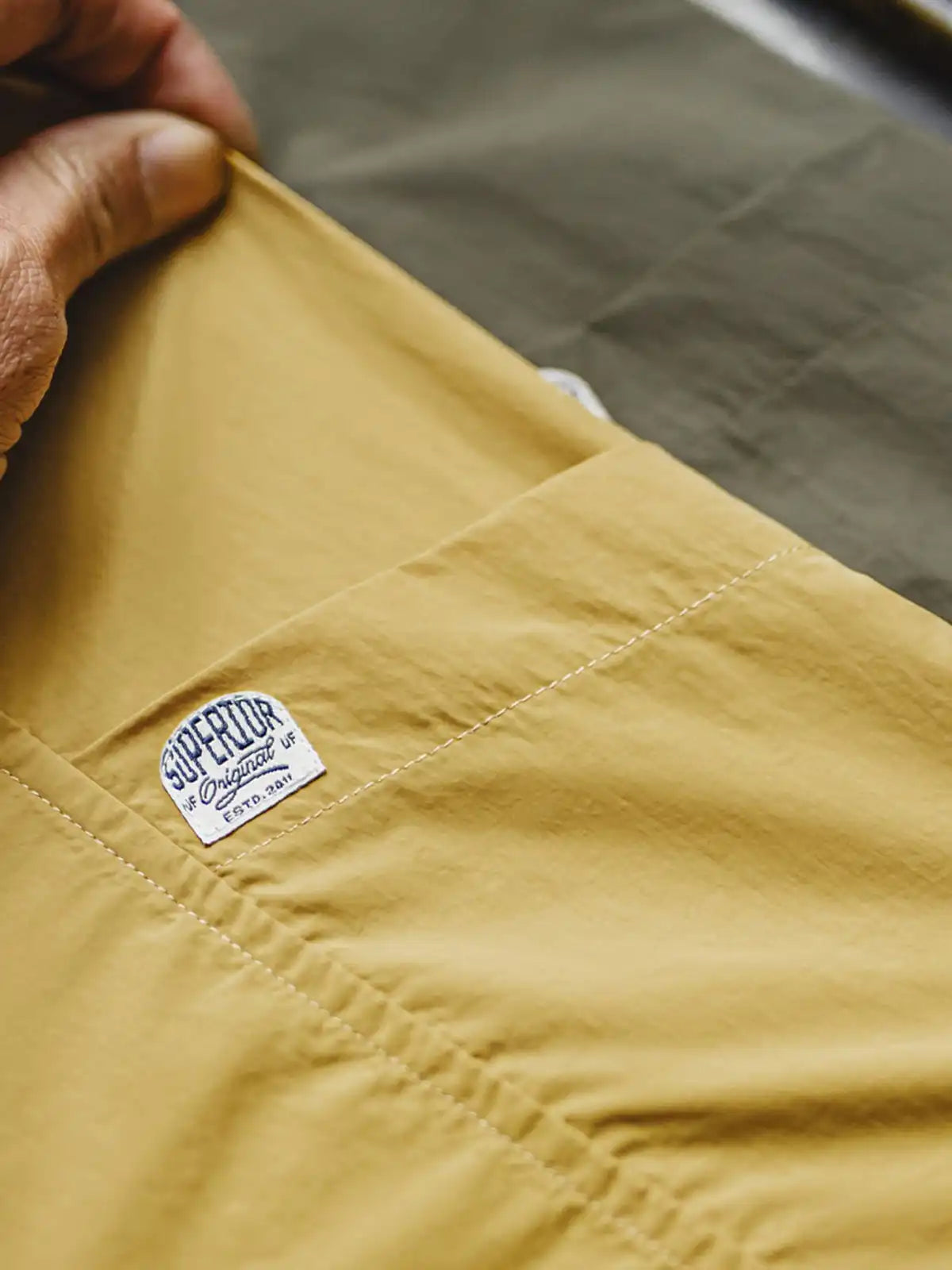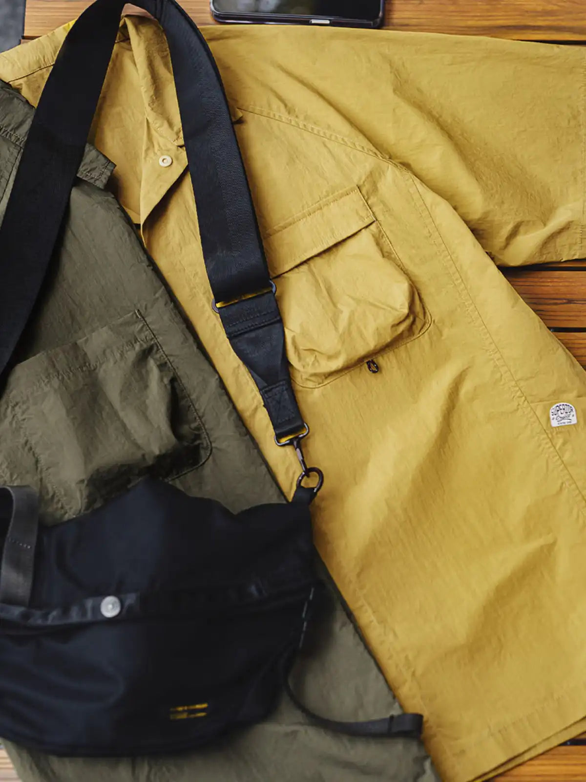 80g/m²の薄手マイクロシワ織りナイロンは驚異の軽さと通気性を両立し、程よいハリ感でシルエットをキープ。左胸には斜め挿し込みポケット、右胸にフラップポケットを配し、視線を集める“SUPERIOR”ワッペンと配色織ネームがアクセントに。ドロップショルダーのゆったりフィットで動きやすく、トレッキングから街着まで一着で使える汎用性が魅力です。