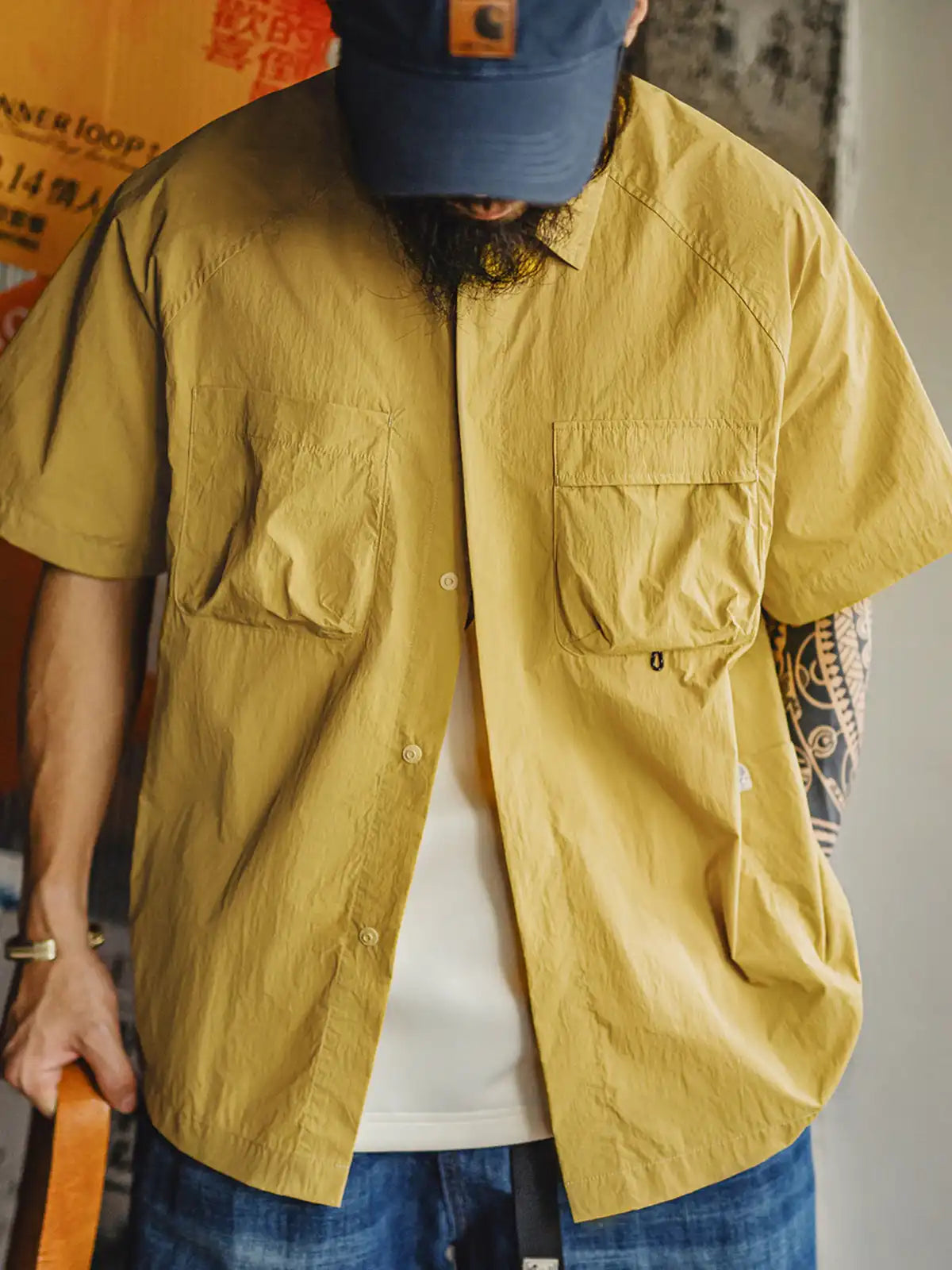 80g/m²マイクロシワ織り生地と多機能ポケットが軽快な山系スタイルを叶える半袖シャツ。
