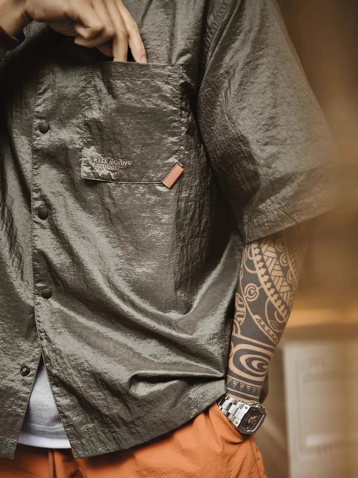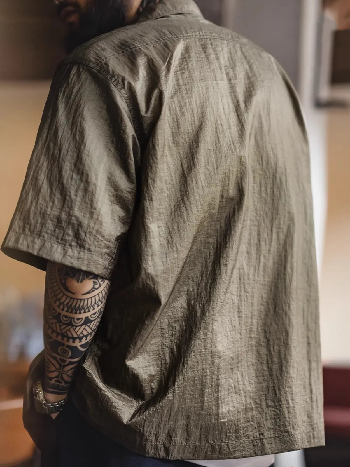 1950年代リゾートウェア由来のCubanカラーは開放感を演出し、わずか80gのボディはポケットに収まるパッカブル仕様。特殊クランク加工で生まれる独特のシワ感と撥水・通気性能が、風を含んだような軽快さをもたらします。山野を思わせるモスグリーンはデニムやカーゴショーツとの相性抜群で、街歩きにもトレイルにも溶け込みつつ瞬間的な解放感をもたらす一着です。