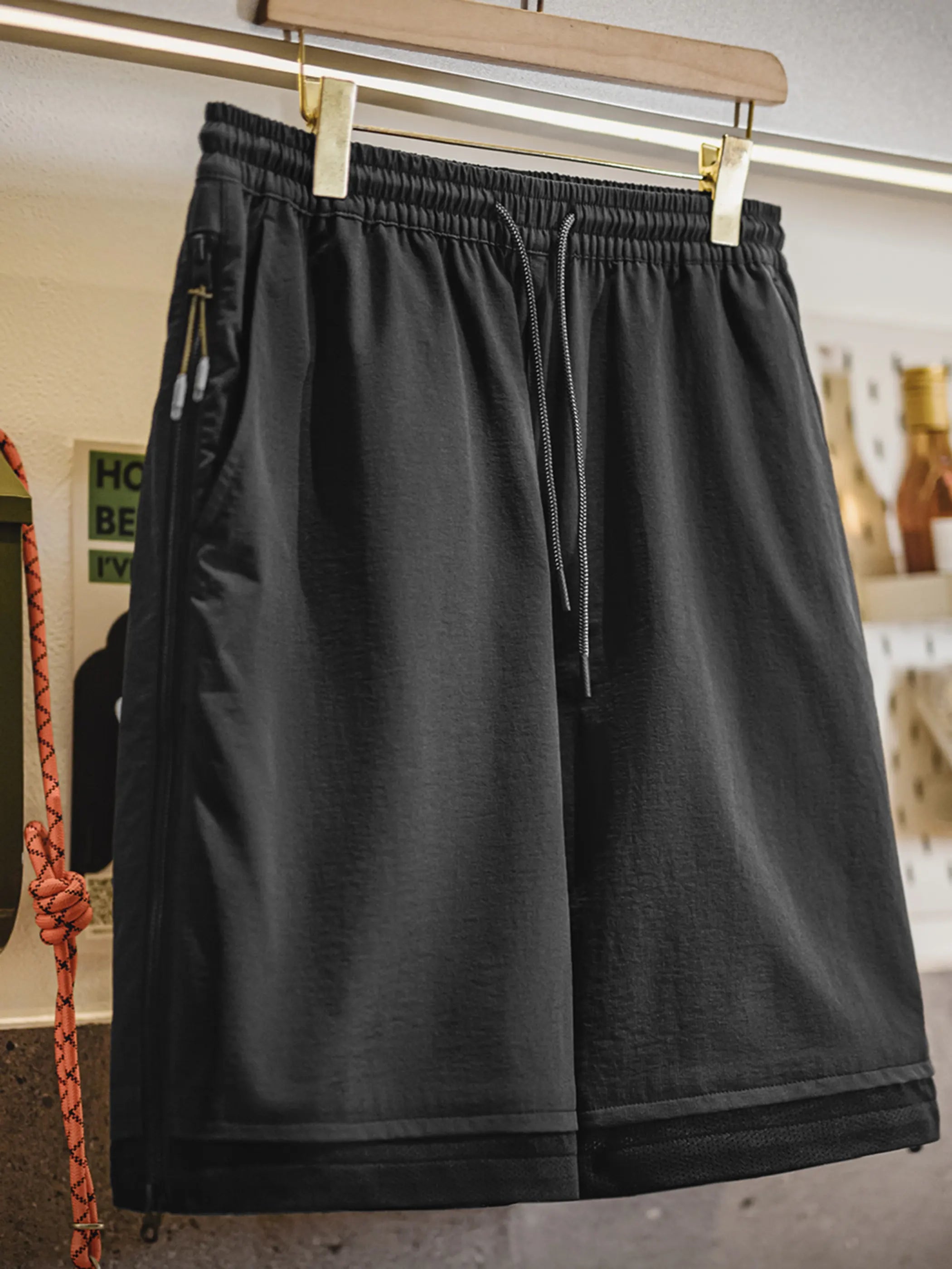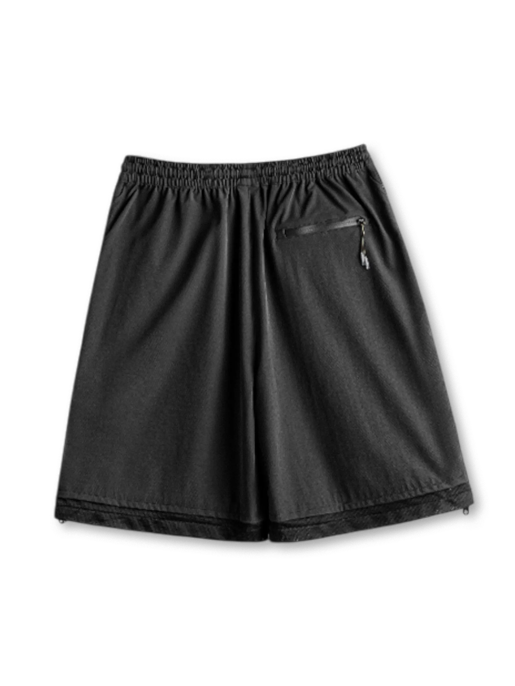 山岳ウェア由来の軽量テック仕様を180g/m²ナイロン×スパンデックス混紡生地で再構築し、両サイドのダブルヘッドジップでワンタッチ換気が可能。メッシュパネルは熱気を素早く放出し、快適なクールダウンを実現します。ウエストはドローコード+ゴムシャーリングで幅広いシルエットに対応し、MA-1を思わせる大容量ポケットが必要なギアをスマートに収納。ビーチサイドからカフェテラス、夜の街まで、ひとつでマルチに使える夏の必携アイテムです。