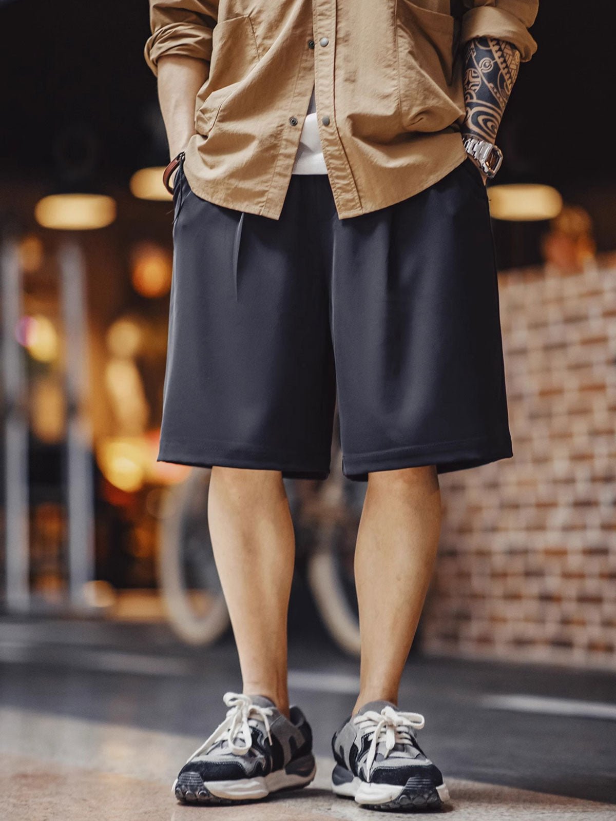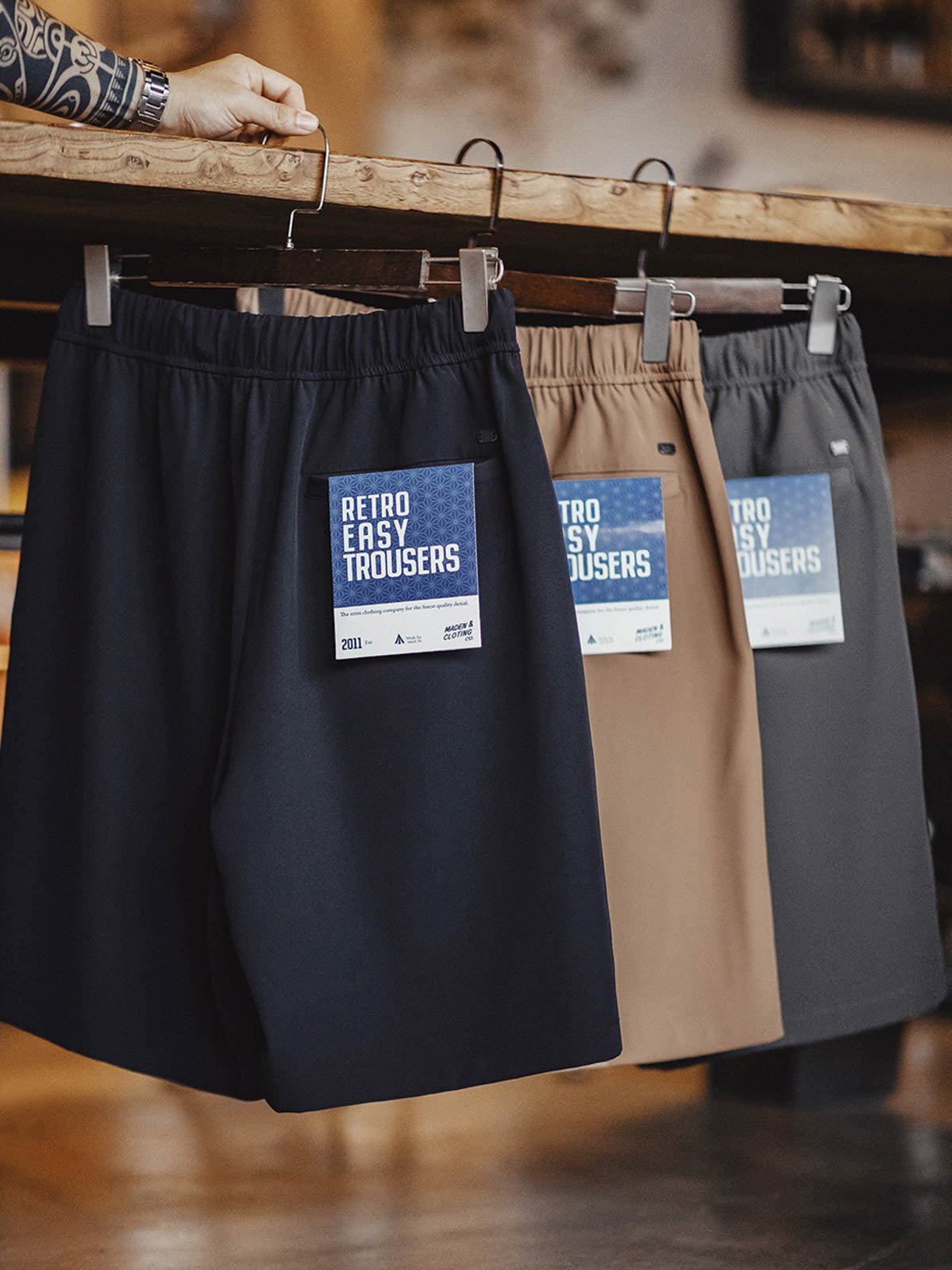 このイージーパンツ ショーツは、アメリカンカジュアルをデザインコンセプトに採用しています。免アイロンと抗シワの特性は、20世紀中葉の革新的な繊維技術から発展しました。日常生活における利便性を追求し、現代のライフスタイルにフィットするようデザインされています。
