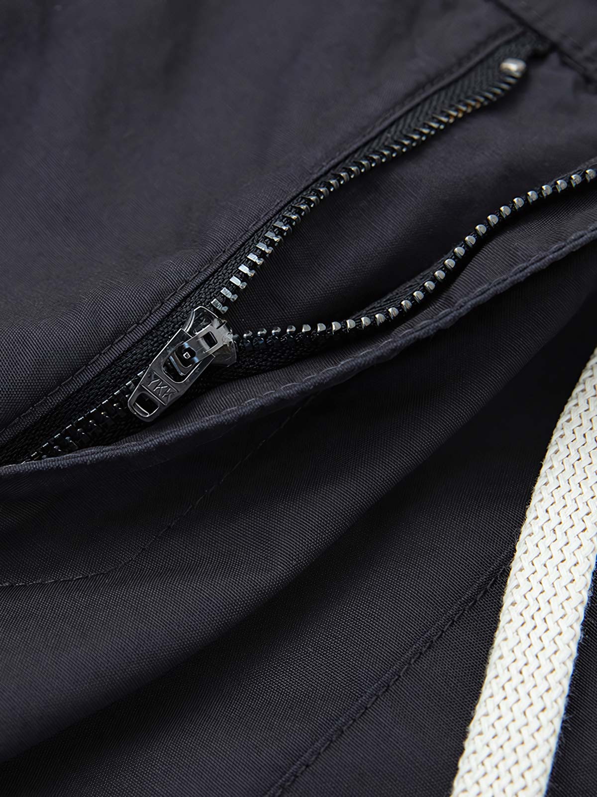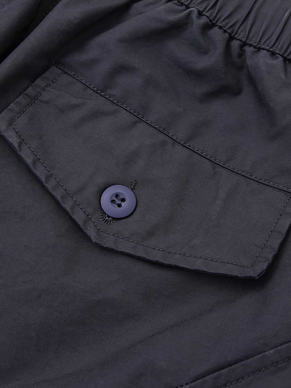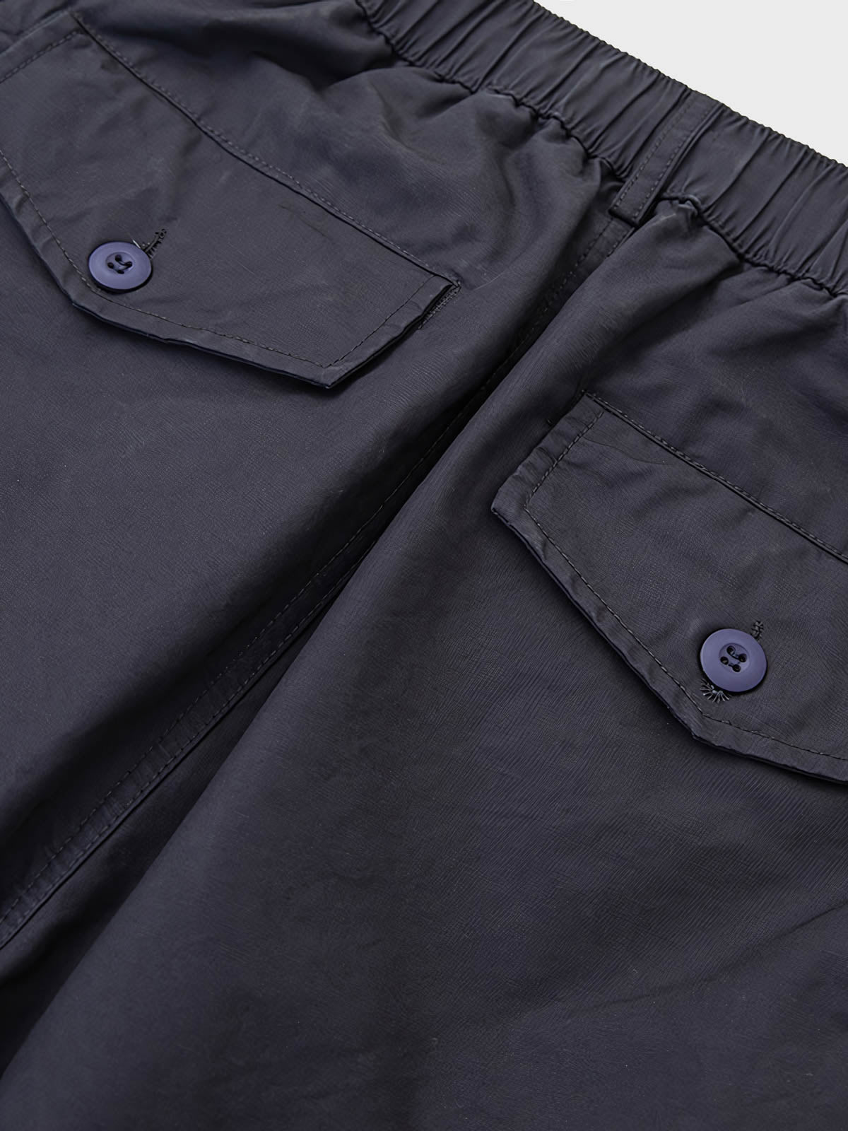 このゆったりなカジュアルパンツは、機能性を重視したデザインで、大きめのフラップポケットと立体的な装飾ポケットが特徴です。これらのポケットは、実用性だけでなく、パンツにユニークな工装スタイルの美学をもたらします。