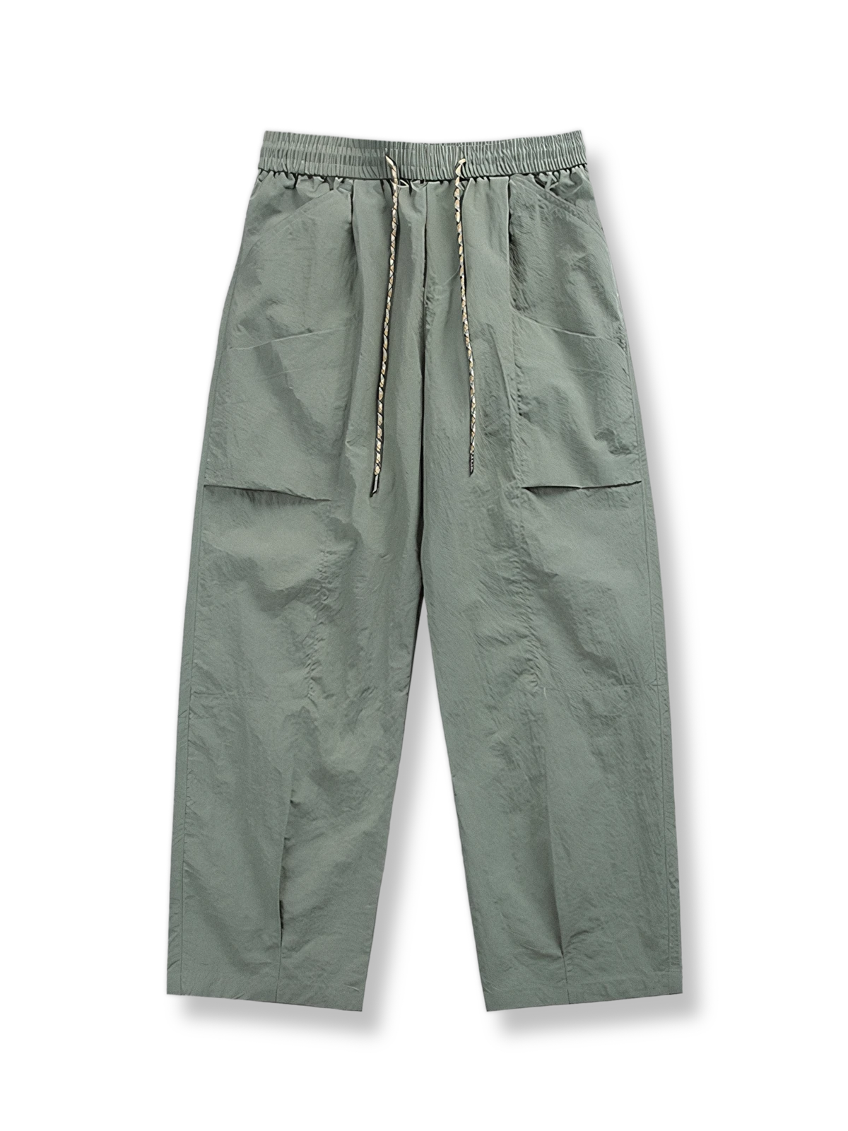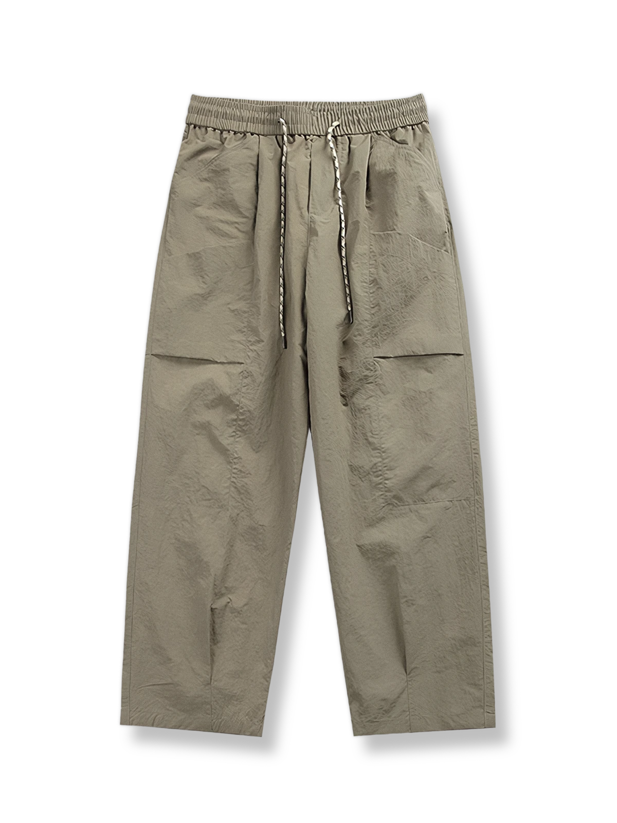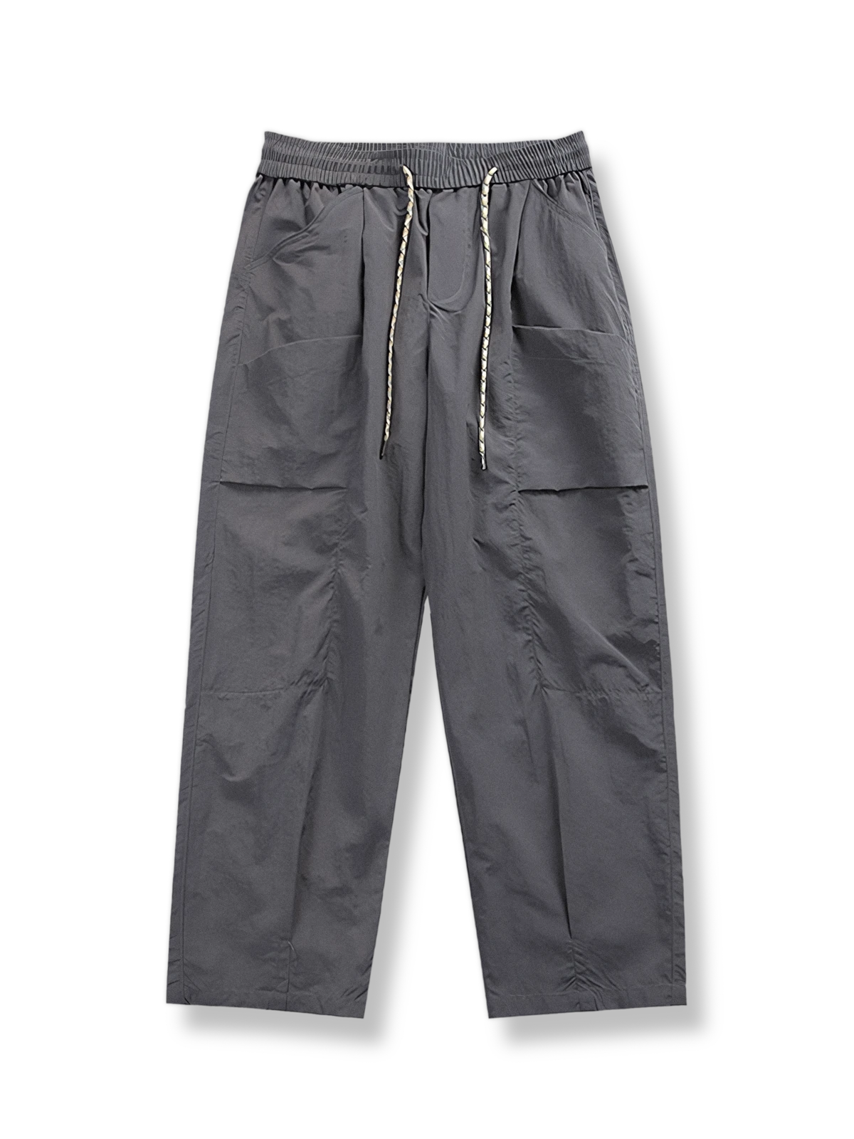 ウエストはゴムとドローストリングで調節可能であり、リラックスしたフィット感を提供します。ストレートカットのシルエットは動きやすさを考慮しており、日常のあらゆるシーンでの快適な着用感を約束します。